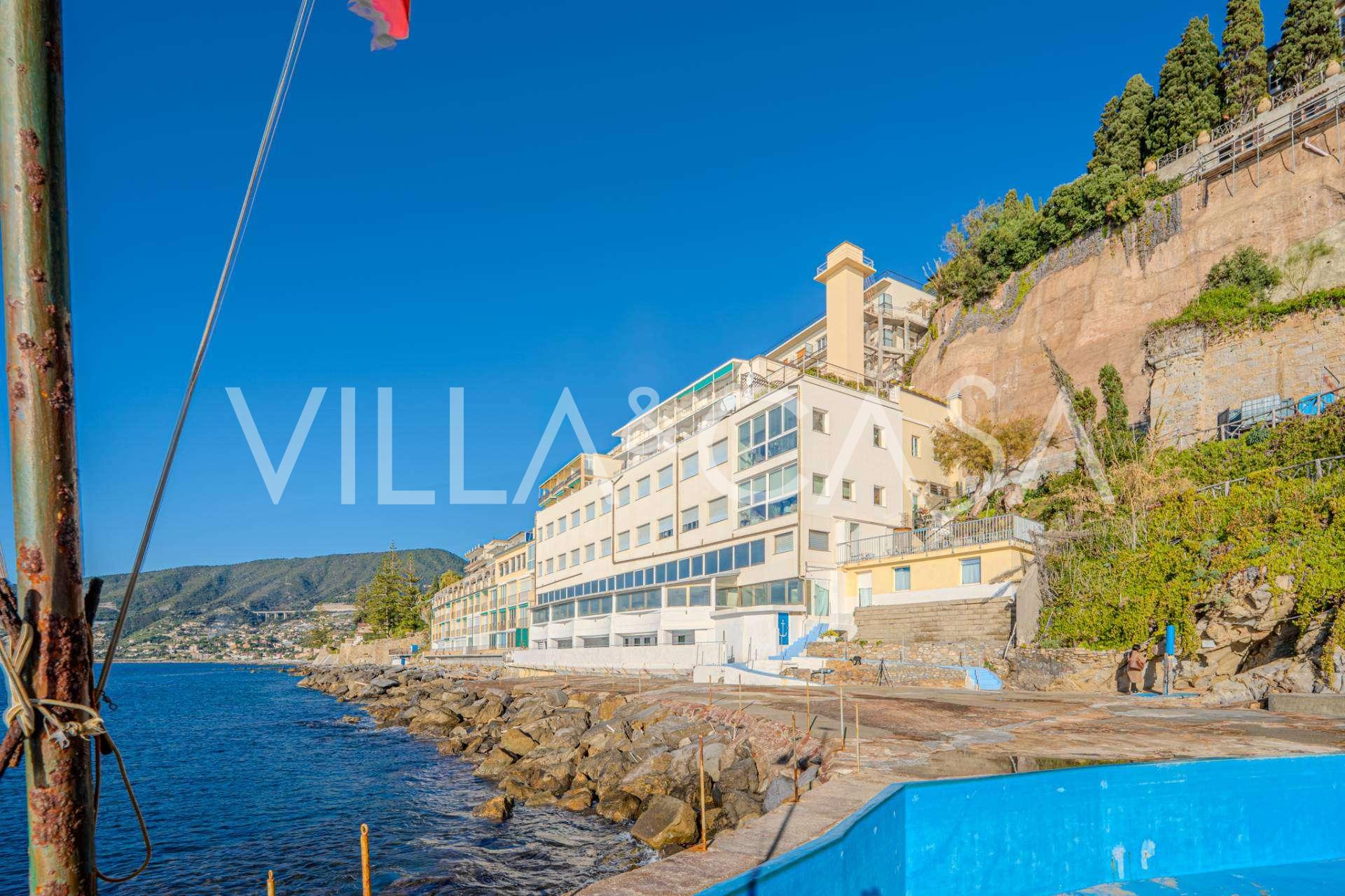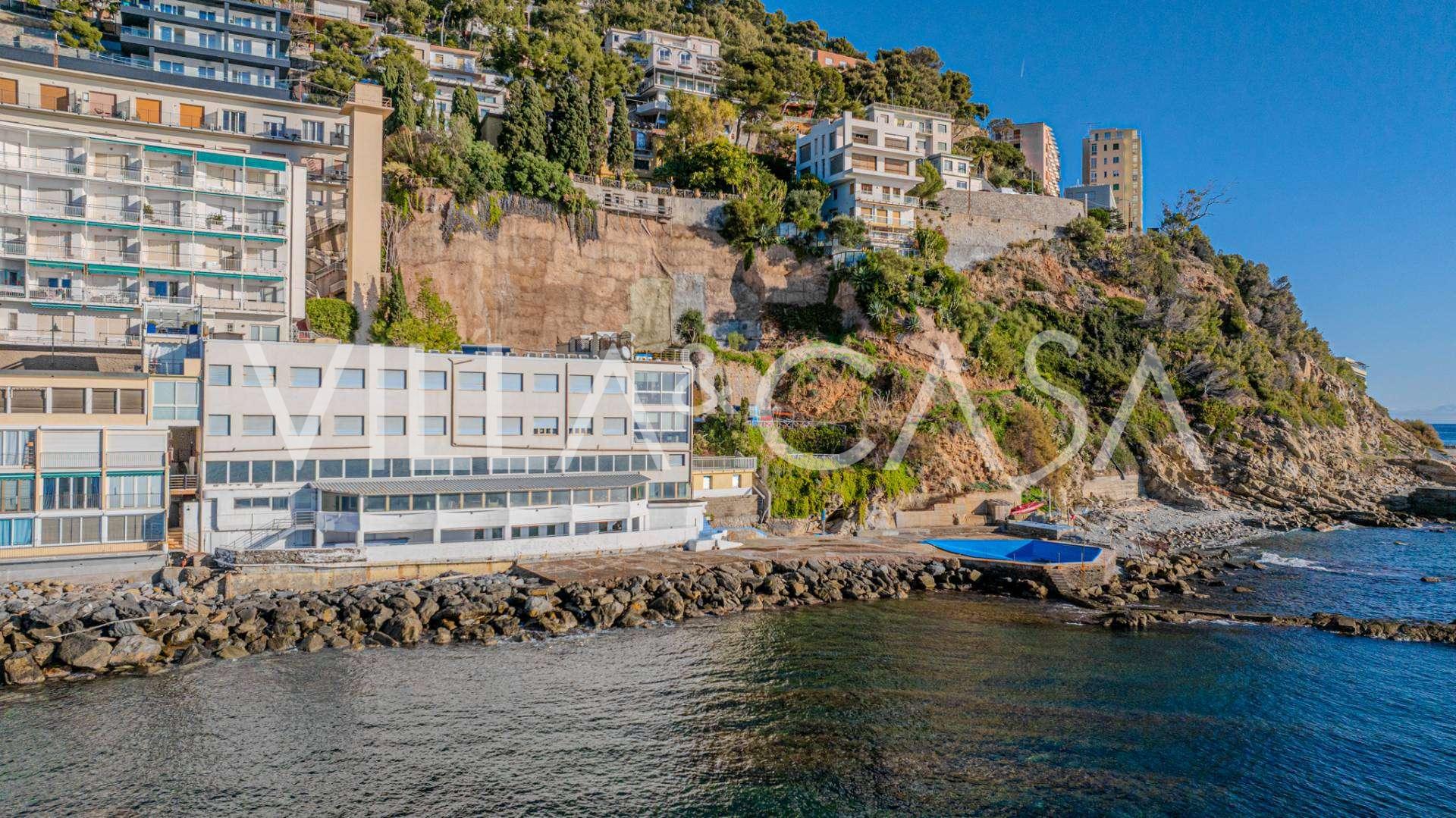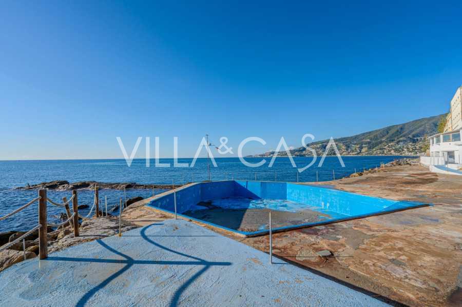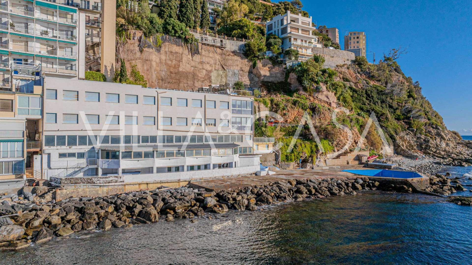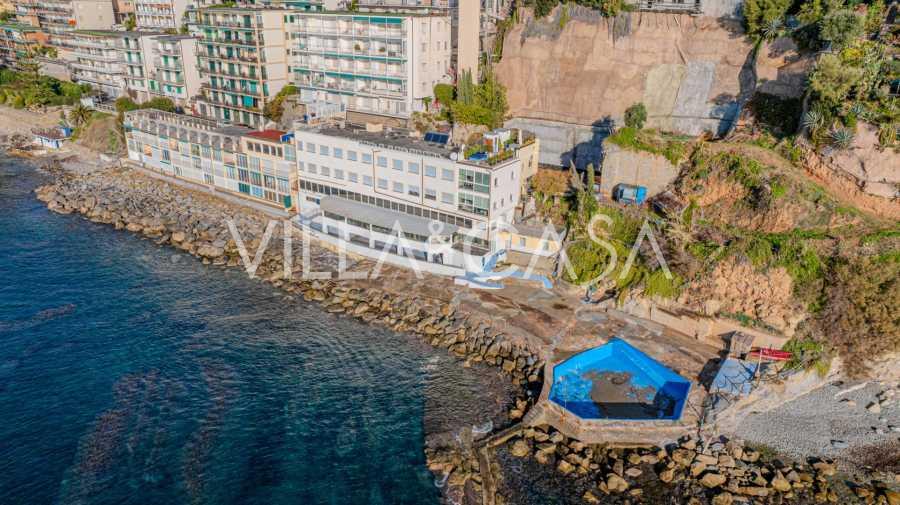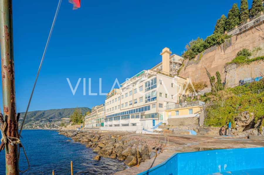 Está à venda um hotel único em Ospedaletti, localizado em um ponto privilegiado na costa, com acesso direto ao mar e praia privativa. Daqui, pode-se desfrutar de uma vista panorâmica magnífica do mar. Em dias claros, é possível ver parte da Riviera Francesa e as Ilhas Lérins, e nos meses de inverno, ao amanhecer, os contornos da Córsega.