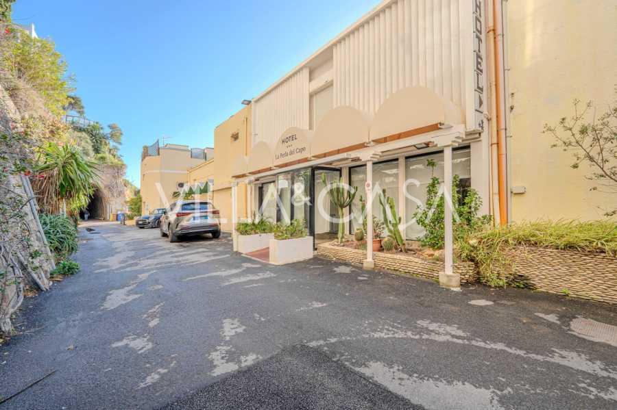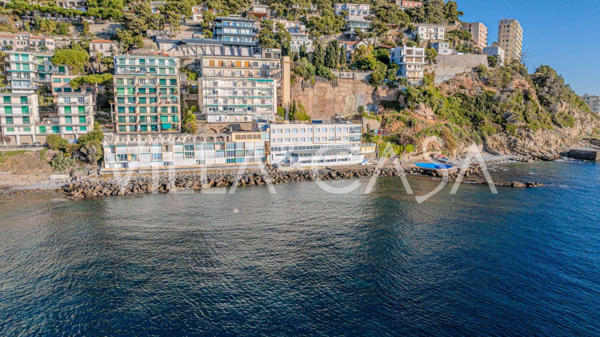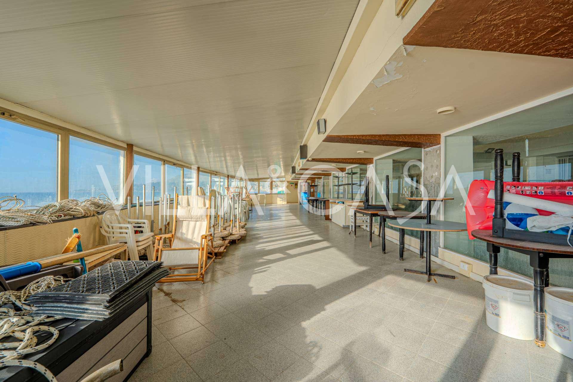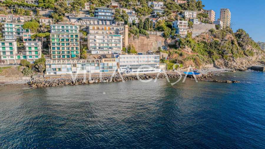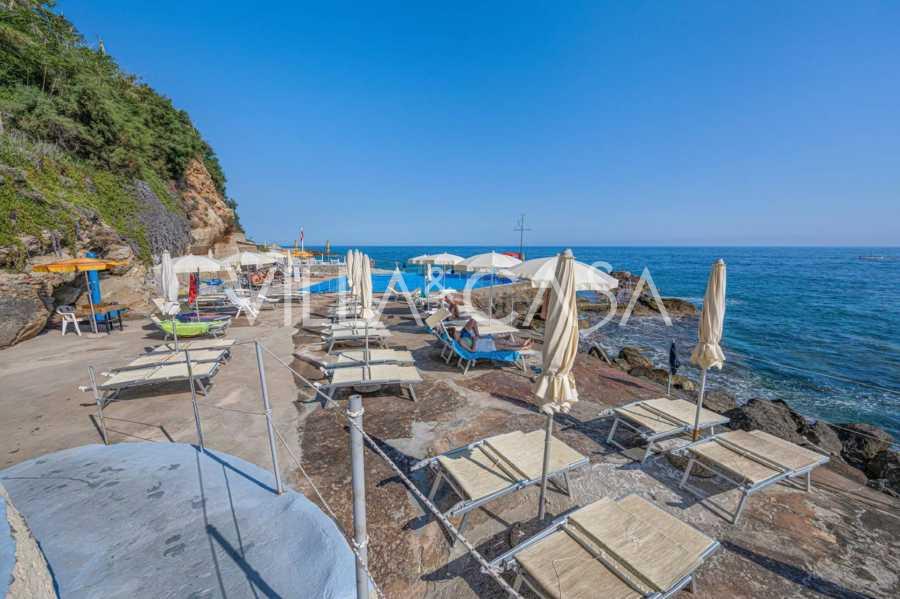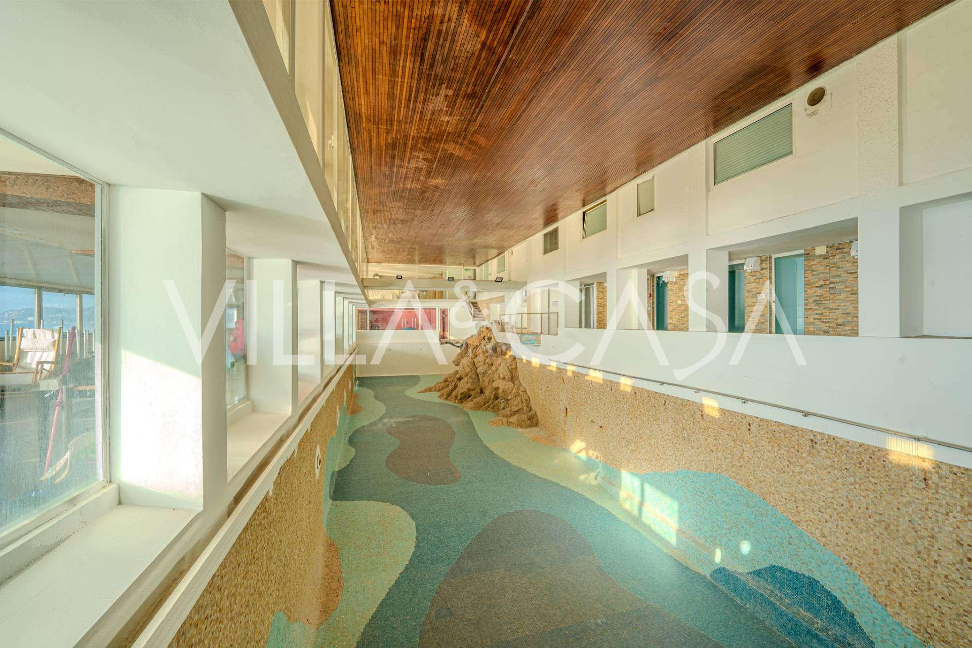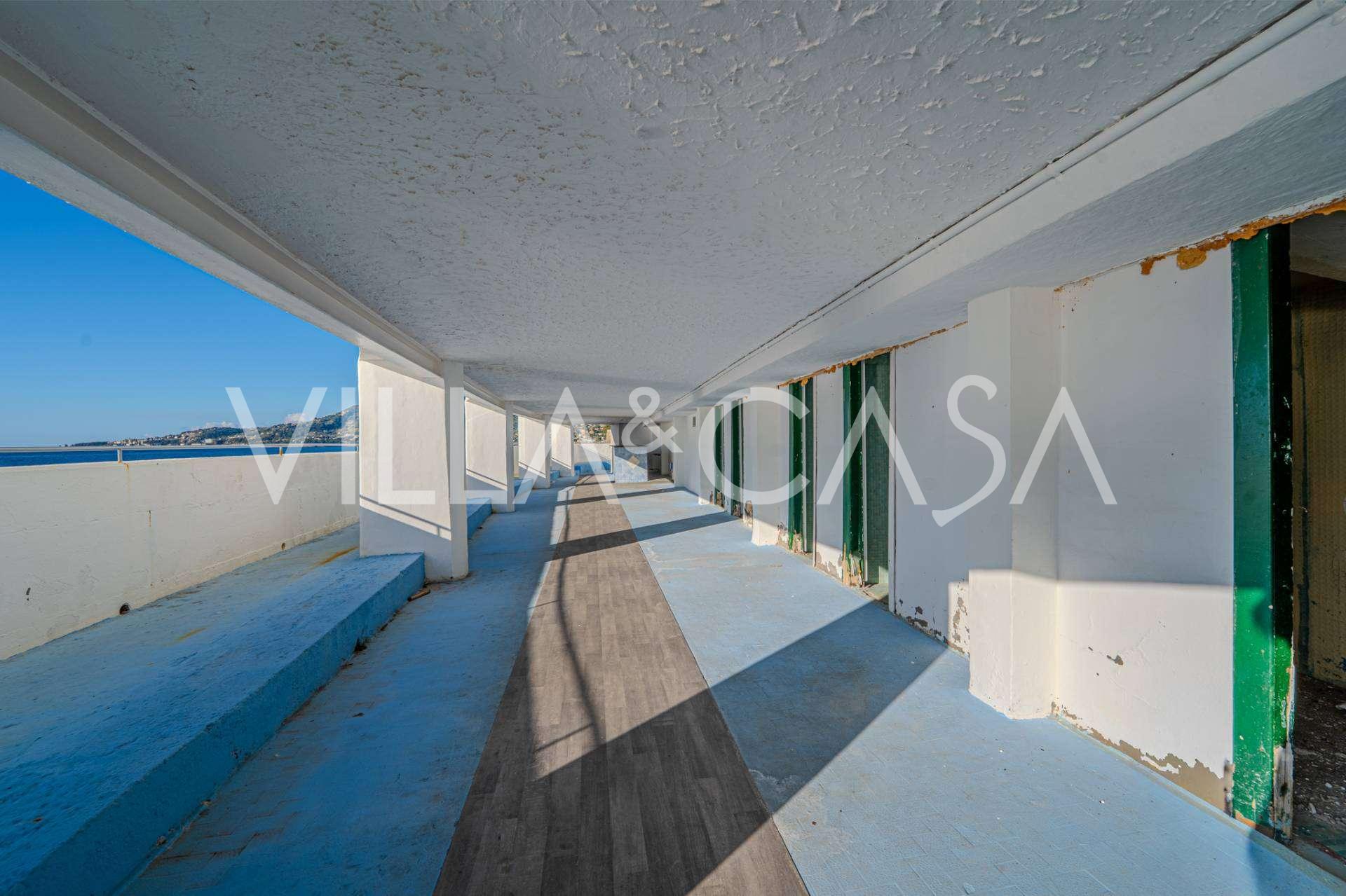 Está à venda um hotel único em Ospedaletti, localizado em um ponto privilegiado na costa, com acesso direto ao mar e praia privativa. Daqui, pode-se desfrutar de uma vista panorâmica magnífica do mar. Em dias claros, é possível ver parte da Riviera Francesa e as Ilhas Lérins, e nos meses de inverno, ao amanhecer, os contornos da Córsega.