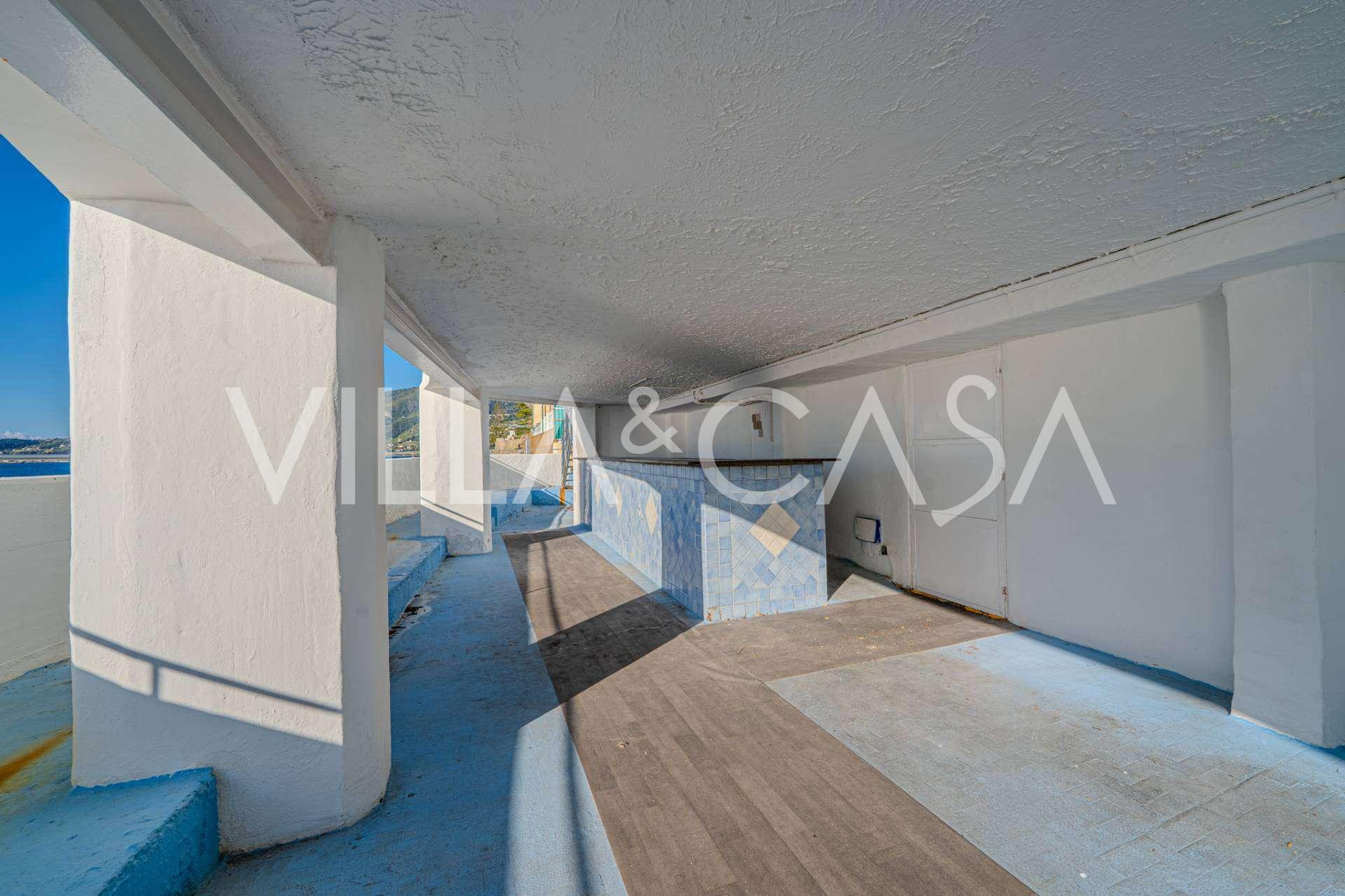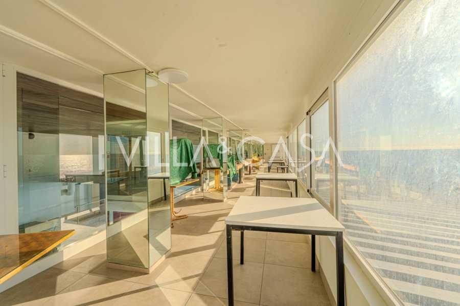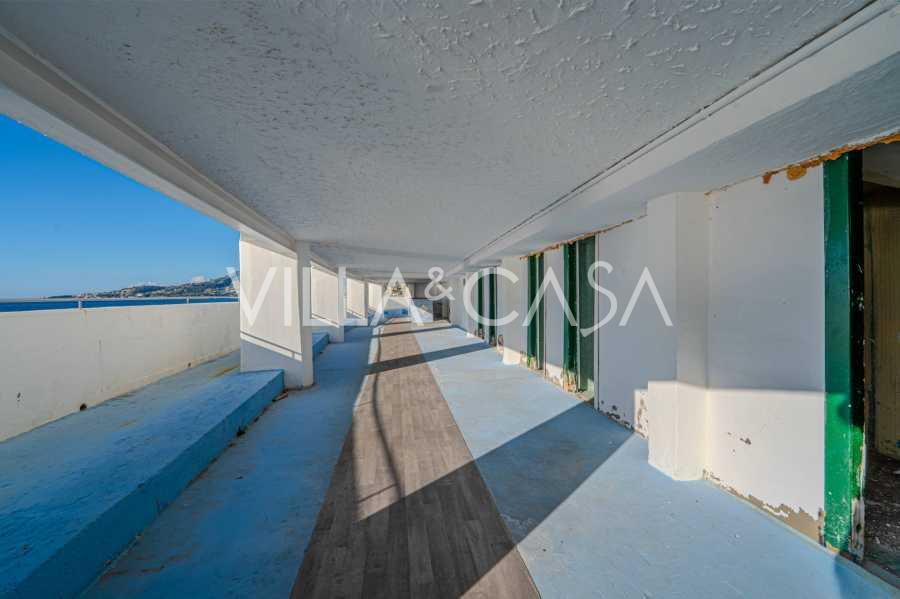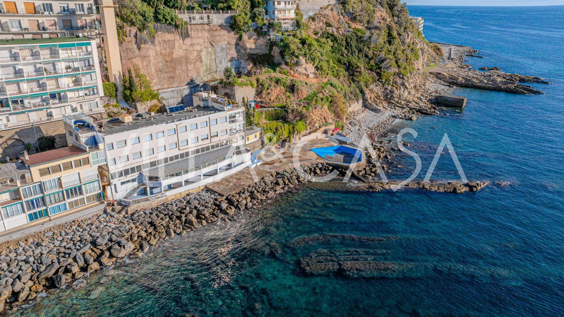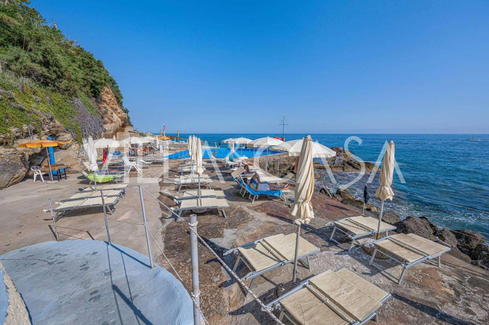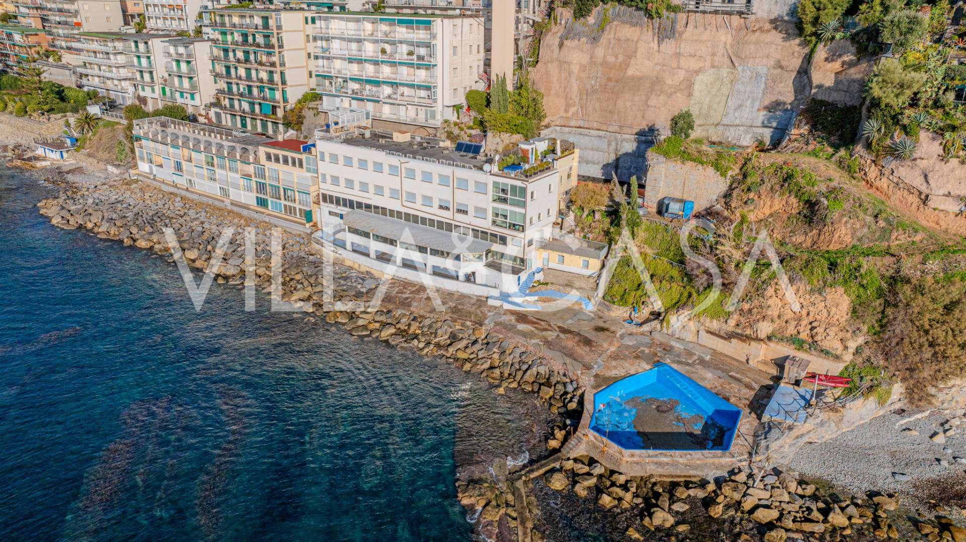 Está à venda um hotel único em Ospedaletti, localizado em um ponto privilegiado na costa, com acesso direto ao mar e praia privativa. Daqui, pode-se desfrutar de uma vista panorâmica magnífica do mar. Em dias claros, é possível ver parte da Riviera Francesa e as Ilhas Lérins, e nos meses de inverno, ao amanhecer, os contornos da Córsega.