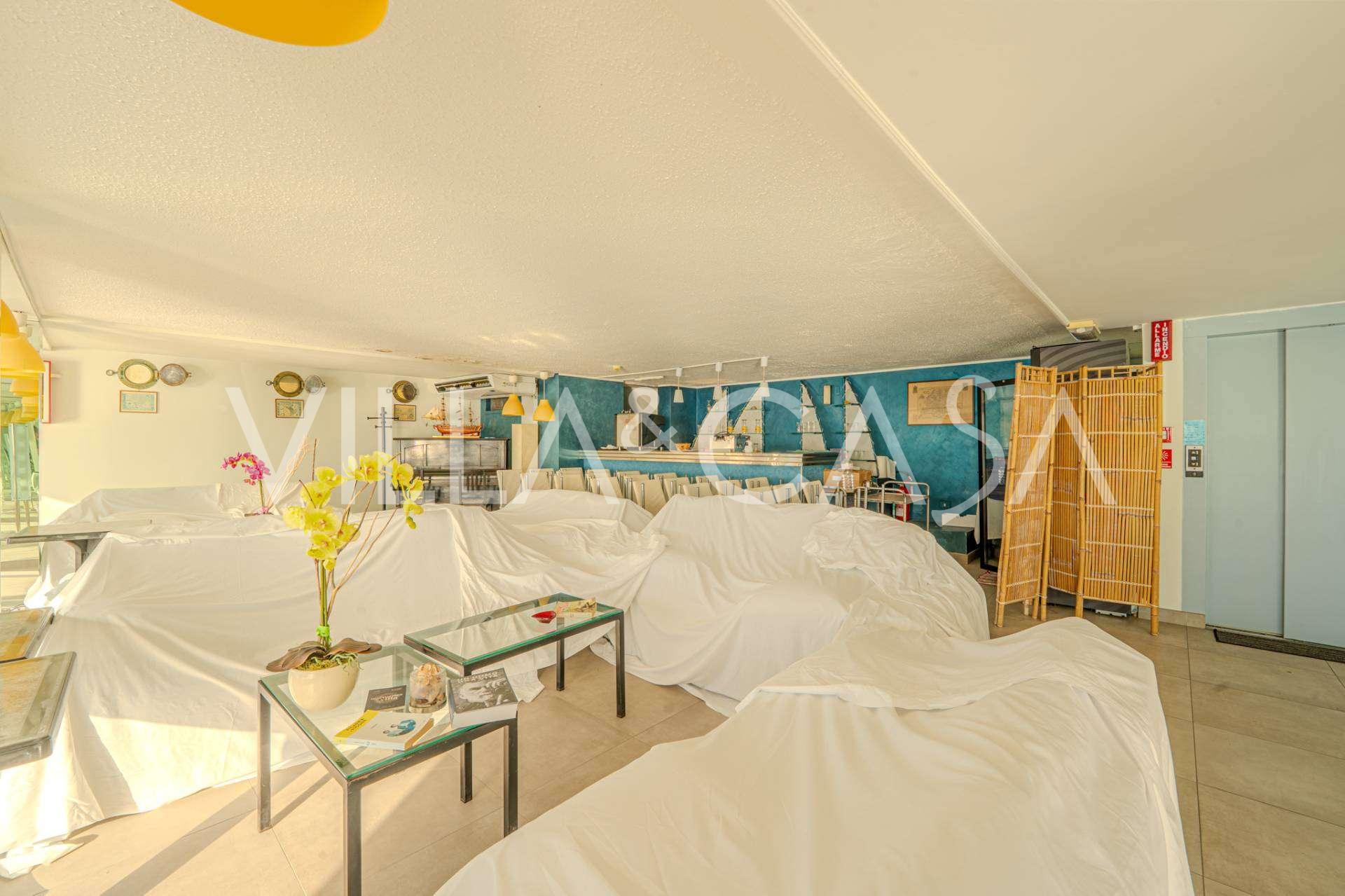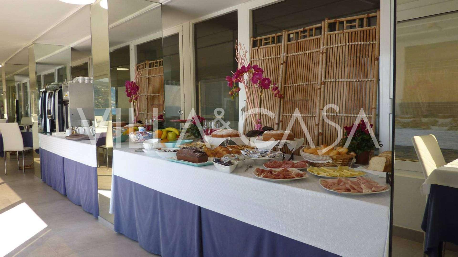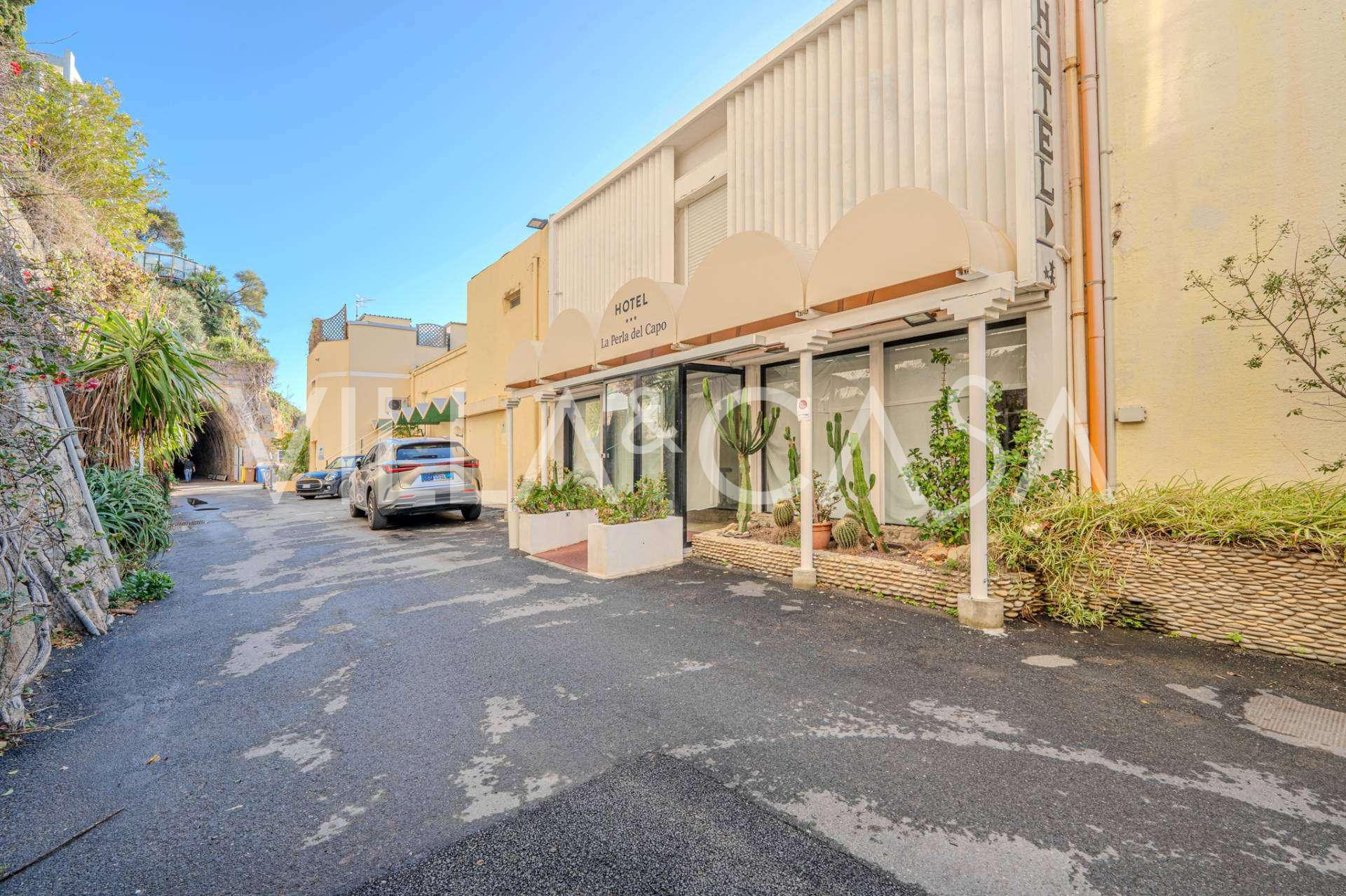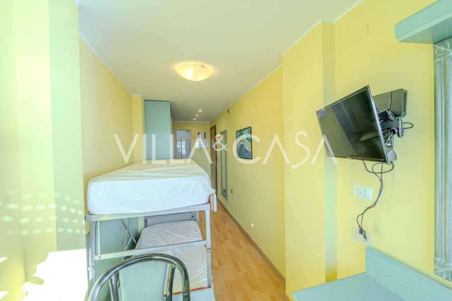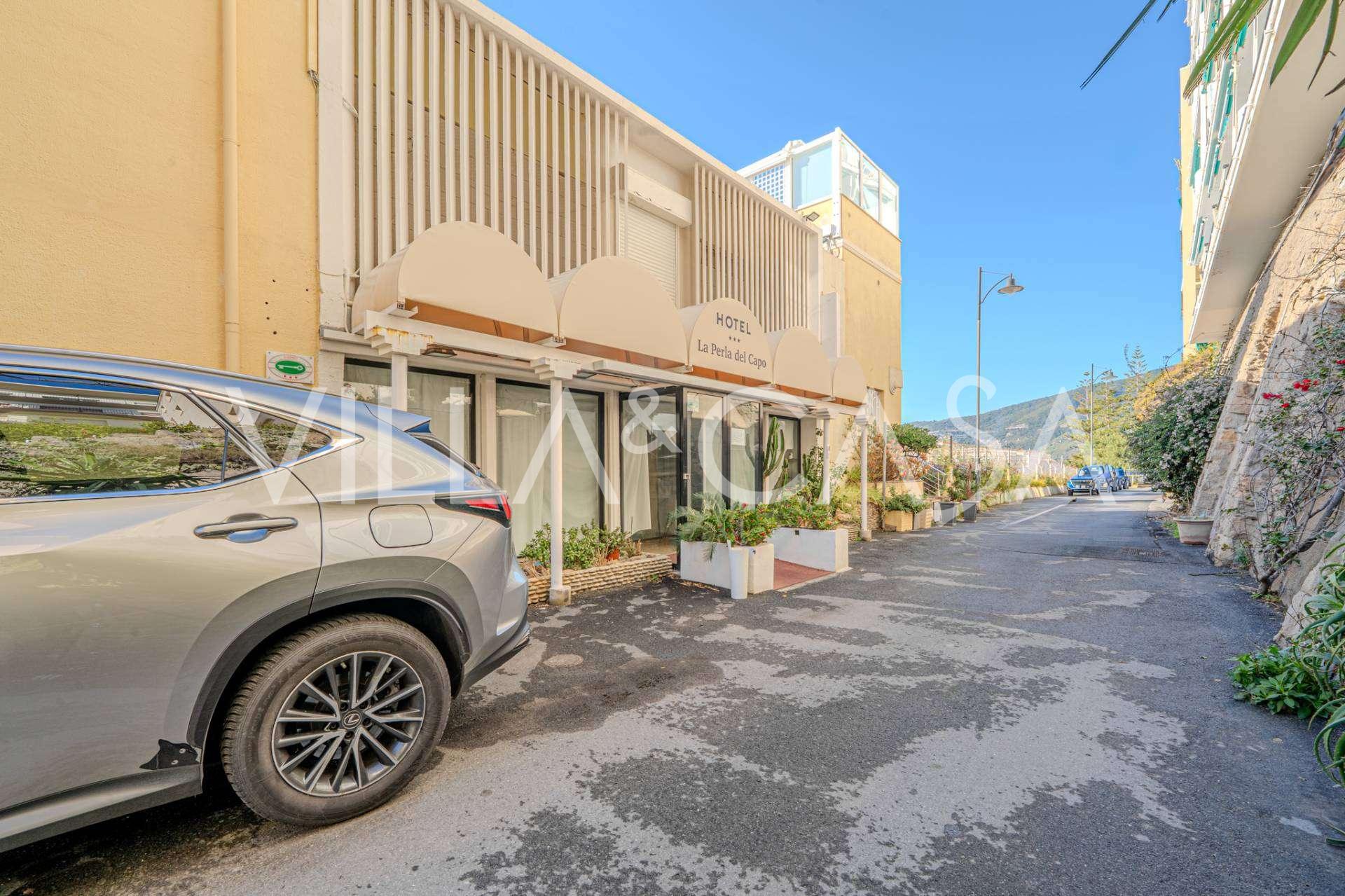 Está à venda um hotel único em Ospedaletti, localizado em um ponto privilegiado na costa, com acesso direto ao mar e praia privativa. Daqui, pode-se desfrutar de uma vista panorâmica magnífica do mar. Em dias claros, é possível ver parte da Riviera Francesa e as Ilhas Lérins, e nos meses de inverno, ao amanhecer, os contornos da Córsega.