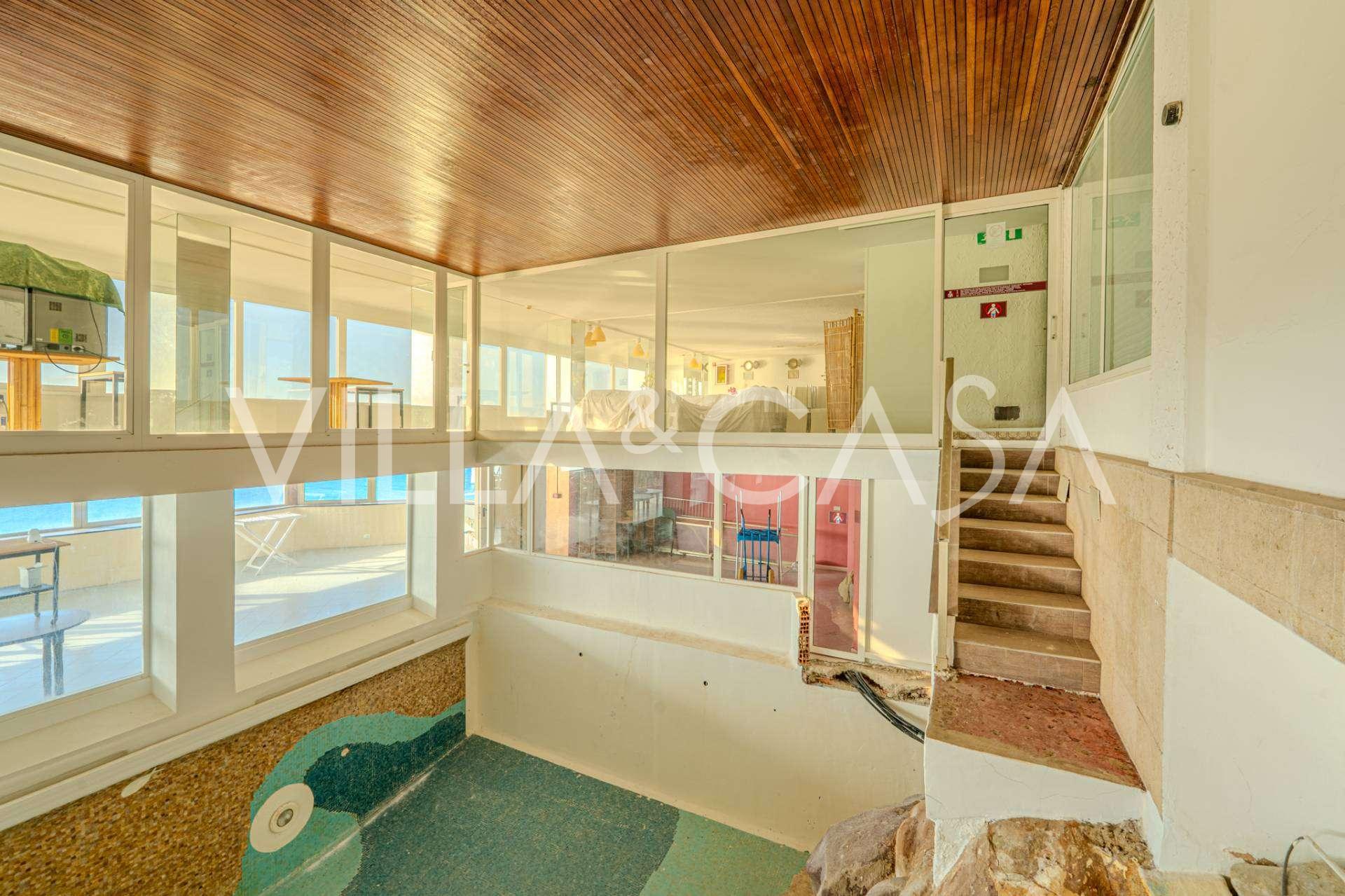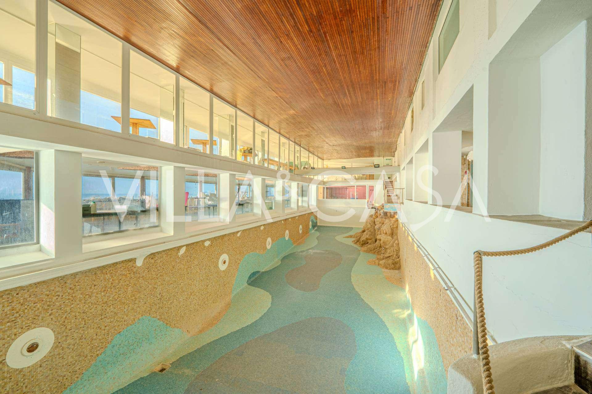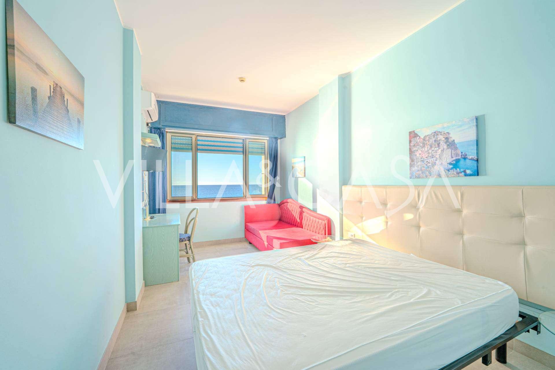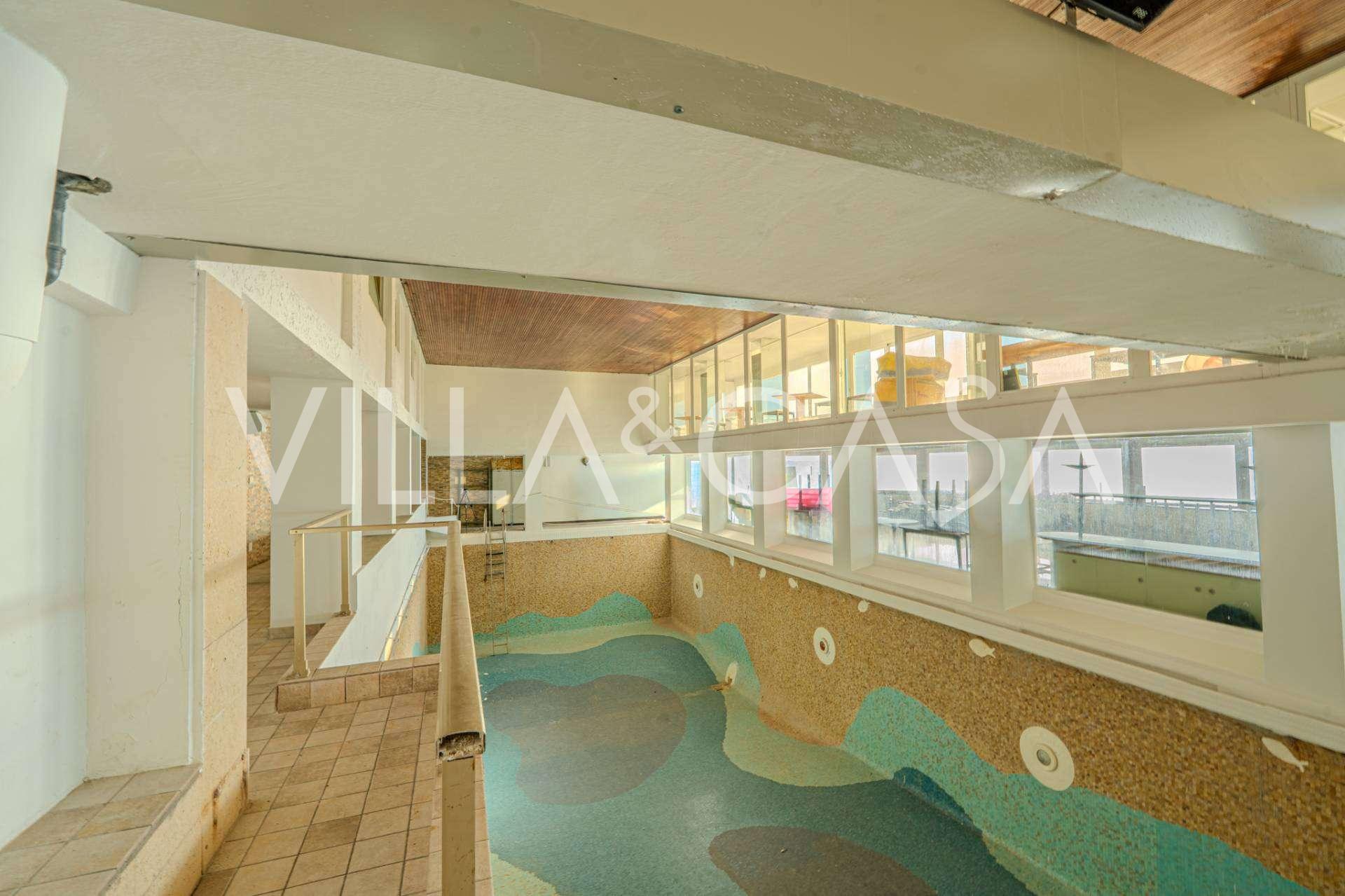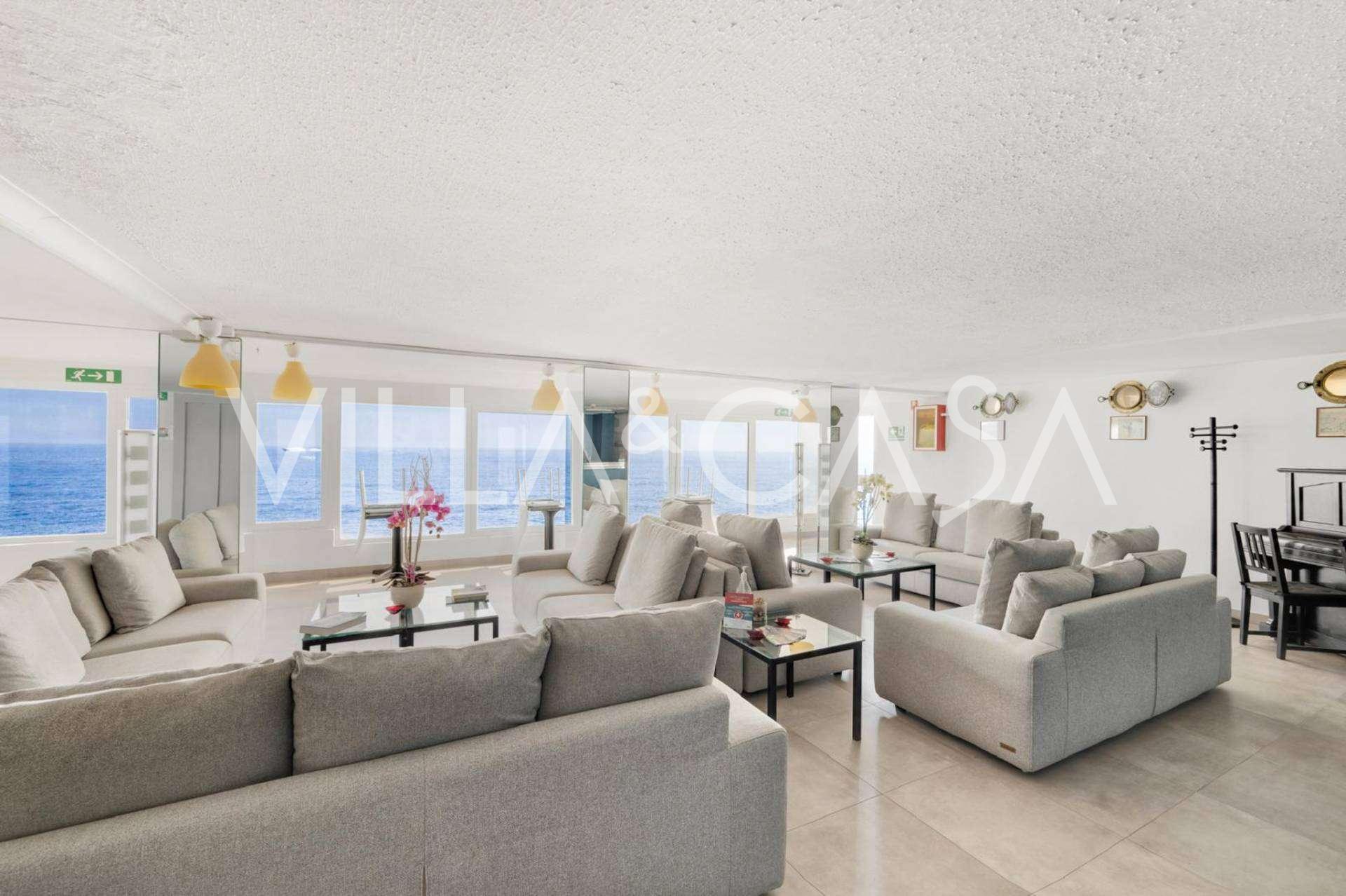 Está à venda um hotel único em Ospedaletti, localizado em um ponto privilegiado na costa, com acesso direto ao mar e praia privativa. Daqui, pode-se desfrutar de uma vista panorâmica magnífica do mar. Em dias claros, é possível ver parte da Riviera Francesa e as Ilhas Lérins, e nos meses de inverno, ao amanhecer, os contornos da Córsega.