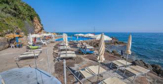 Os hóspedes podem desfrutar de uma piscina coberta de cerca de 25 metros de comprimento com água do mar aquecida. O hotel também possui uma praia privativa com acesso direto ao mar, incluindo uma piscina com água do mar, área com espreguiçadeiras e guarda-sóis, além de uma praia de seixos com capacidade para 100-110 pessoas, tanto para hóspedes do hotel quanto para visitantes externos. Na temporada de verão, há um snack-bar com lanches leves, além de um centro de beleza e talassoterapia.