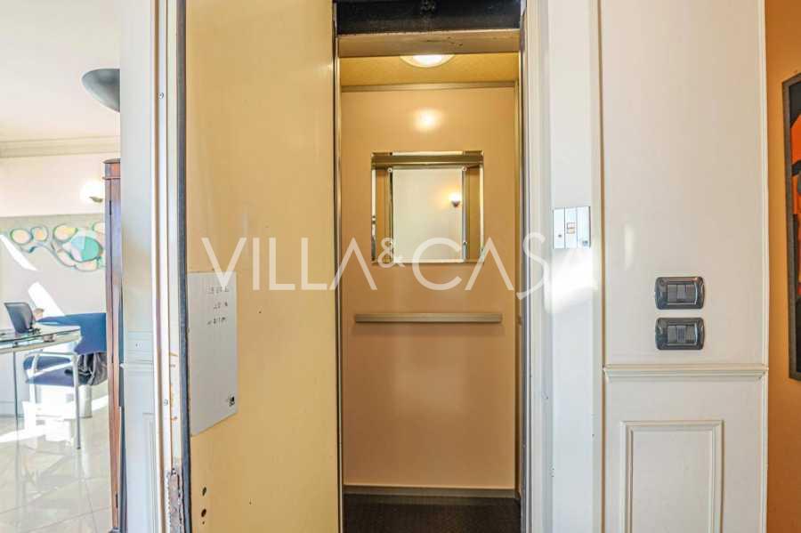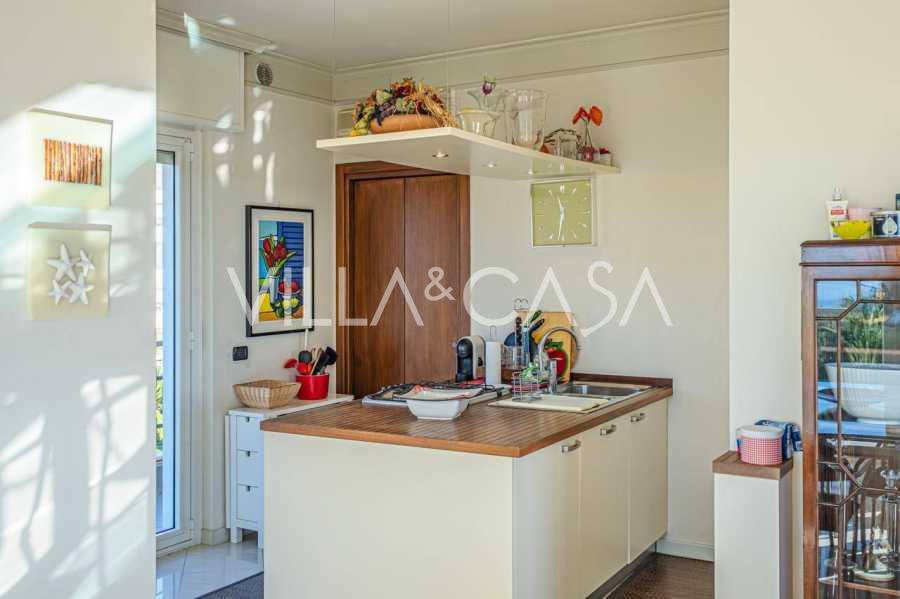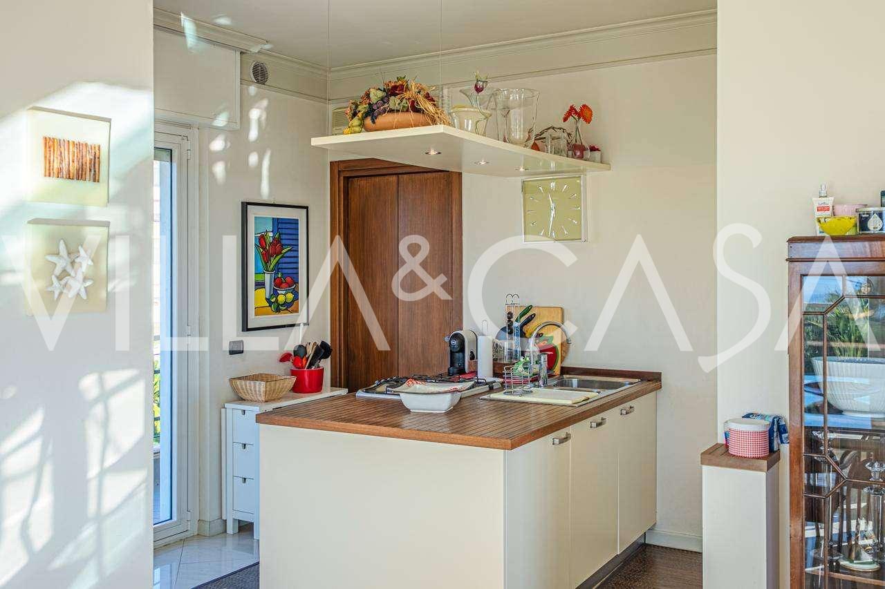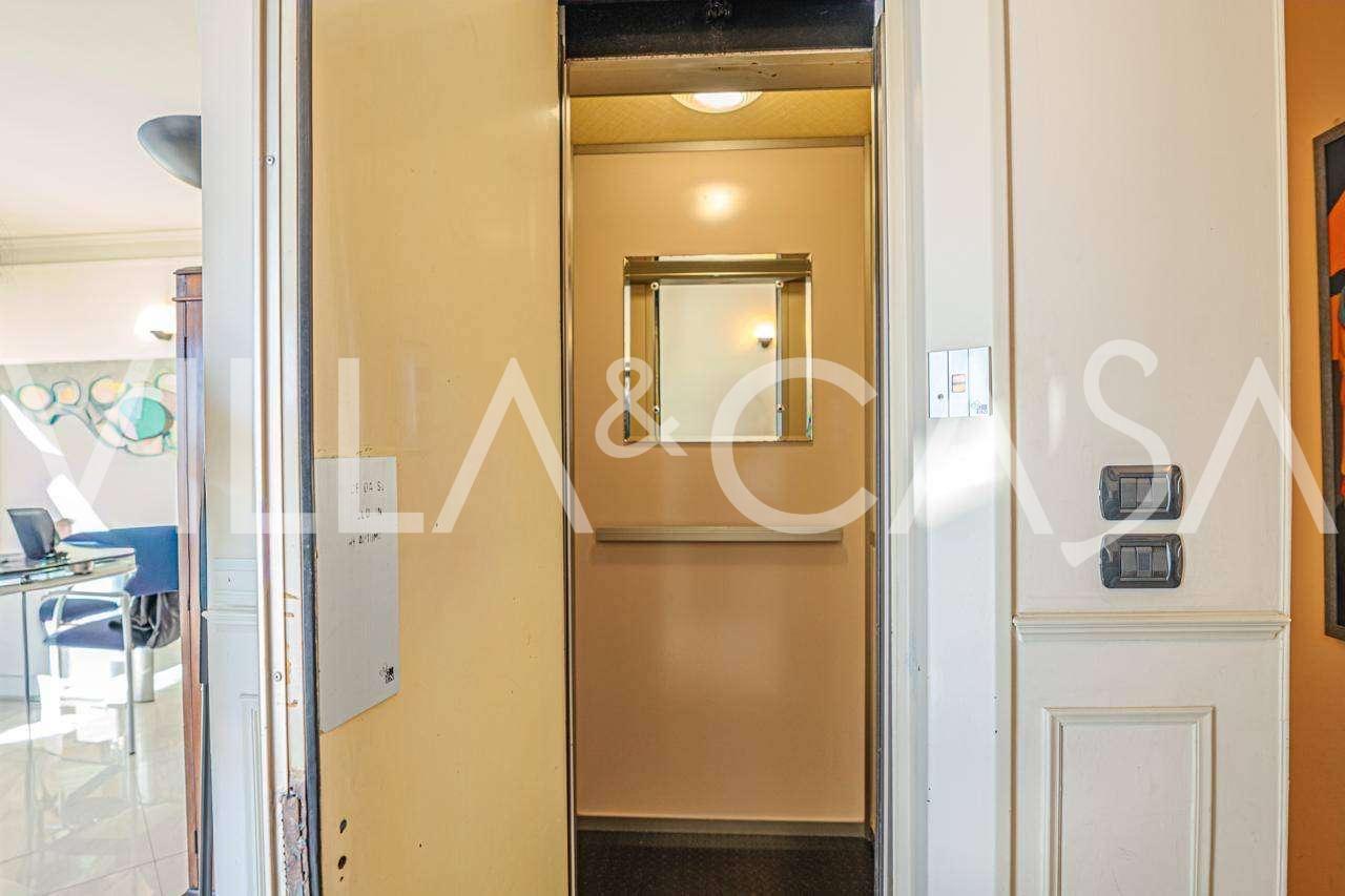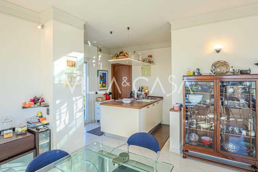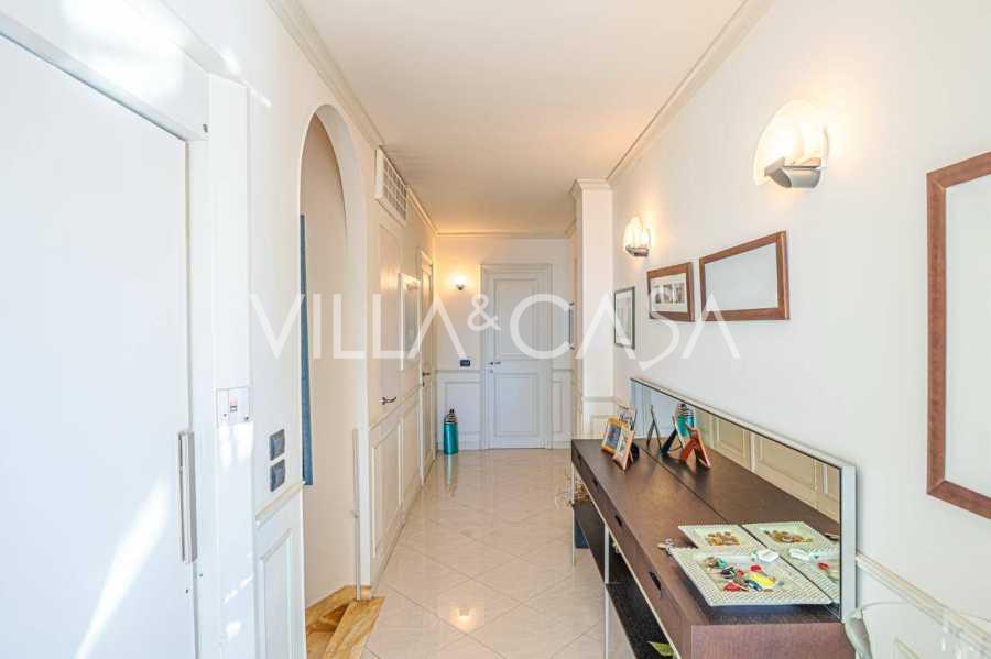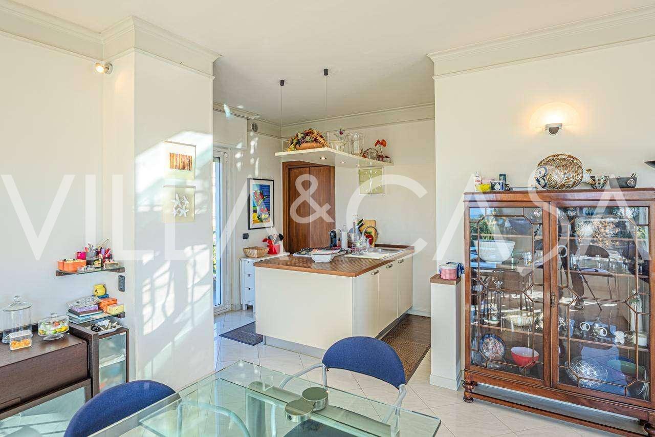 Em Sanremo, a apenas 10 minutos a pé da costa, está à venda uma cobertura com aproximadamente 146 m². O apartamento está localizado no 5º andar de um edifício com elevador e inclui: