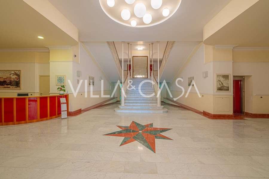 No centro de Ospedaletti, próximo ao mar, no complexo de luxo Residenza Regina Margherita, está disponível uma ampla cobertura duplex com terraço e vista para o mar. O apartamento ocupa o 4º e 5º andares de um edifício com elevador e inclui: