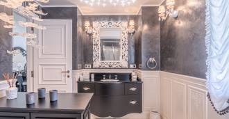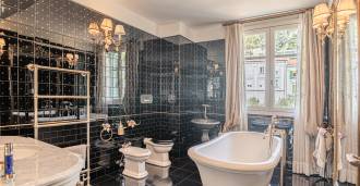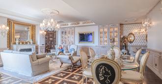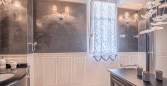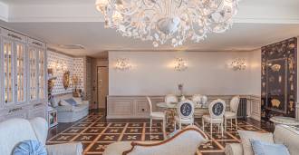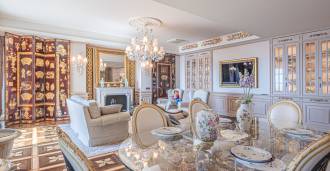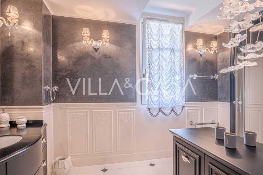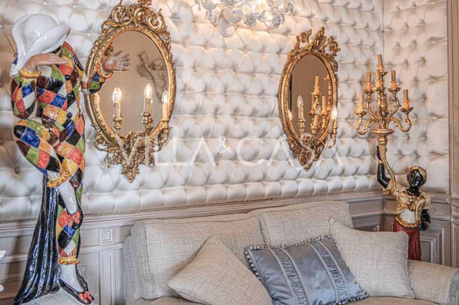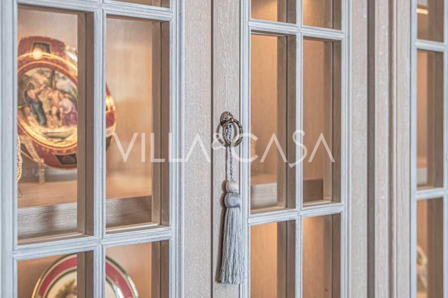 O acabamento é realizado com atenção excepcional aos detalhes: parquet montado na sala de estar, piso de madeira quente nos quartos, cerâmica de prestígio nos banheiros, persianas e janelas de madeira laqueada com vidros duplos, lustres e luminárias da marca Villari, closets da marca Franco Martinello, portas de uma oficina artística em Paris, papel de parede de seda, tapetes de seda na sala e nos quartos, garantindo silêncio e conforto. Sistemas modernos de aquecimento e ar-condicionado garantem conforto em qualquer época do ano.