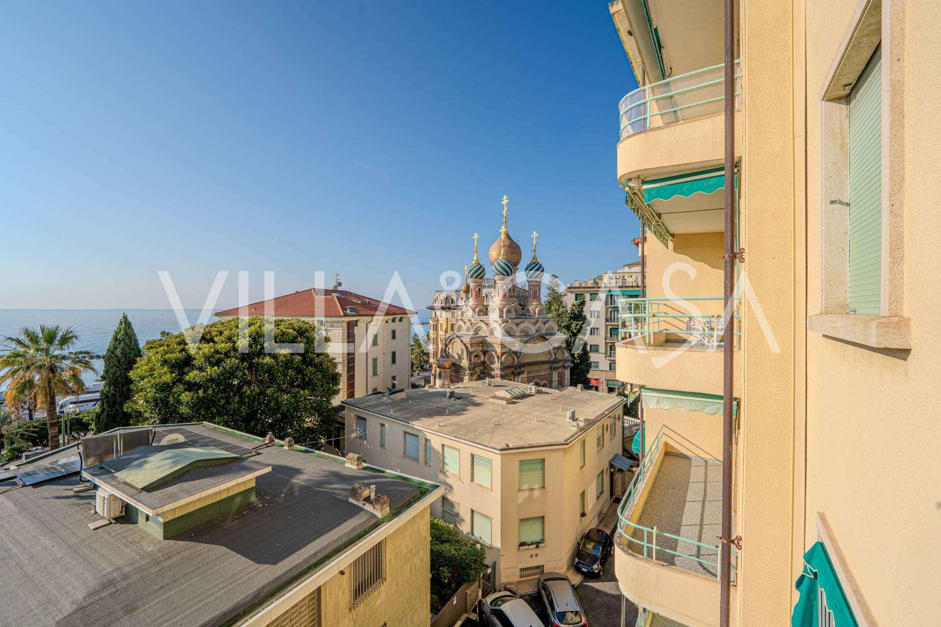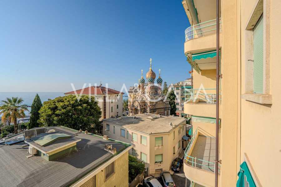 Espaçoso apartamento de quatro quartos localizado no centro de Sanremo, em frente à bela Igreja Russa, em um prestigiado complexo residencial com área ajardinada. O apartamento ocupa 104 m² e está situado no quarto andar, oferecendo vistas para o mar e para a arquitetura única da Igreja Russa.
