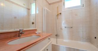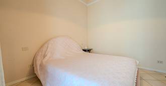 O apartamento possui uma sala de estar com vista panorâmica para o mar e acesso à varanda, três quartos, um dos quais com acesso à varanda, duas casas de banho e um hall de entrada.