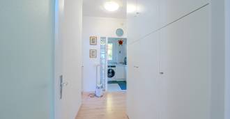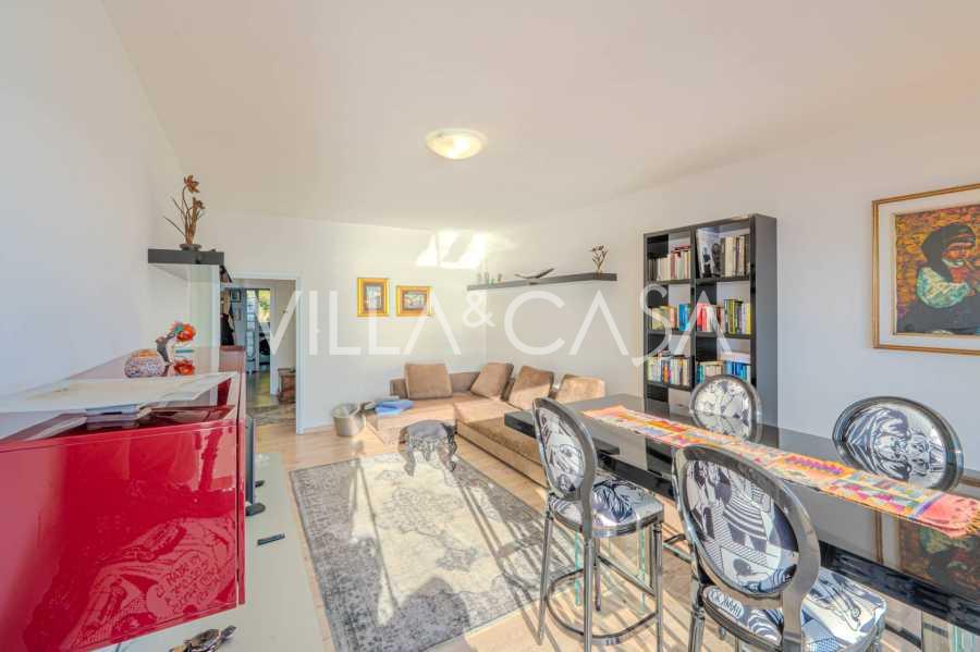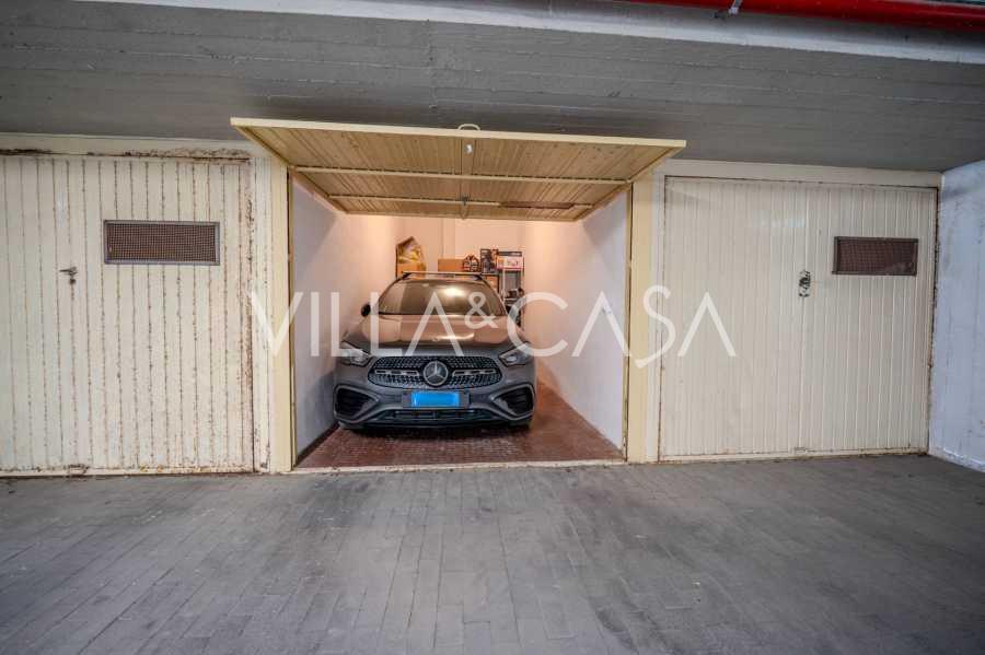 A disposição inclui sala de estar, escritório, quarto principal, segundo quarto ou quarto infantil, cozinha-sala de jantar, dois banheiros com janelas, hall de entrada e corredor. Aquecimento autônomo, possibilidade de instalação de ar condicionado, garagem-box de 20 m² com pé direito alto de 3,50 m e possibilidade de mezanino, terraço espaçoso para relaxar ao ar livre. Não há adega, mas é possível armazenar itens na garagem. As despesas de condomínio são de 2000 € por ano.