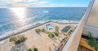 Na primeira linha do mar, está à venda uma cobertura com um grande terraço de 143 m² (123 m² de área habitável + garagem de 20 m²). Esta cobertura bem cuidada e totalmente renovada em 2023 está localizada no 5º andar de um edifício com porteiro. O apartamento está orientado para sudeste e possui um terraço espaçoso, criando uma atmosfera luminosa e acolhedora.