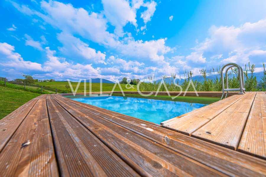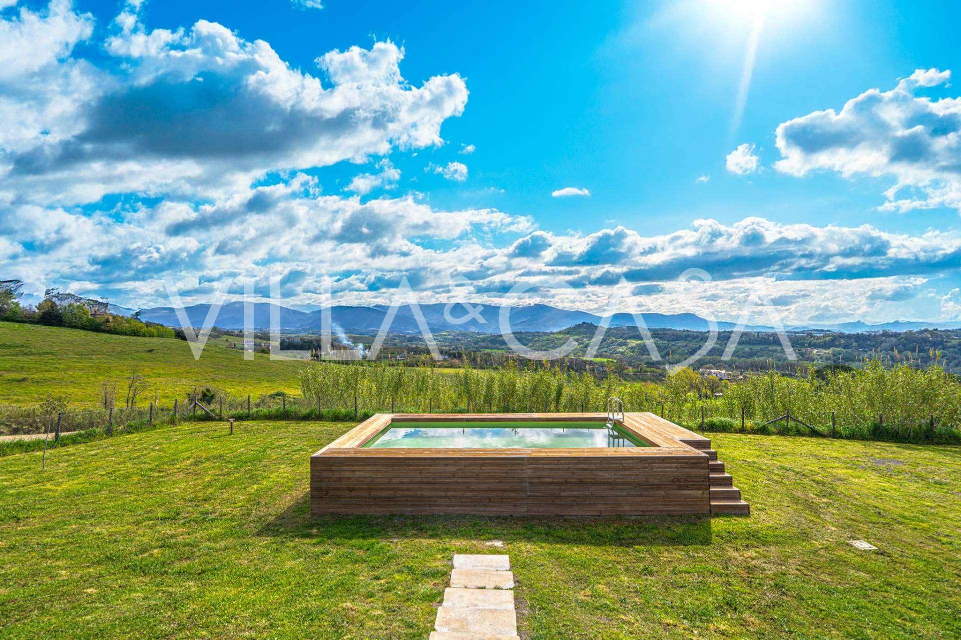 Está à venda uma magnífica casa de campo, recentemente construída, com cerca de 300 m², rodeada por vegetação. A propriedade está localizada na pequena cidade de Tarano, na província de Rieti, a apenas 40 minutos de carro de Roma, em uma colina pitoresca com uma vista deslumbrante.