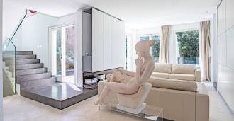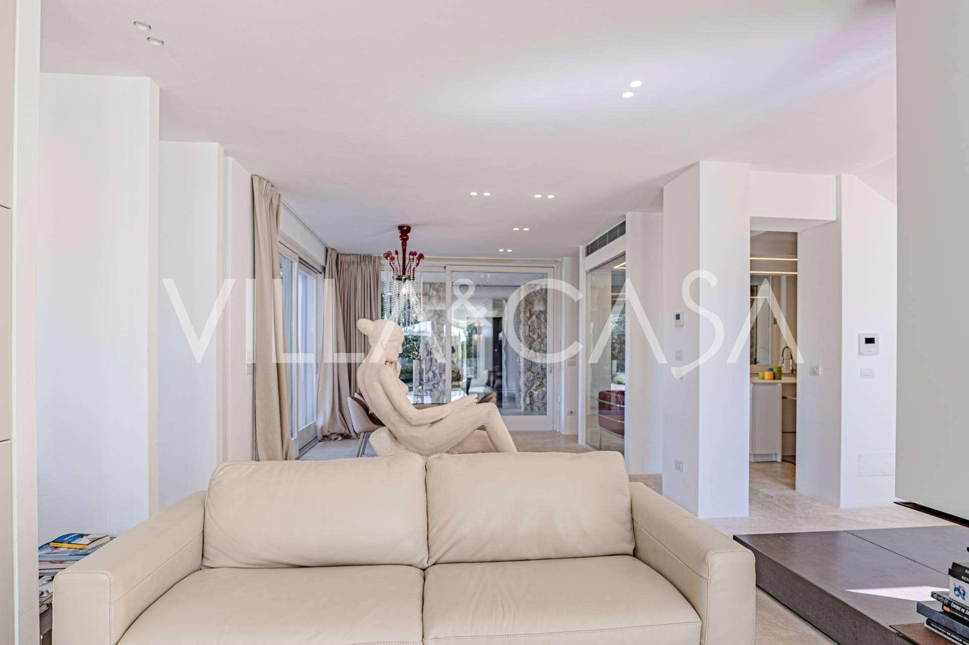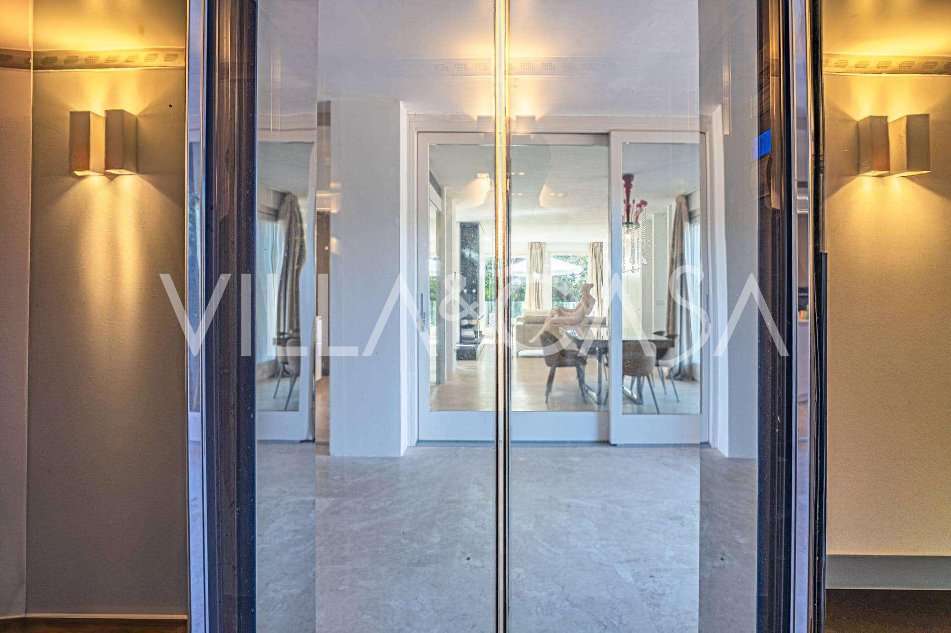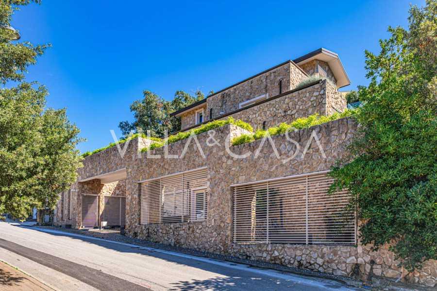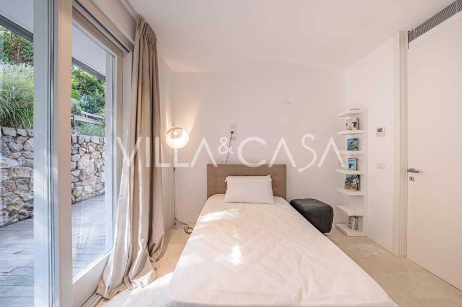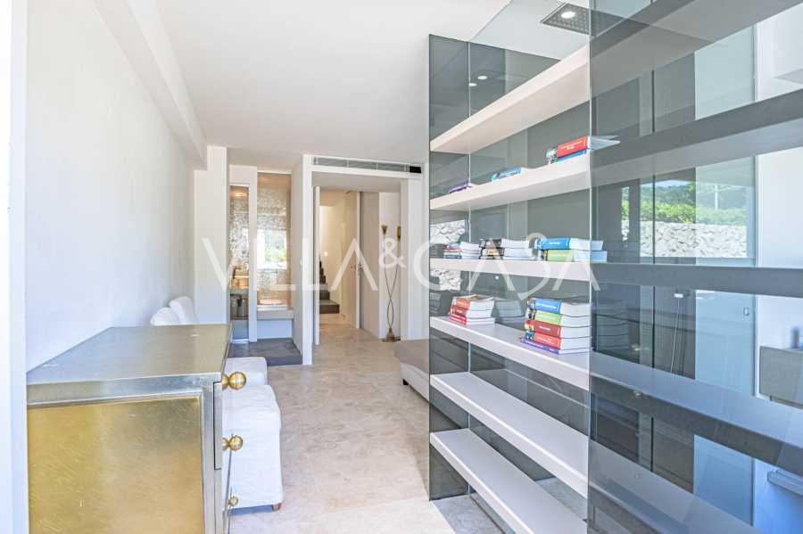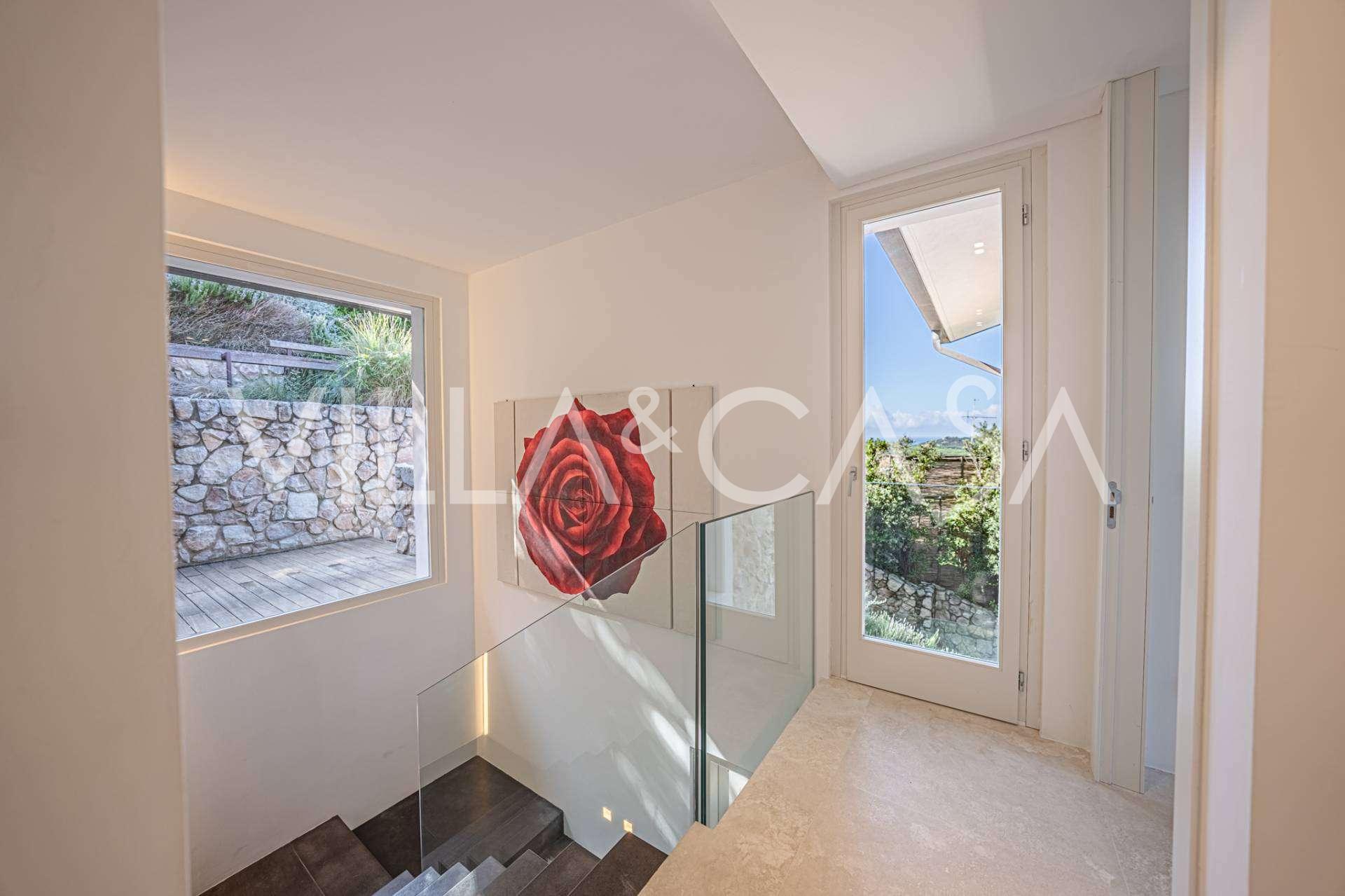 Recentemente totalmente renovada e distribuída em quatro níveis, conectados por um elevador interno, a residência exibe uma rara elegância e funcionalidade refinada. A arquitetura, com suas linhas impecáveis e fachadas de vidro, cria harmonia entre os espaços internos e os encantadores terraços. A villa é cercada por um jardim em terraço bem cuidado de 500 m², oferecendo aos proprietários privacidade e tranquilidade, onde também está escondida uma sofisticada área de lazer com piscina.