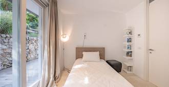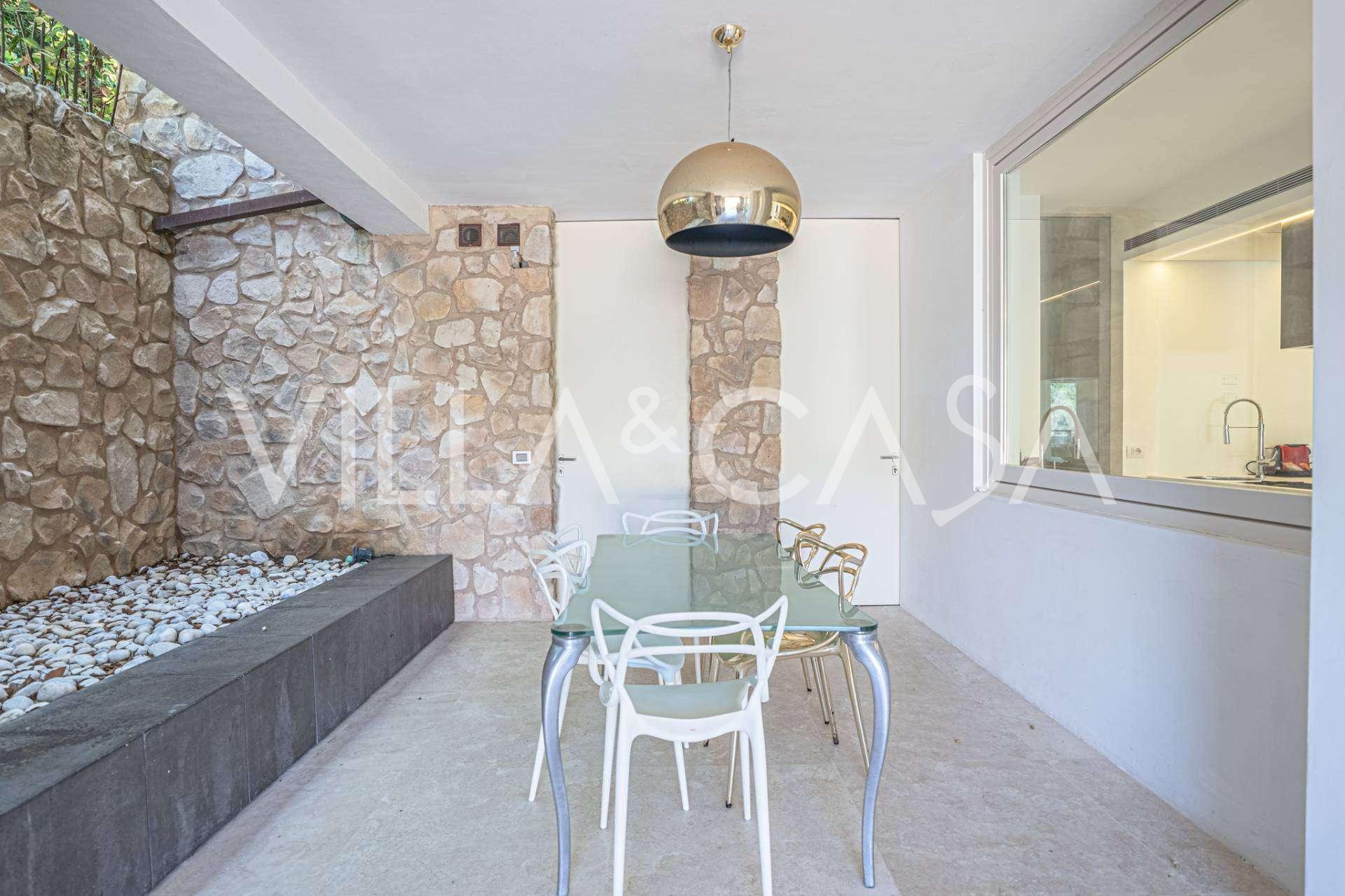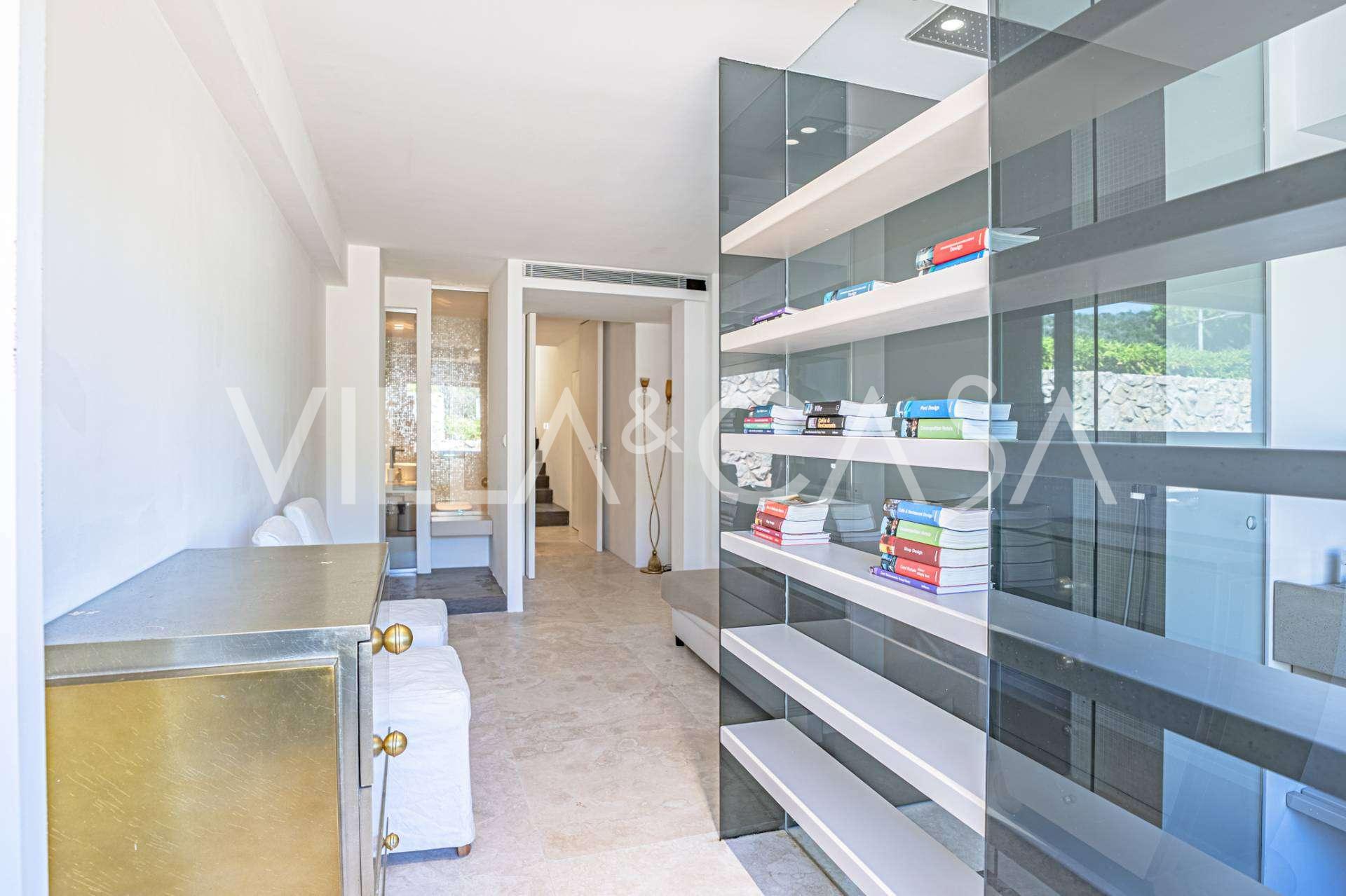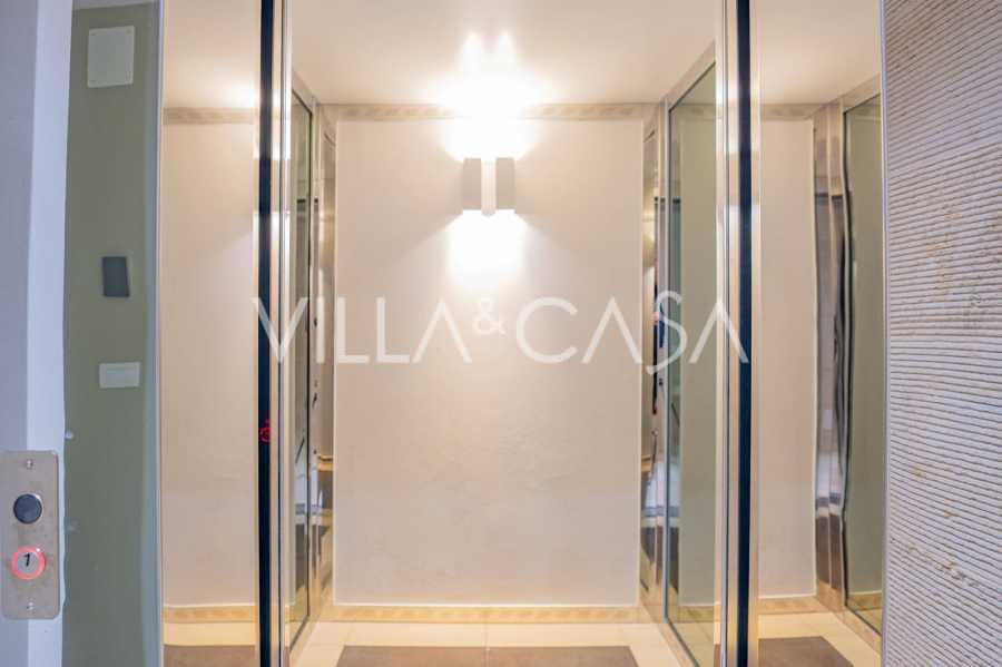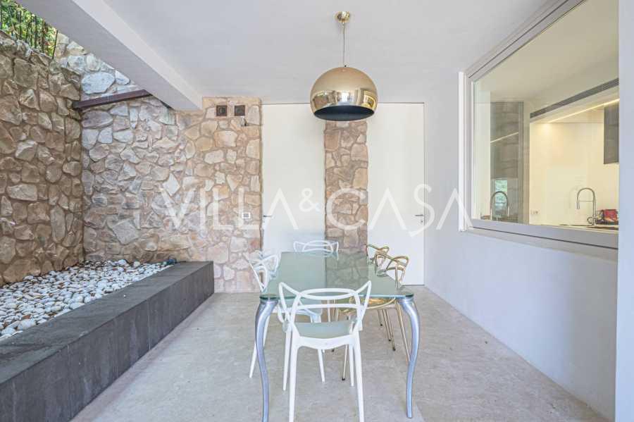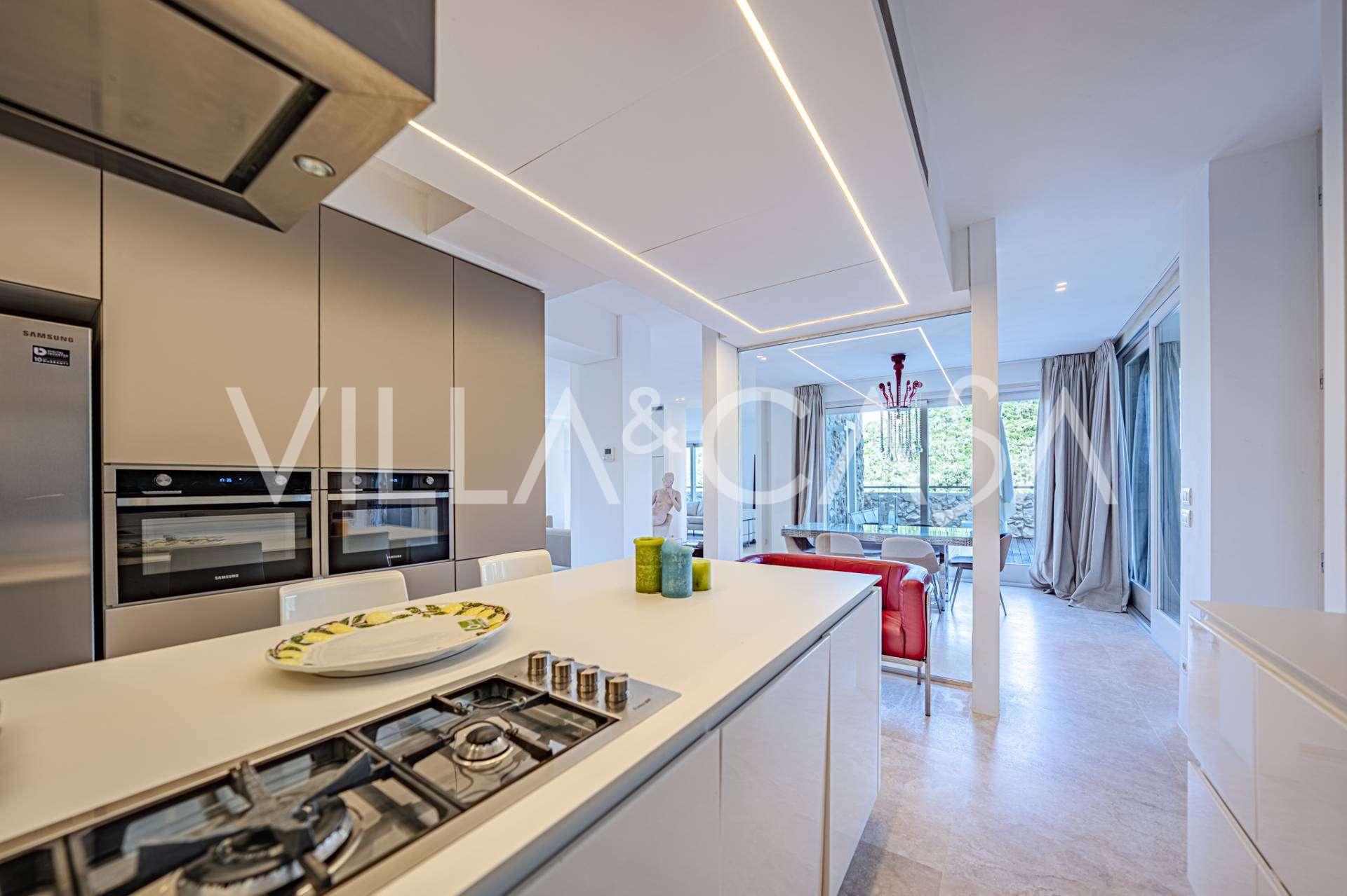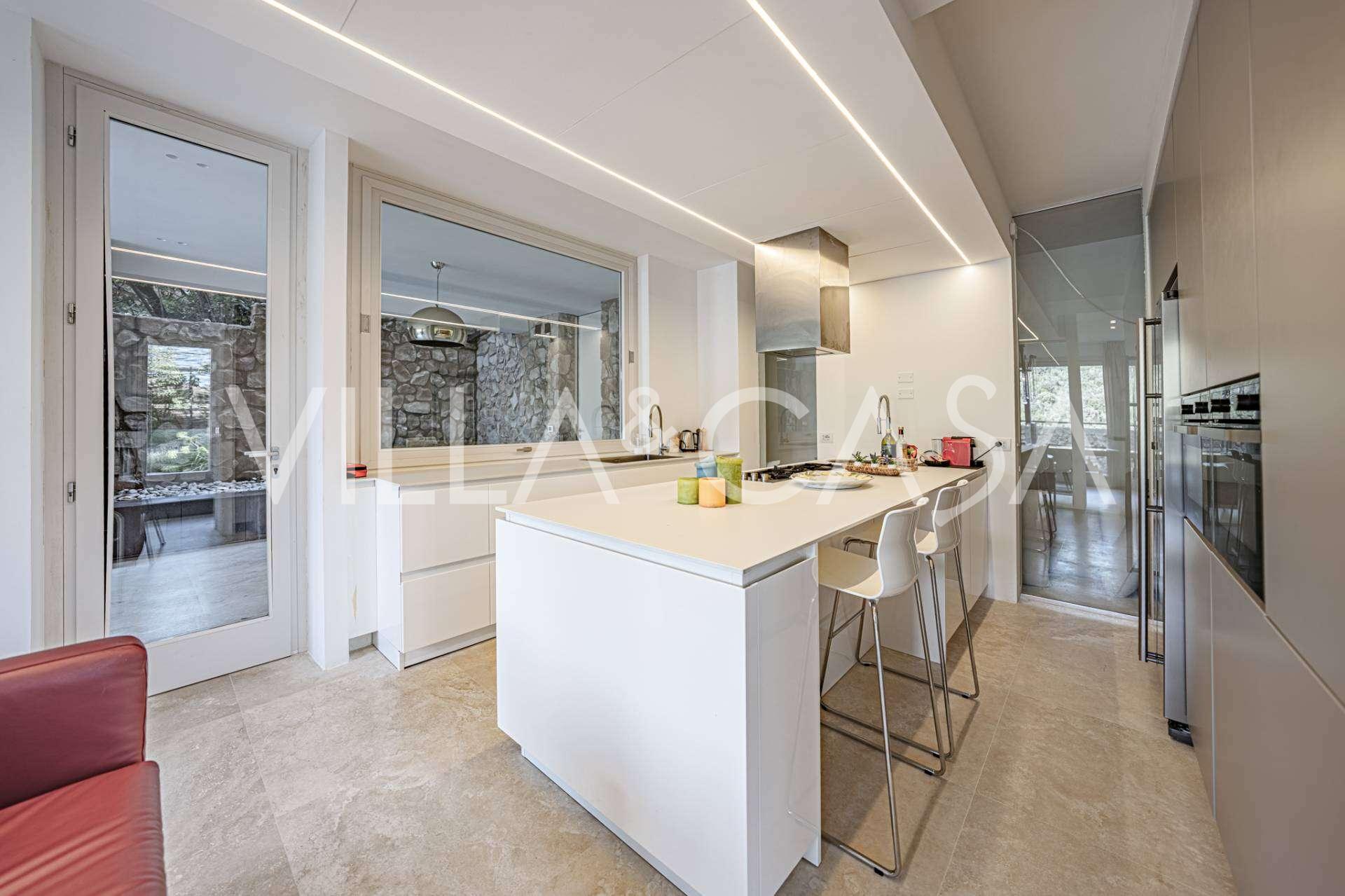 Recentemente totalmente renovada e distribuída em quatro níveis, conectados por um elevador interno, a residência exibe uma rara elegância e funcionalidade refinada. A arquitetura, com suas linhas impecáveis e fachadas de vidro, cria harmonia entre os espaços internos e os encantadores terraços. A villa é cercada por um jardim em terraço bem cuidado de 500 m², oferecendo aos proprietários privacidade e tranquilidade, onde também está escondida uma sofisticada área de lazer com piscina.
