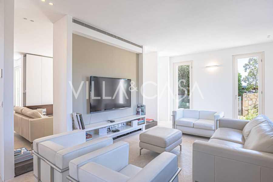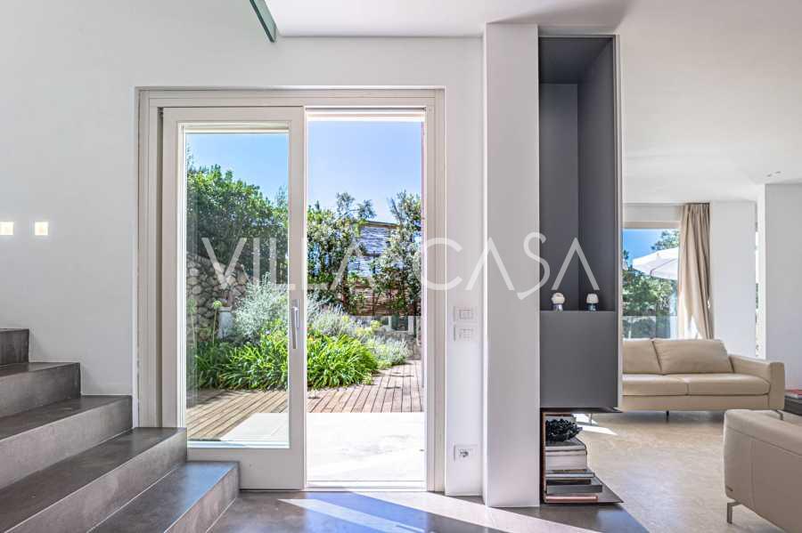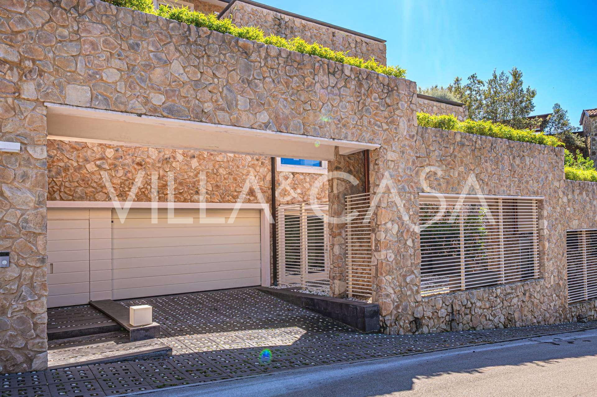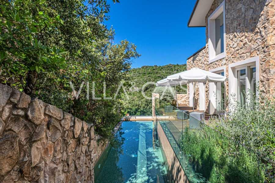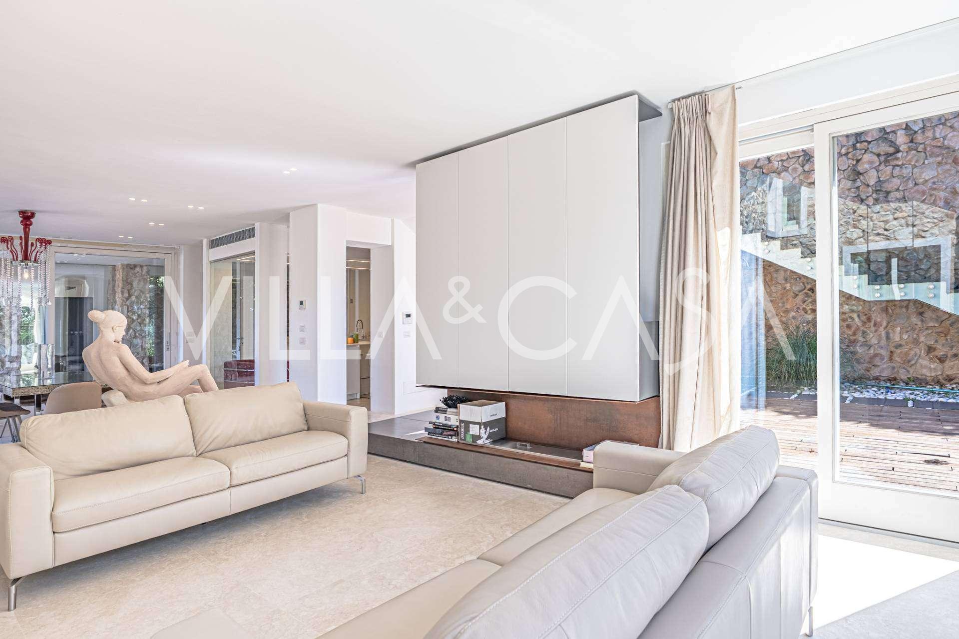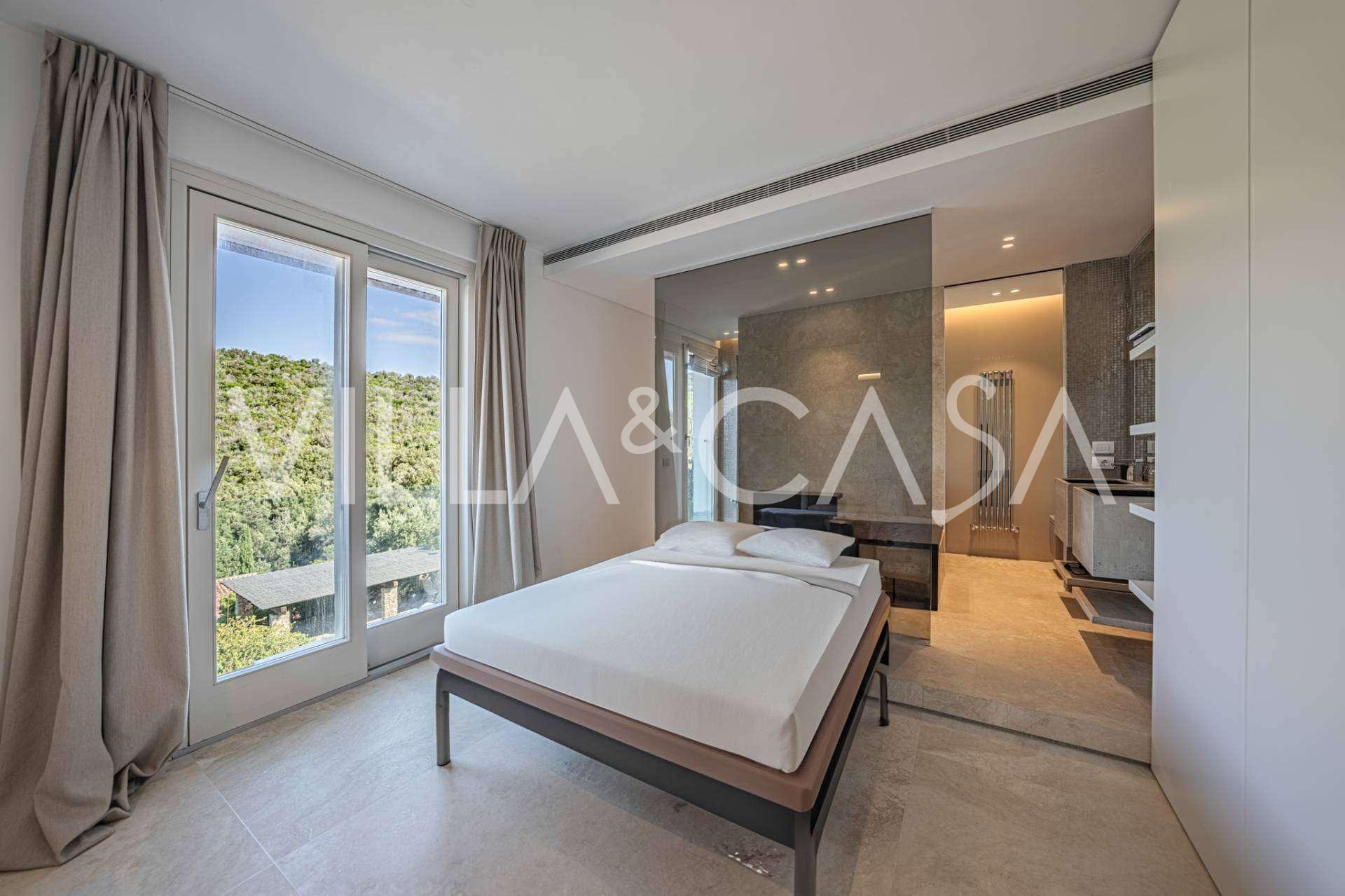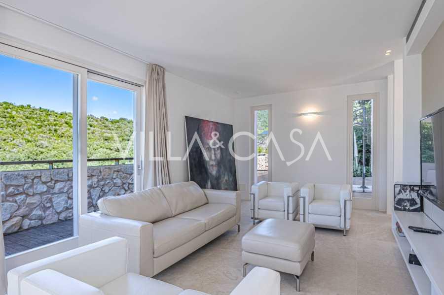 Recentemente totalmente renovada e distribuída em quatro níveis, conectados por um elevador interno, a residência exibe uma rara elegância e funcionalidade refinada. A arquitetura, com suas linhas impecáveis e fachadas de vidro, cria harmonia entre os espaços internos e os encantadores terraços. A villa é cercada por um jardim em terraço bem cuidado de 500 m², oferecendo aos proprietários privacidade e tranquilidade, onde também está escondida uma sofisticada área de lazer com piscina.