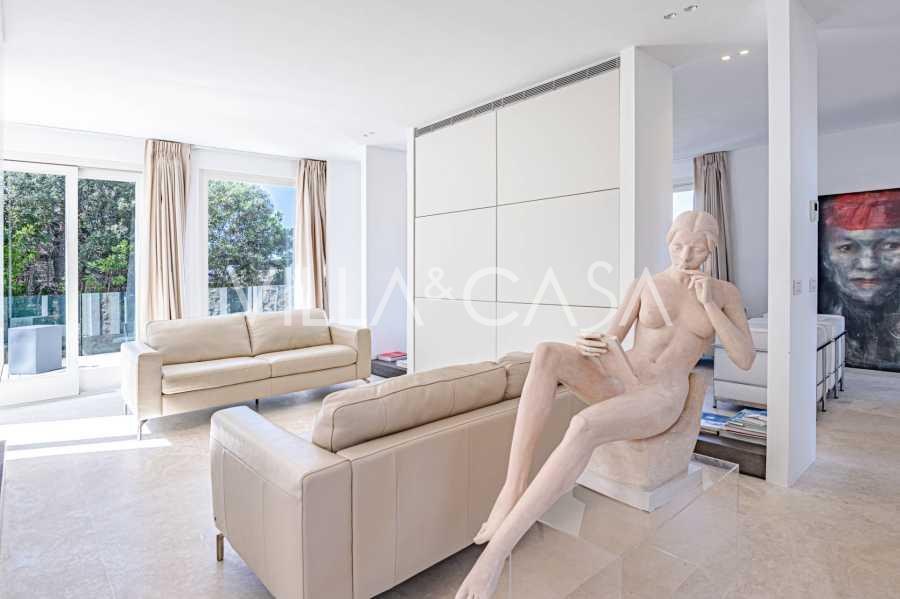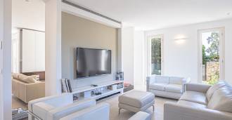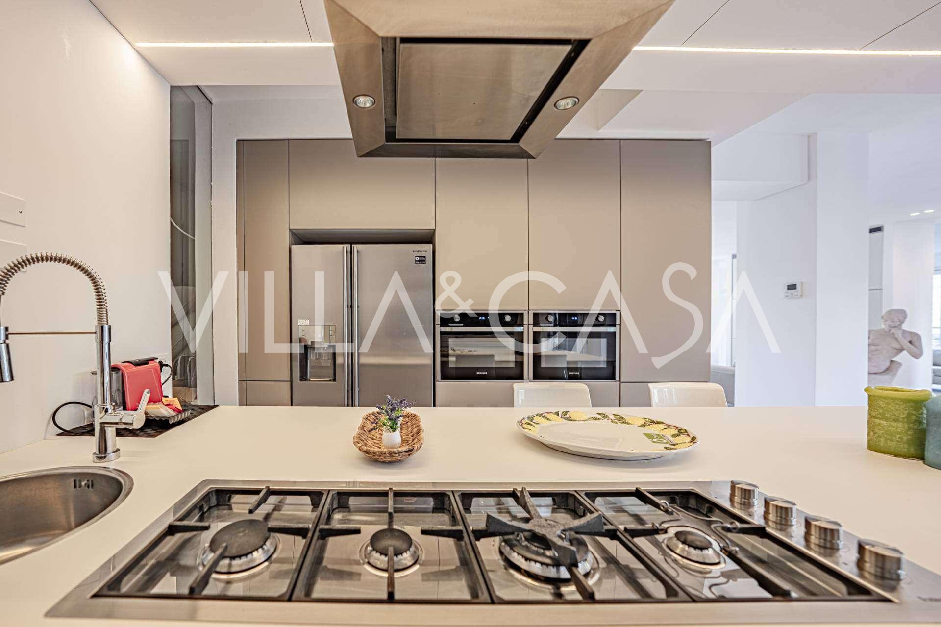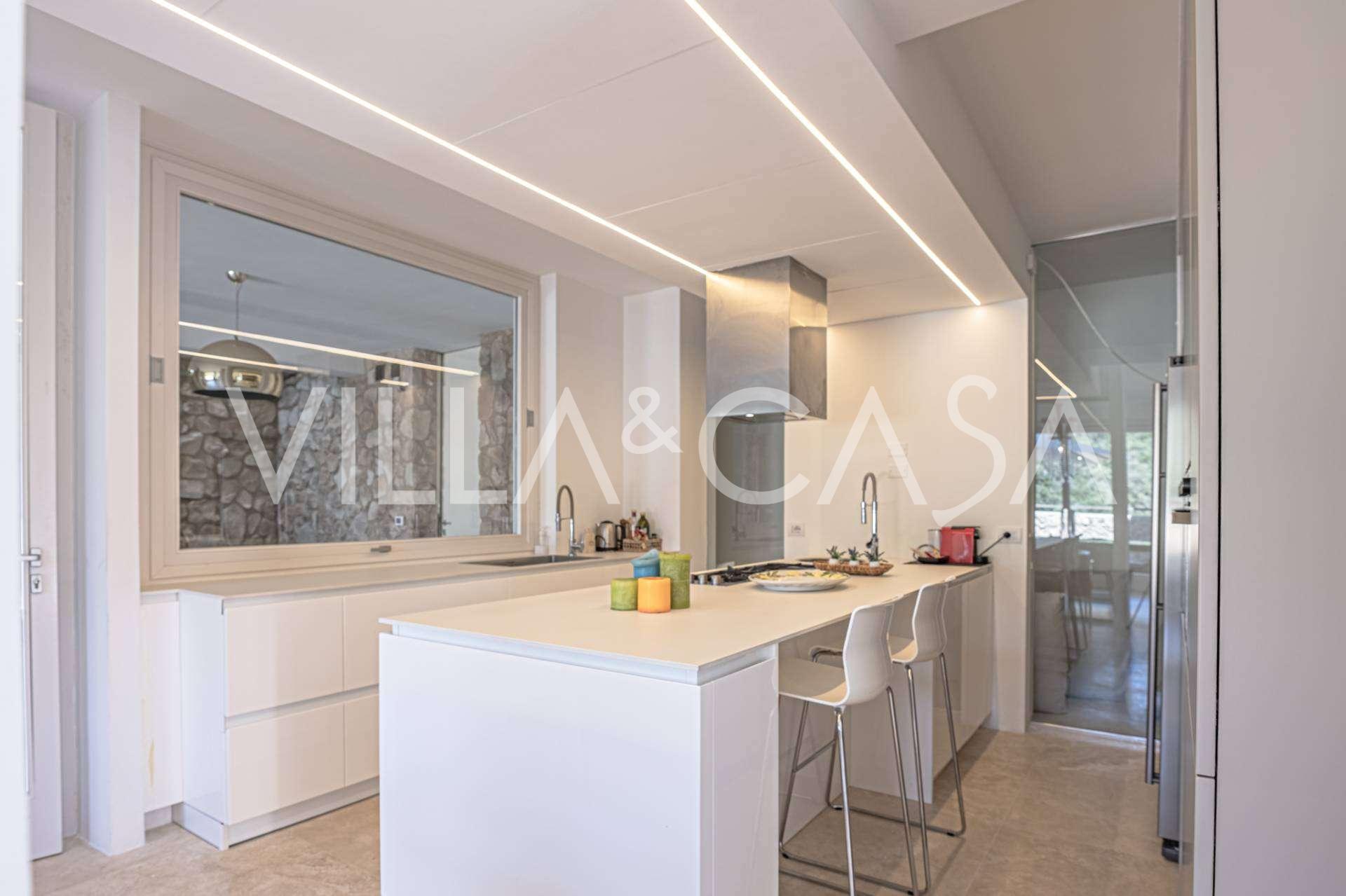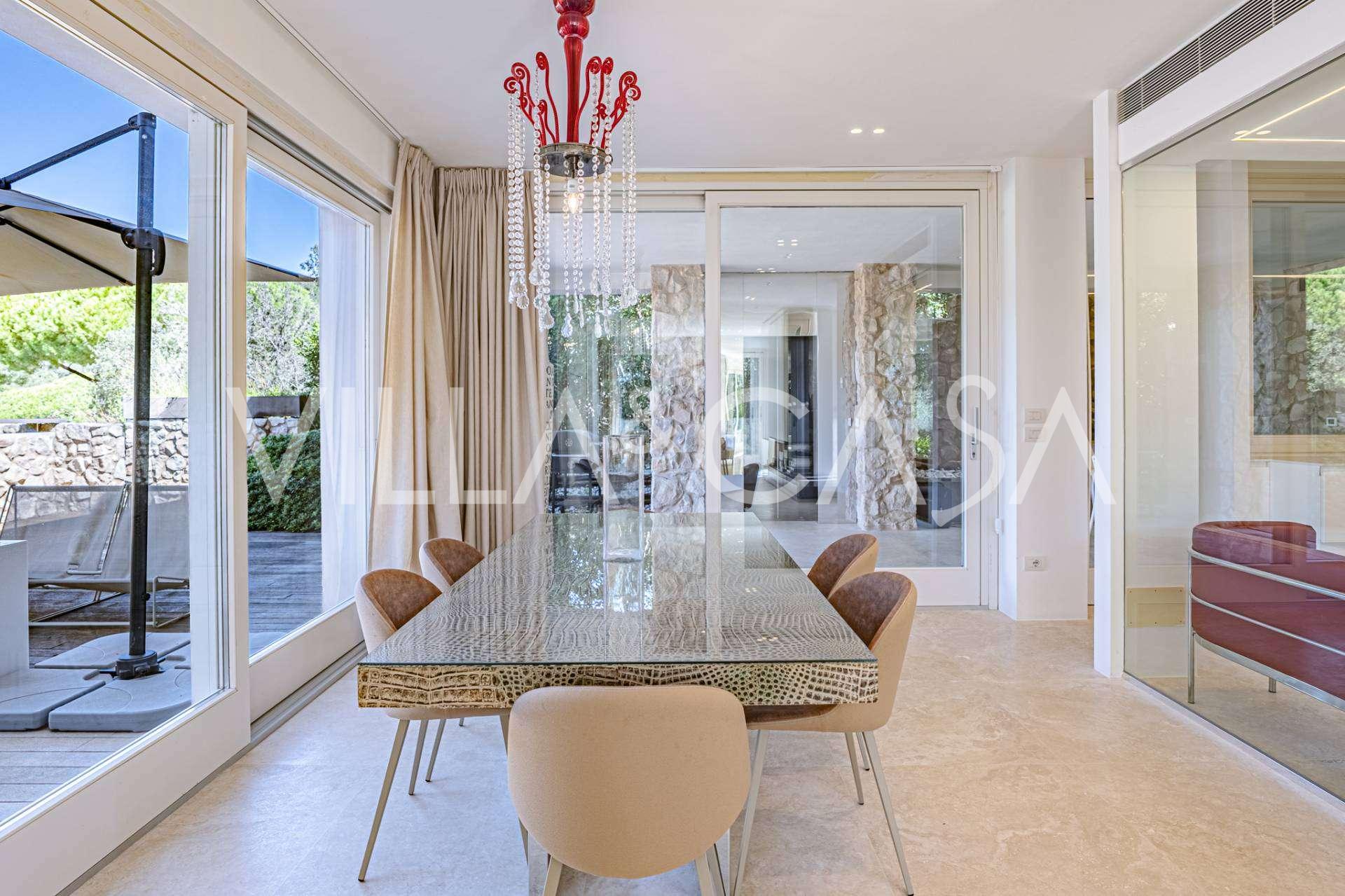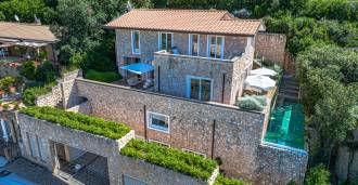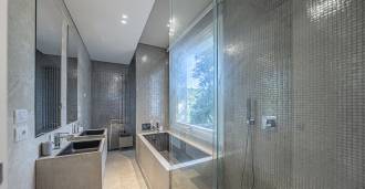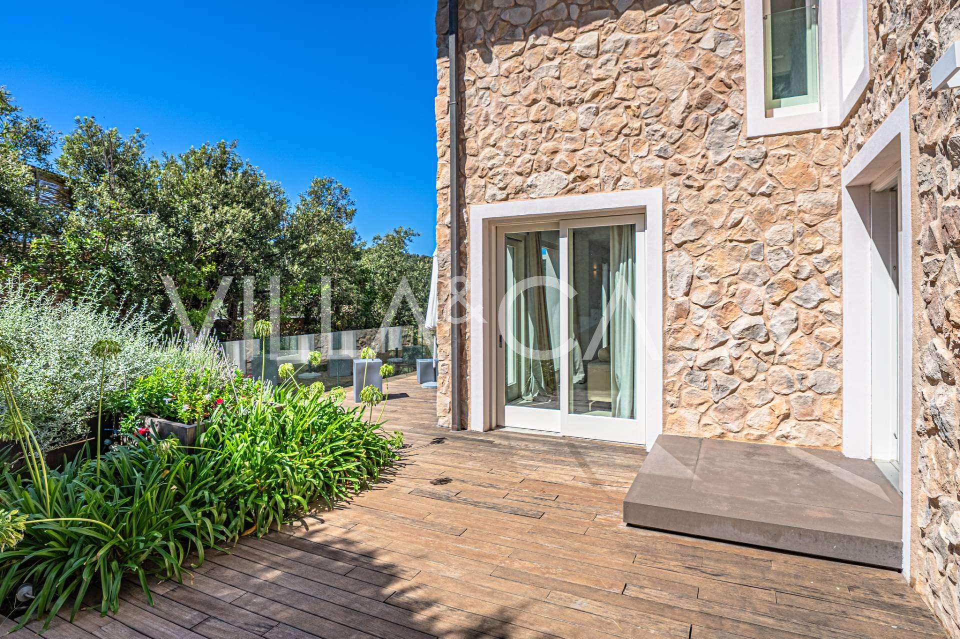 Recentemente totalmente renovada e distribuída em quatro níveis, conectados por um elevador interno, a residência exibe uma rara elegância e funcionalidade refinada. A arquitetura, com suas linhas impecáveis e fachadas de vidro, cria harmonia entre os espaços internos e os encantadores terraços. A villa é cercada por um jardim em terraço bem cuidado de 500 m², oferecendo aos proprietários privacidade e tranquilidade, onde também está escondida uma sofisticada área de lazer com piscina.