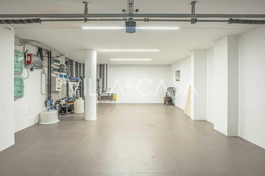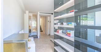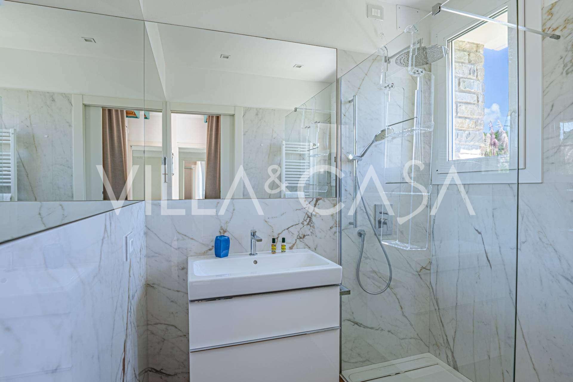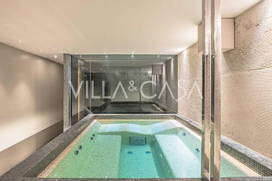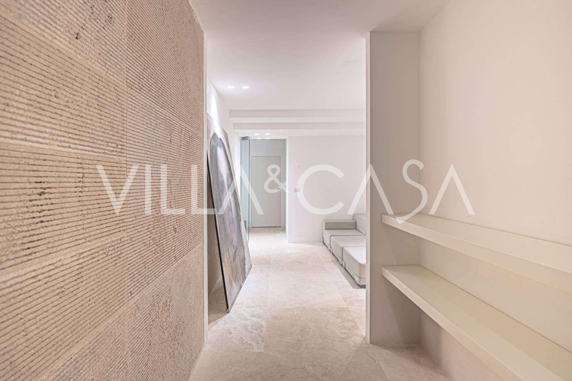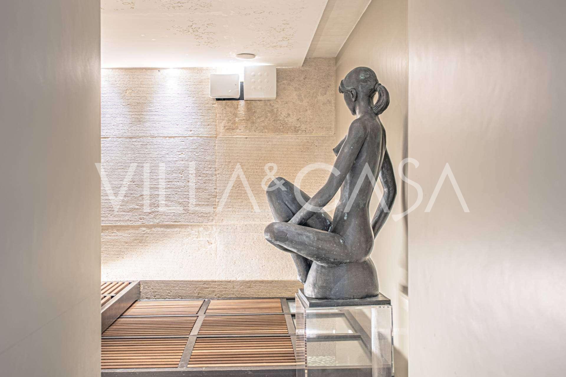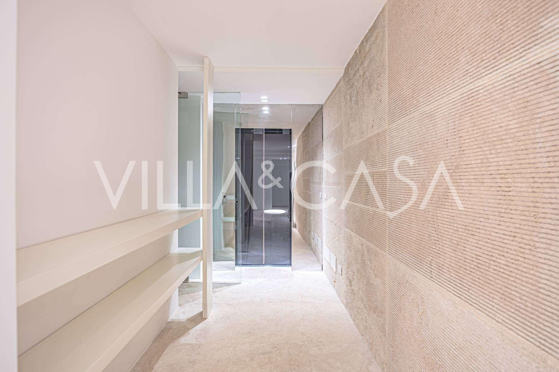 No nível do jardim, há um apartamento separado com entrada independente, ideal para hóspedes ou funcionários. Na parte inferior da villa, encontra-se uma magnífica área de bem-estar: uma espaçosa banheira de hidromassagem, um hammam turco, uma sala privada para relaxamento, além de um quarto adicional com banheiro privativo e áreas de armazenamento, incluindo uma adega.
