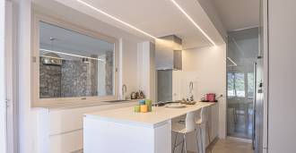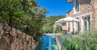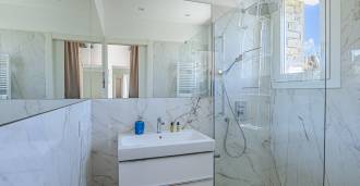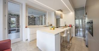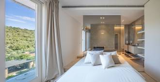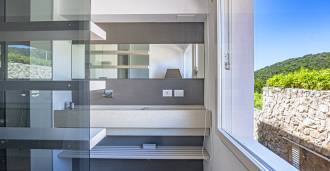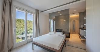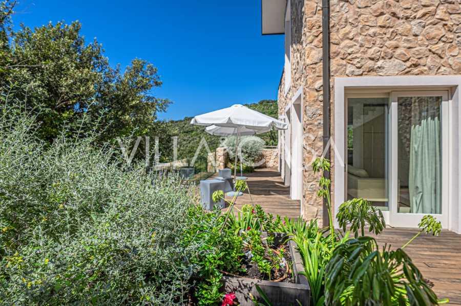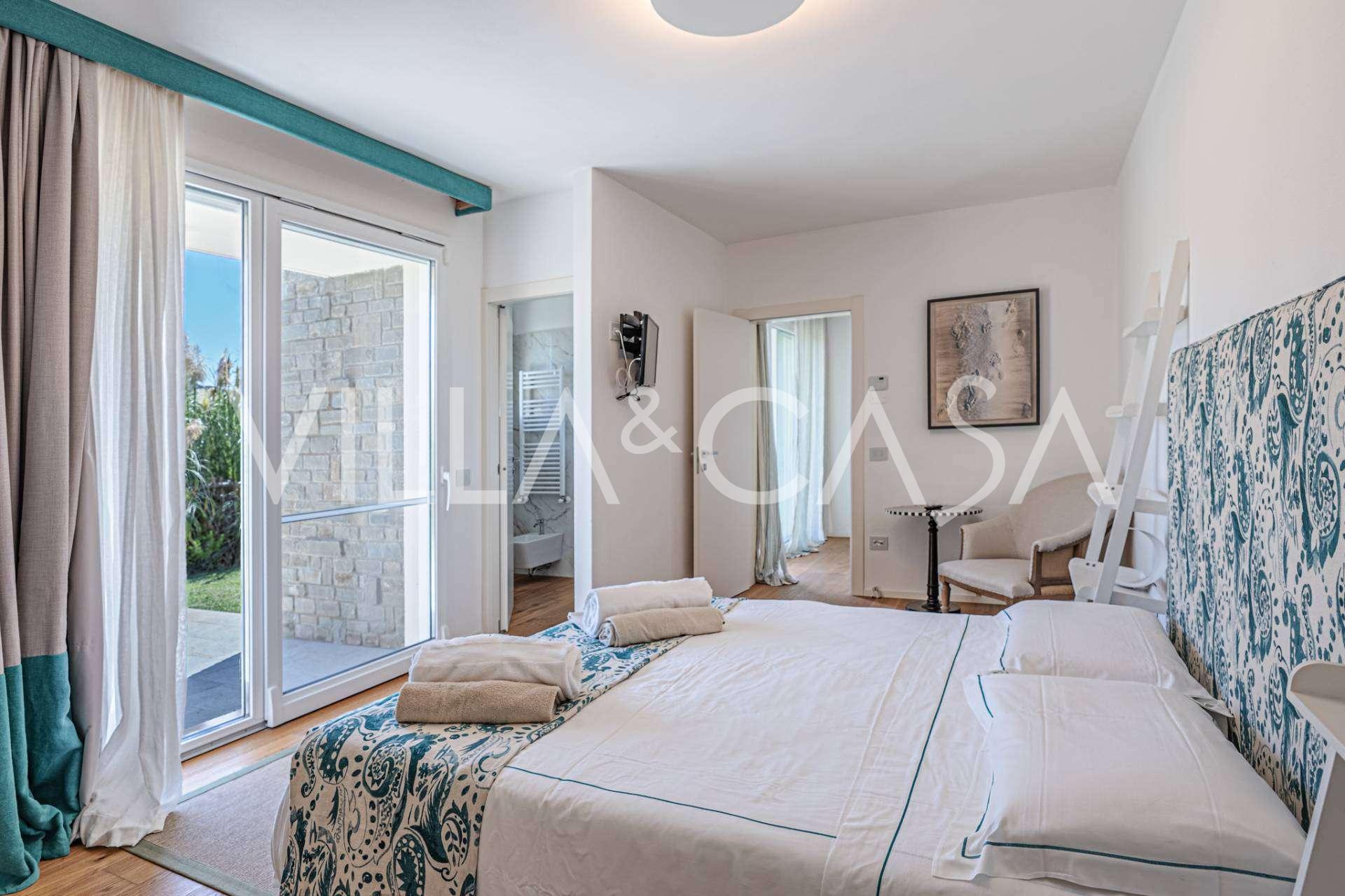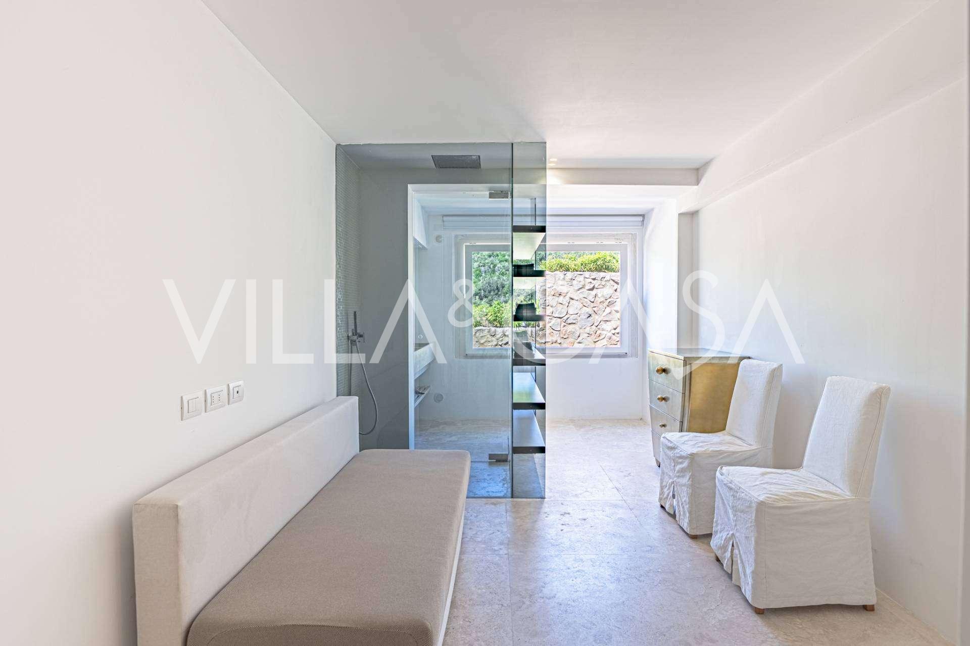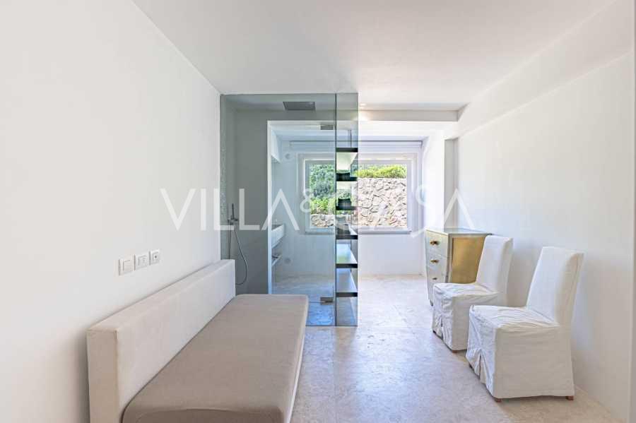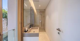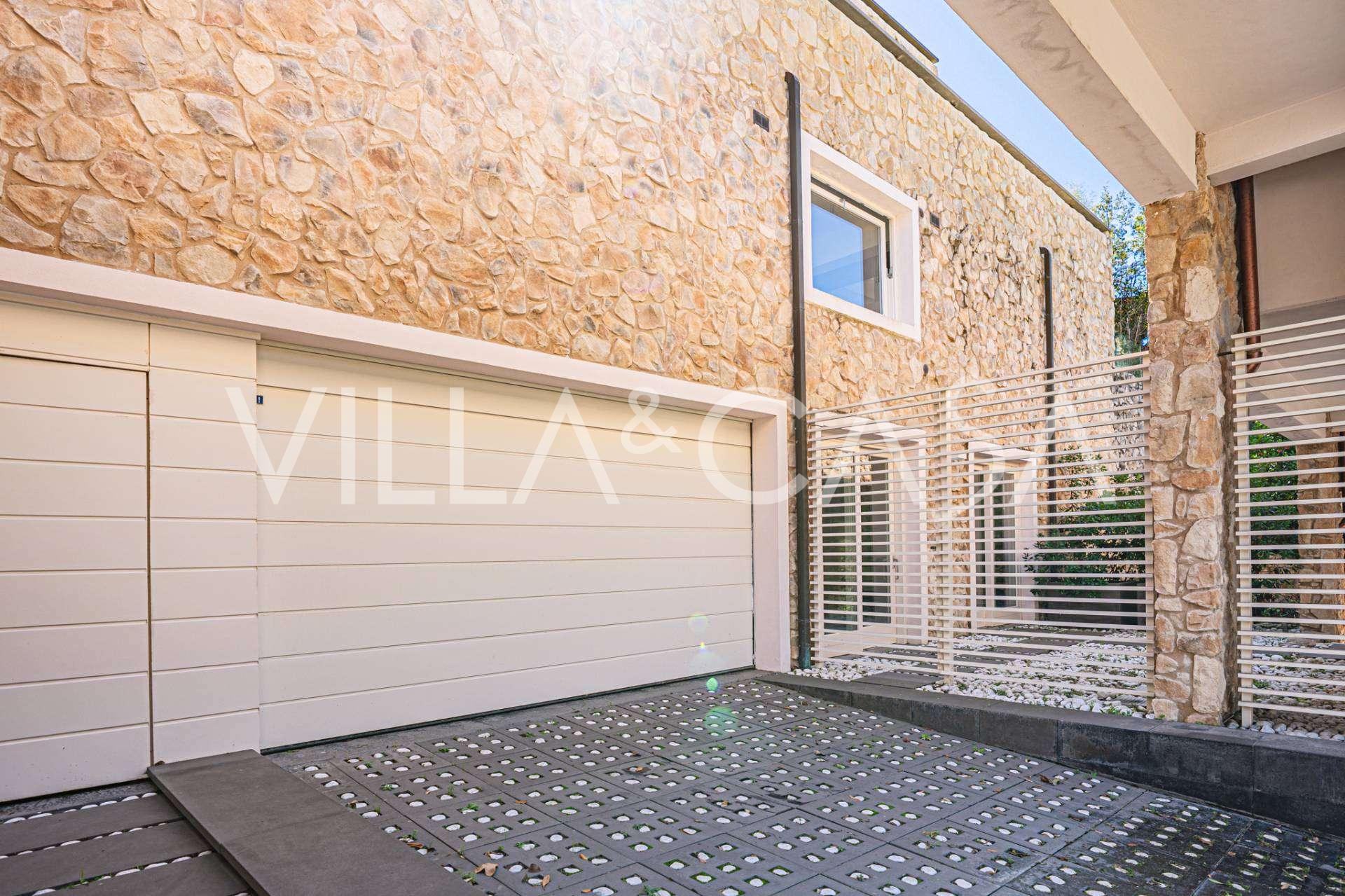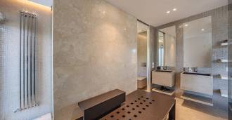No nível do jardim, há um apartamento separado com entrada independente, ideal para hóspedes ou funcionários. Na parte inferior da villa, encontra-se uma magnífica área de bem-estar: uma espaçosa banheira de hidromassagem, um hammam turco, uma sala privada para relaxamento, além de um quarto adicional com banheiro privativo e áreas de armazenamento, incluindo uma adega.