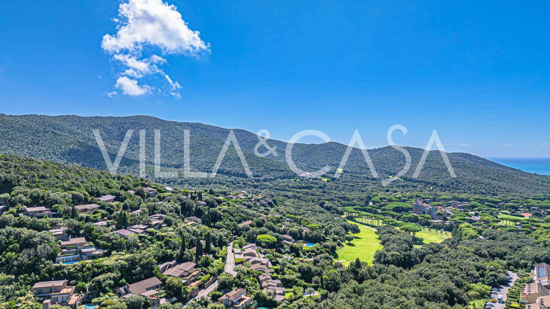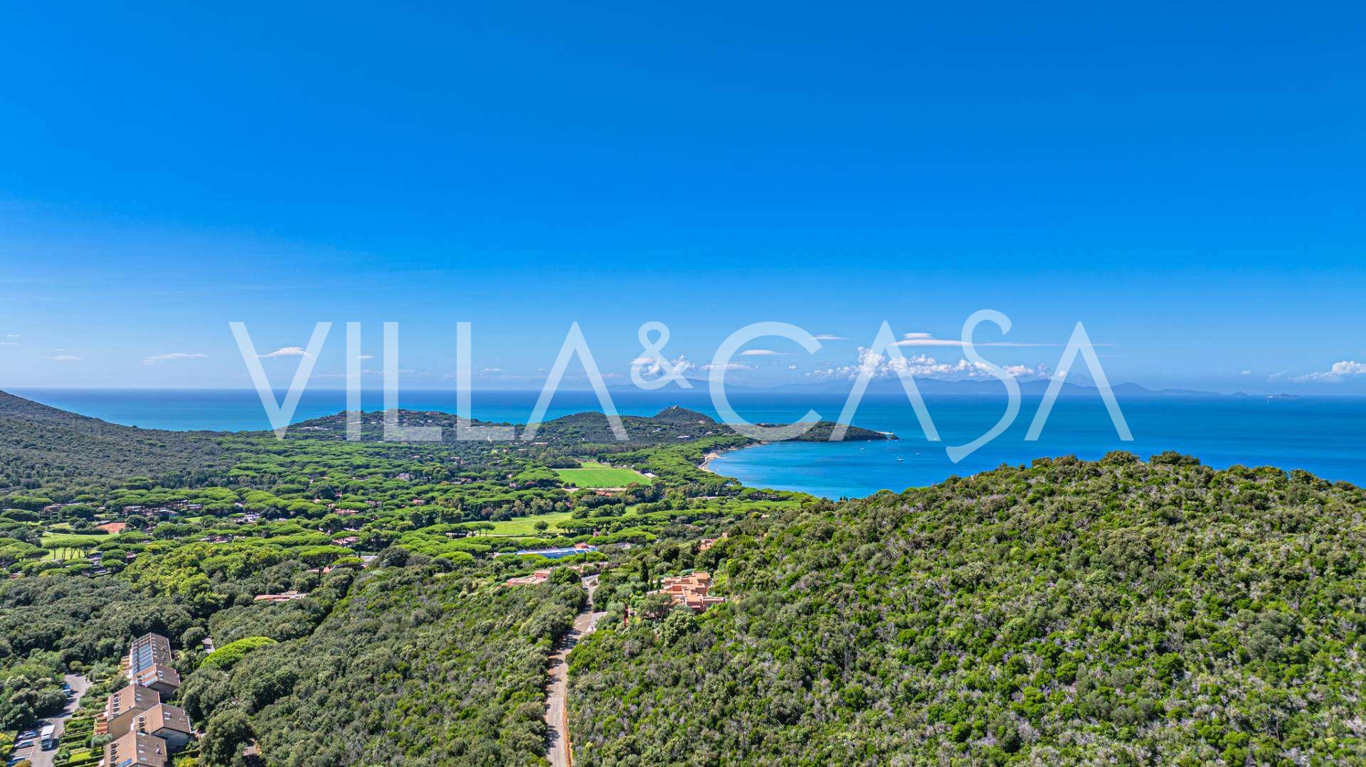 Nos primeiros montes de Punta Ala, de onde se tem uma vista impressionante da costa de Castiglione della Pescaia com seus tons esmeralda e as suaves linhas das paisagens toscanas, está majestuosamente situada esta notável villa de classe Luxury estate, que reflete um estilo contemporâneo e o mais alto conforto.