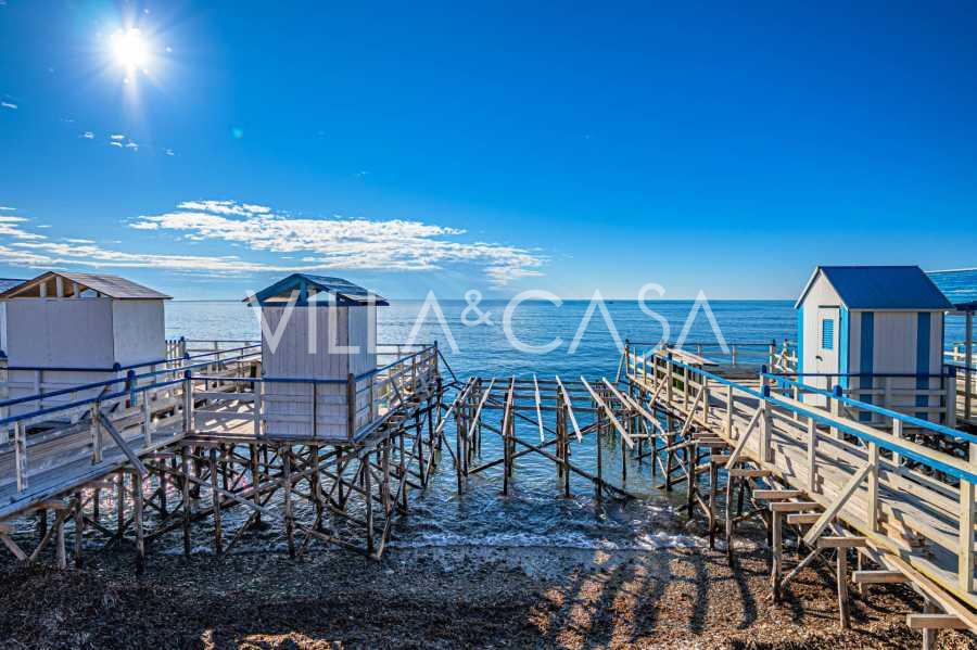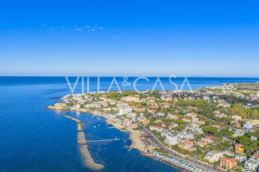 A apenas cem metros da costa azul do Mar Tirreno, no prestigiado resort de Santa Marinella, encontra-se uma deslumbrante vila de 153 m² que incorpora o elegante estilo marítimo italiano. Esta requintada residência com vista panorâmica para o mar está distribuída em dois níveis e combina perfeitamente aconchego, conforto e a atmosfera de um tranquilo refúgio à beira-mar.