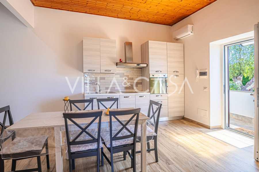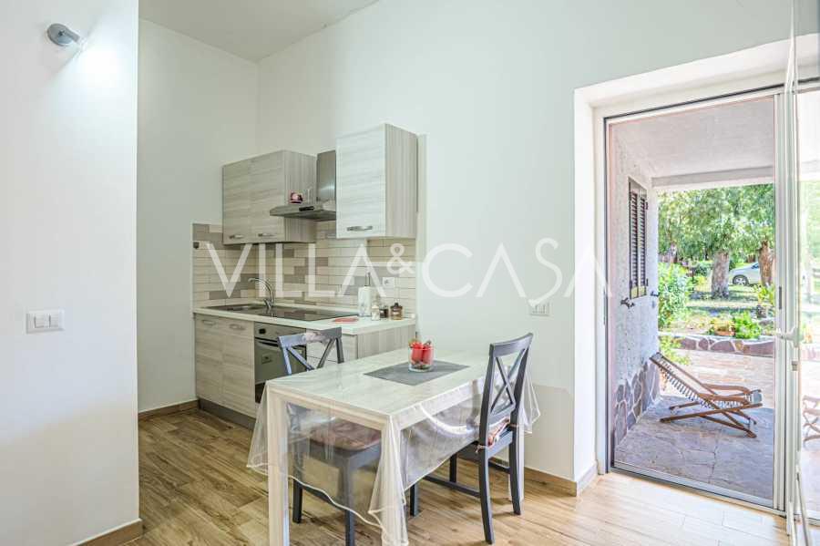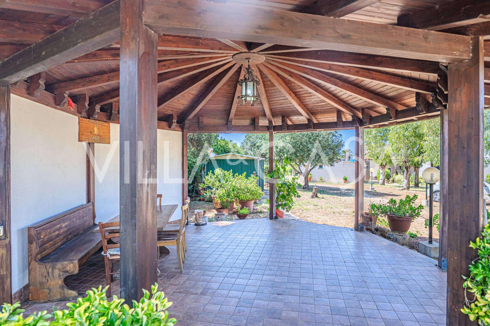 A residência é complementada por construções auxiliares: um edifício separado com banheiro, mini-cozinha, forno a lenha, lavanderia e despensa, além de um apartamento independente de cerca de 24 m² com quarto próprio, banheiro e mini-cozinha. Ele é adornado por um gazebo de madeira de cerca de 100 m² com cobertura, de onde se pode apreciar uma vista pitoresca do mar. O apartamento destaca-se pela privacidade e excelente insolação, tem dois acessos com portões automáticos, está em estado impecável, totalmente mobiliado e equipado com ar condicionado e sistema fotovoltaico.