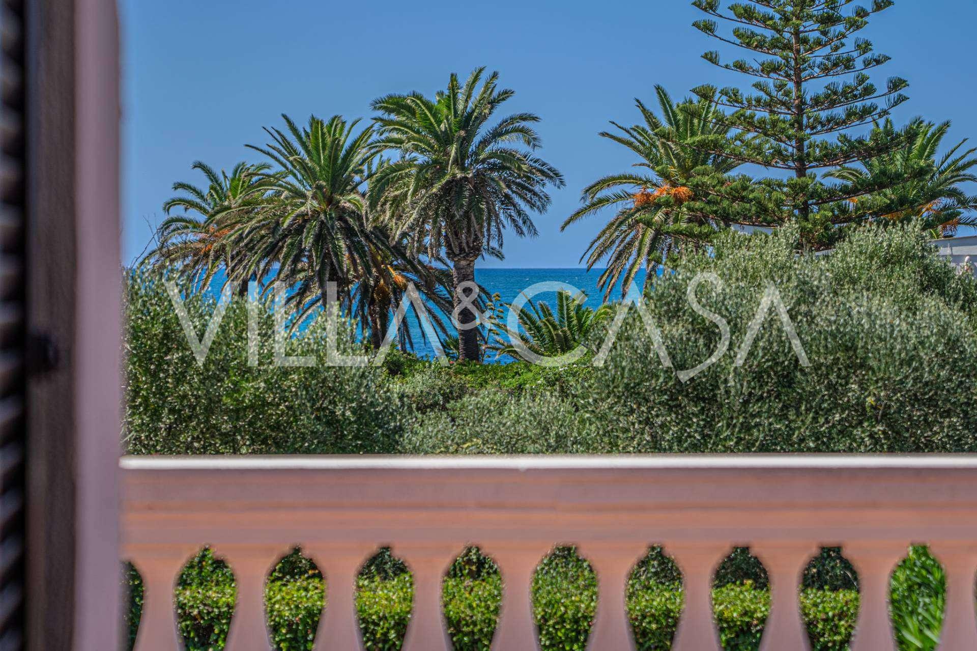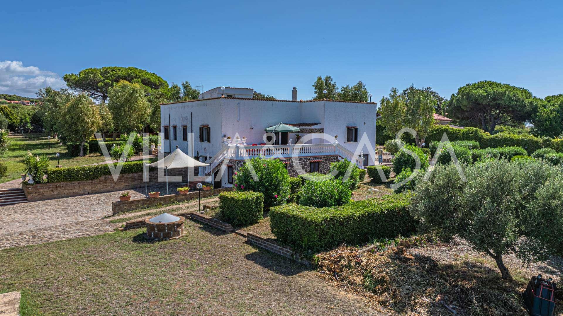 No coração da costa de Santa Marinella, a poucos passos do mar, encontra-se uma residência sofisticada de raro valor — uma villa independente com uma área total de cerca de 560 m², rodeada por um parque privado de aproximadamente 6.000 m², oferecendo vistas panorâmicas deslumbrantes do mar.