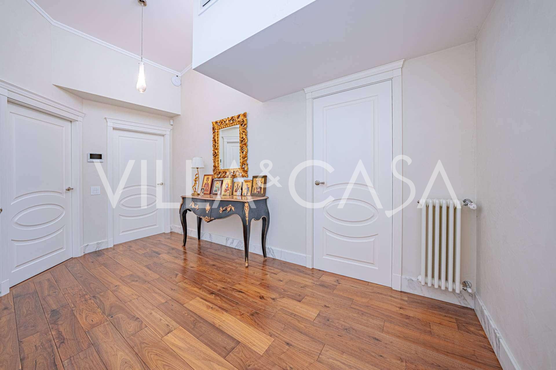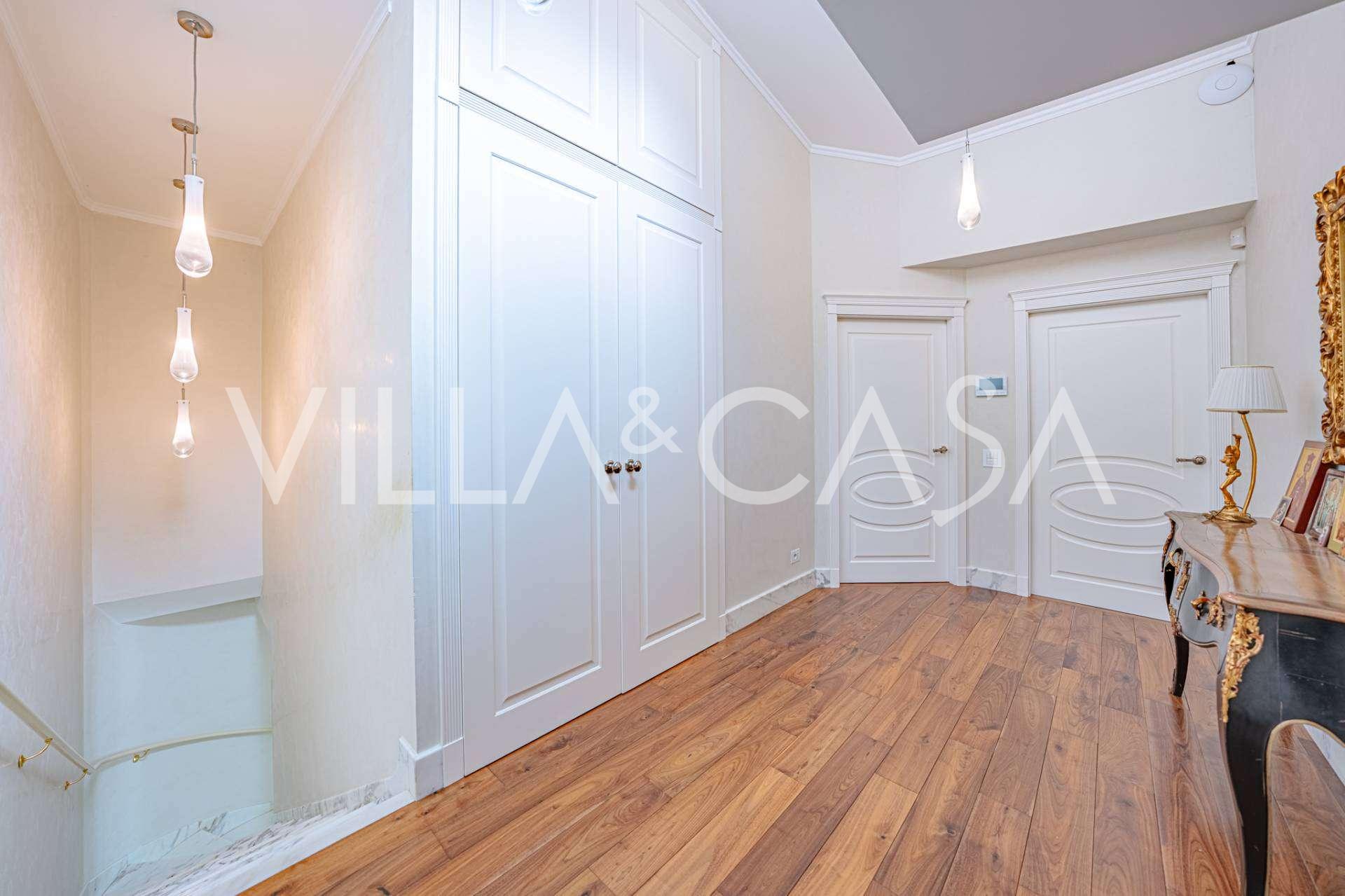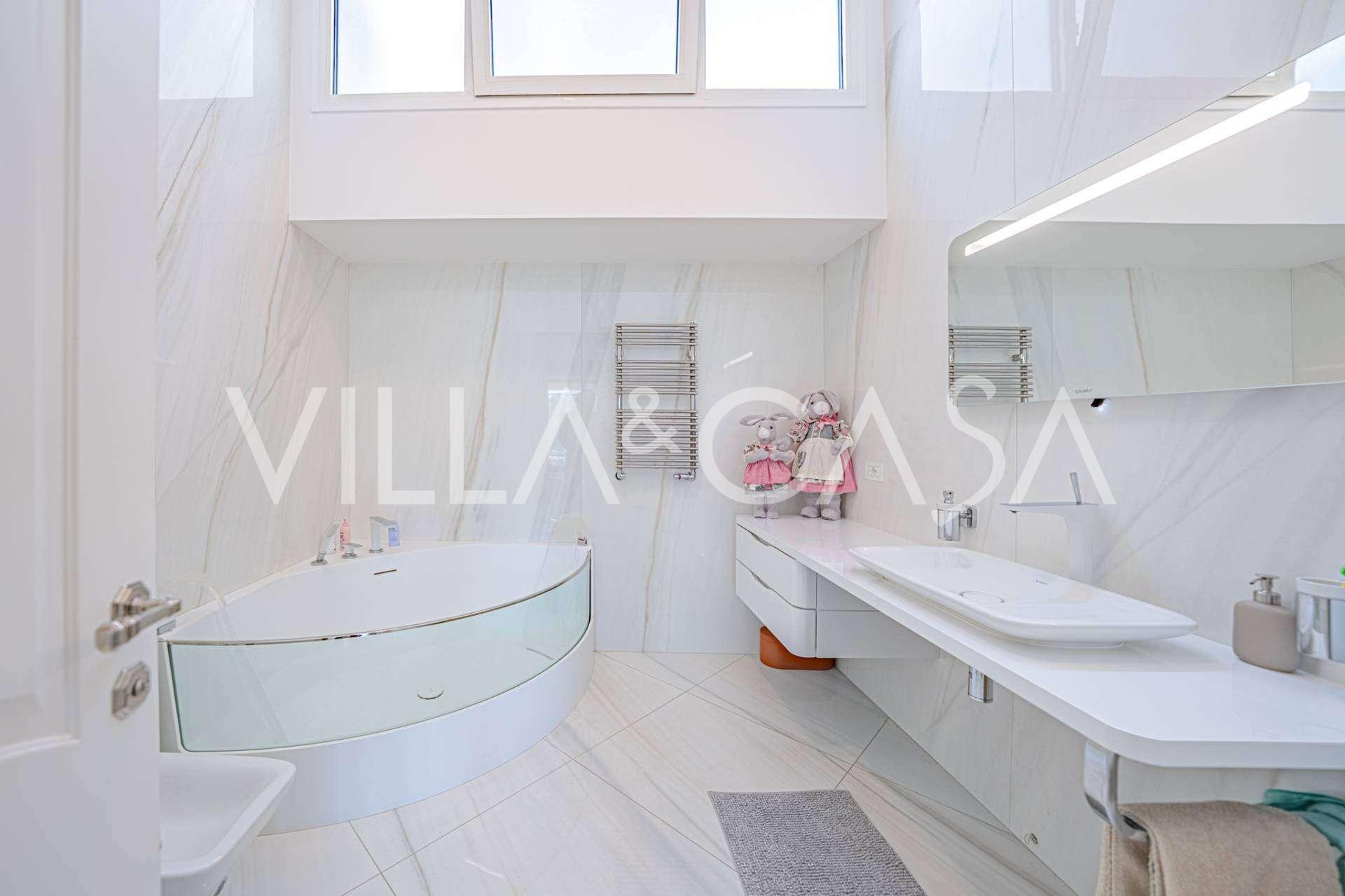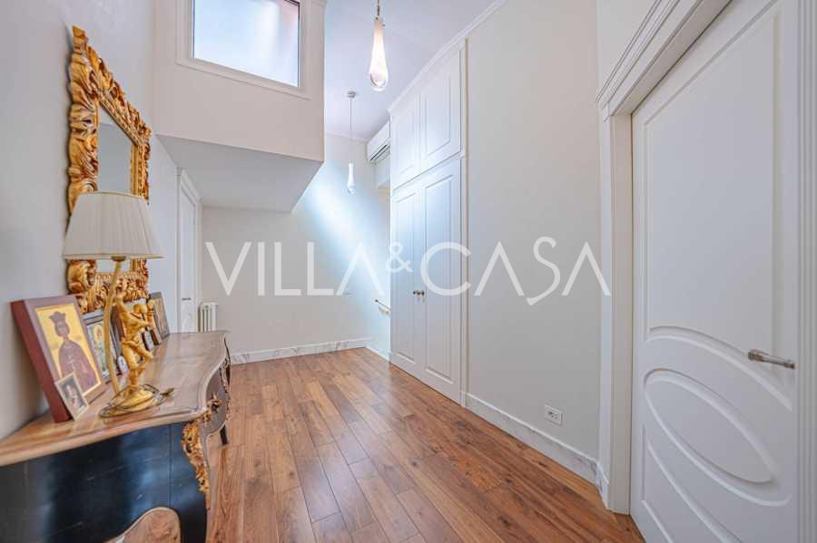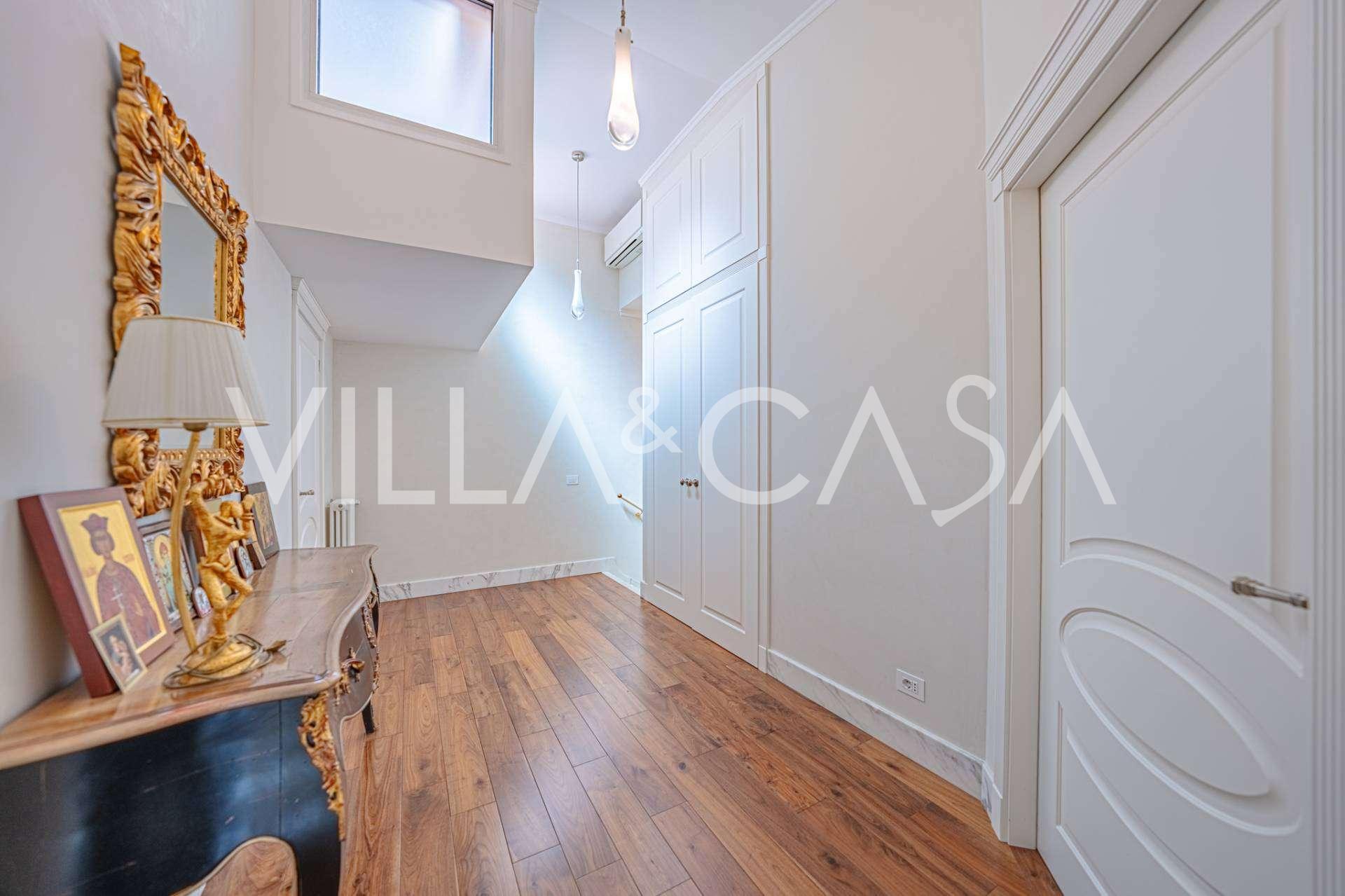 Os interiores de alto padrão incluem apenas os melhores materiais: porcelanato premium nas salas de estar e banheiros, parquet de tábuas largas na área de descanso, escada de mármore, janelas Schüco com vidro à prova de impacto. Móveis embutidos, feitos sob medida, são uma obra-prima da marcenaria italiana. Sistemas de engenharia modernos garantem alta eficiência energética de classe A.