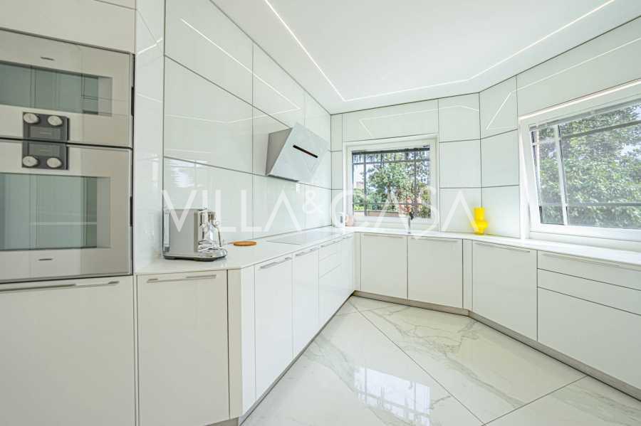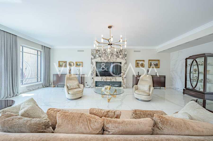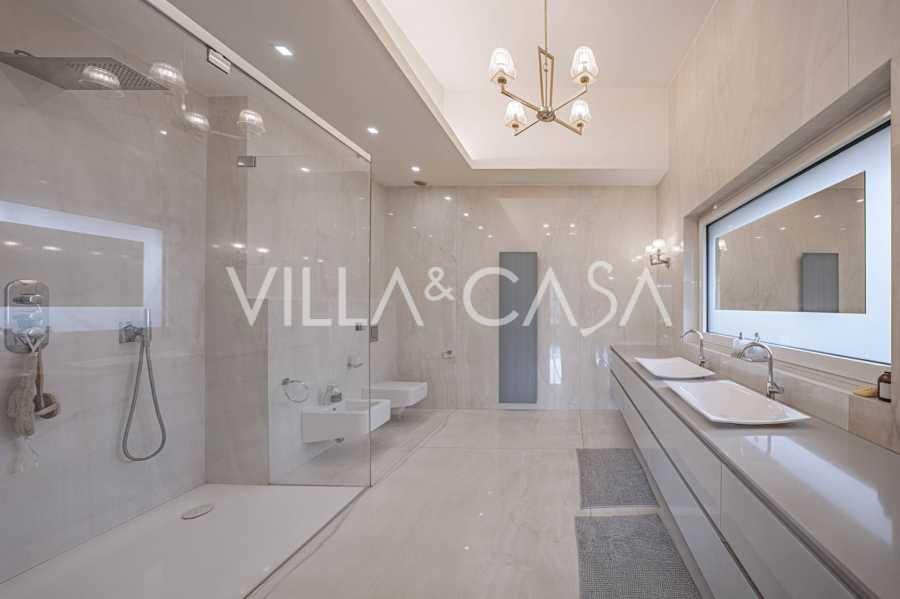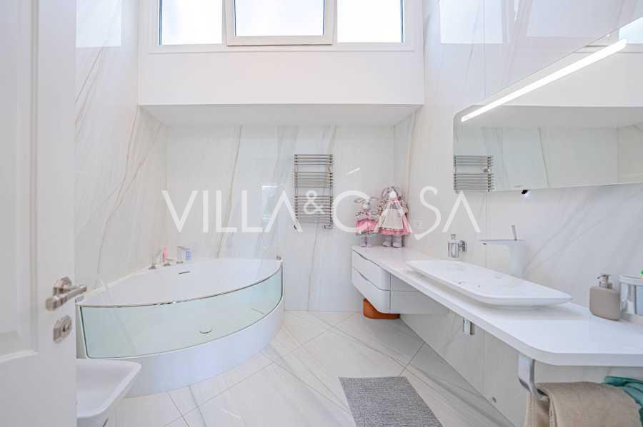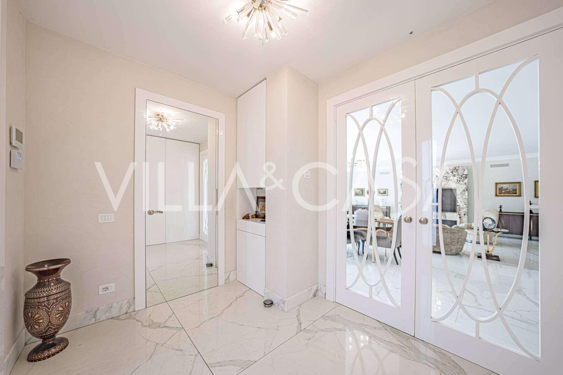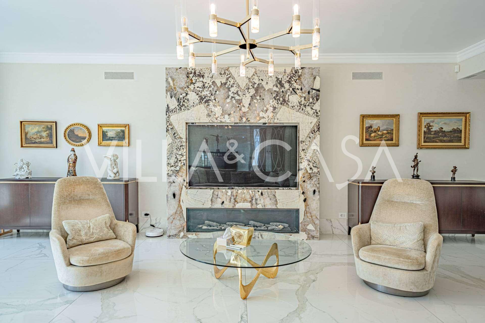Os interiores de alto padrão incluem apenas os melhores materiais: porcelanato premium nas salas de estar e banheiros, parquet de tábuas largas na área de descanso, escada de mármore, janelas Schüco com vidro à prova de impacto. Móveis embutidos, feitos sob medida, são uma obra-prima da marcenaria italiana. Sistemas de engenharia modernos garantem alta eficiência energética de classe A.
