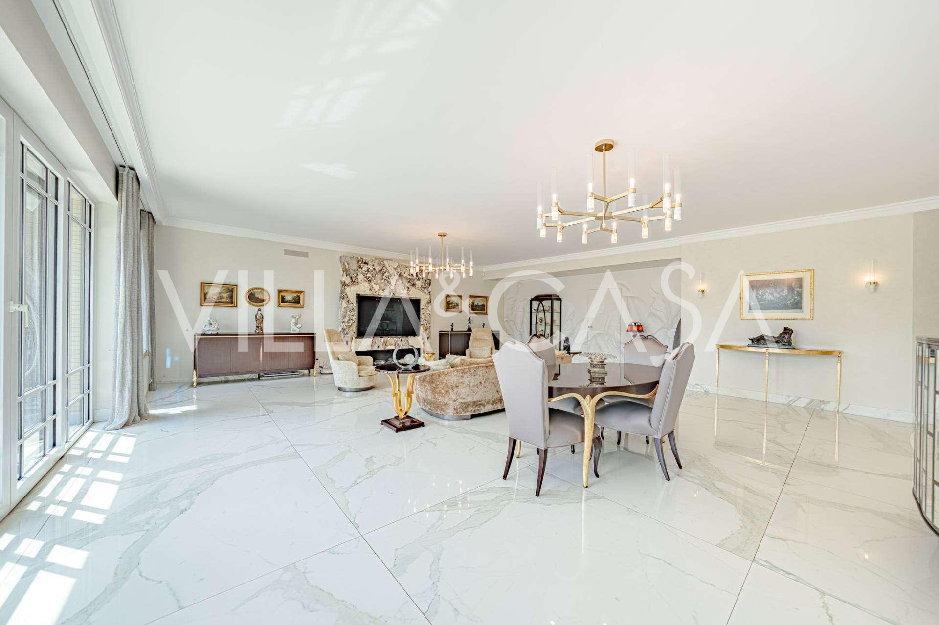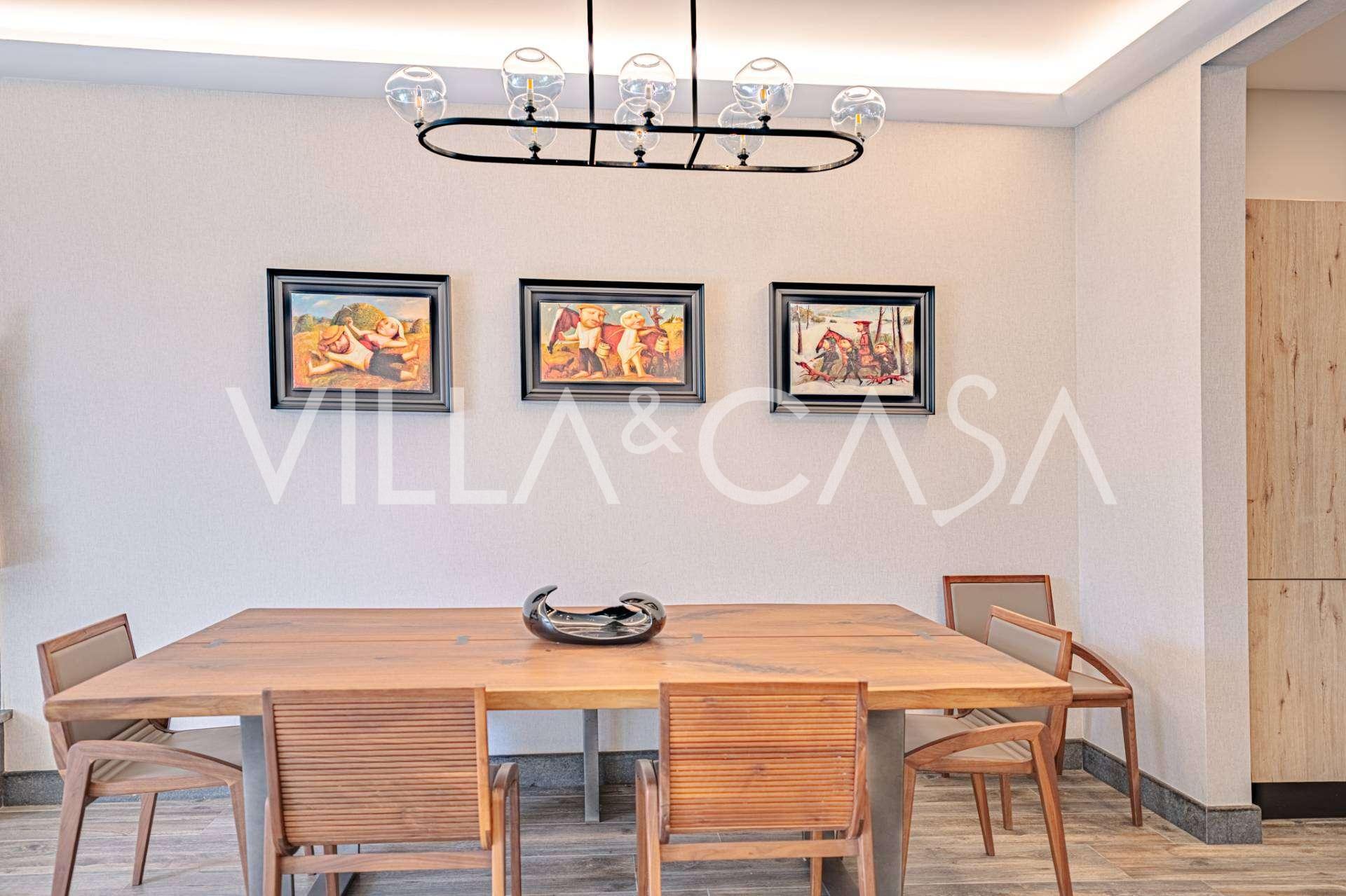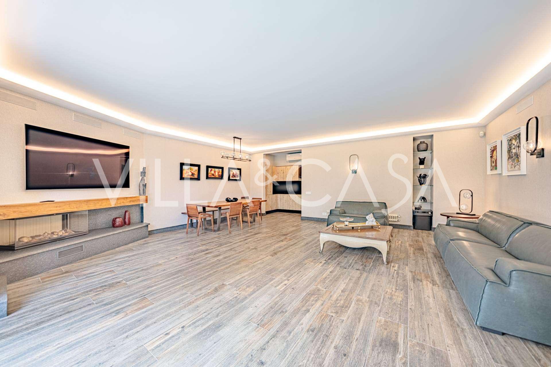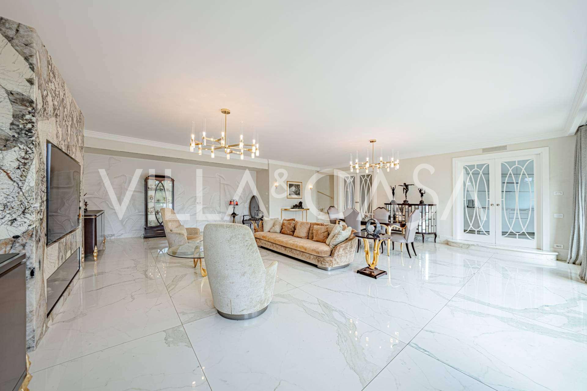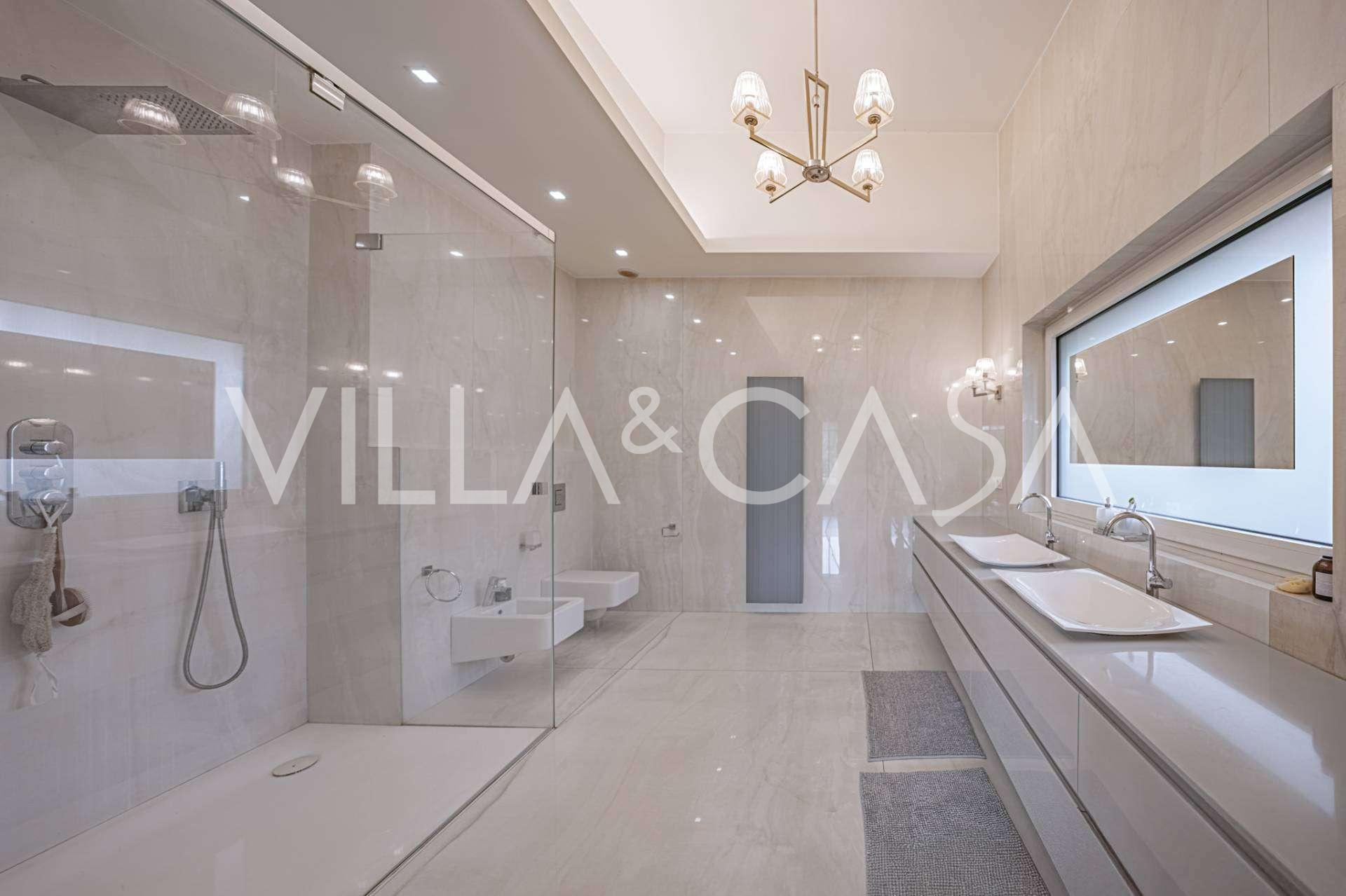 Os interiores de alto padrão incluem apenas os melhores materiais: porcelanato premium nas salas de estar e banheiros, parquet de tábuas largas na área de descanso, escada de mármore, janelas Schüco com vidro à prova de impacto. Móveis embutidos, feitos sob medida, são uma obra-prima da marcenaria italiana. Sistemas de engenharia modernos garantem alta eficiência energética de classe A.