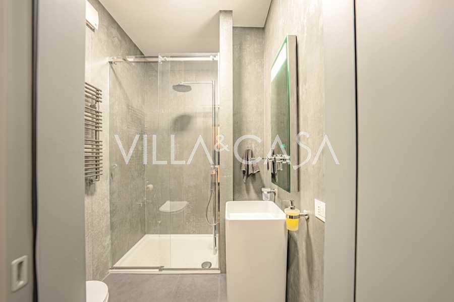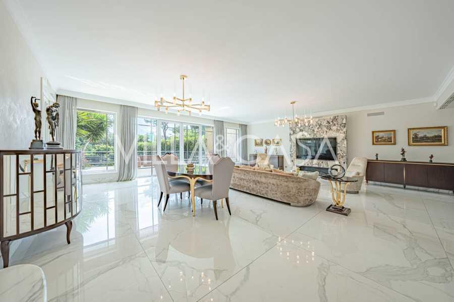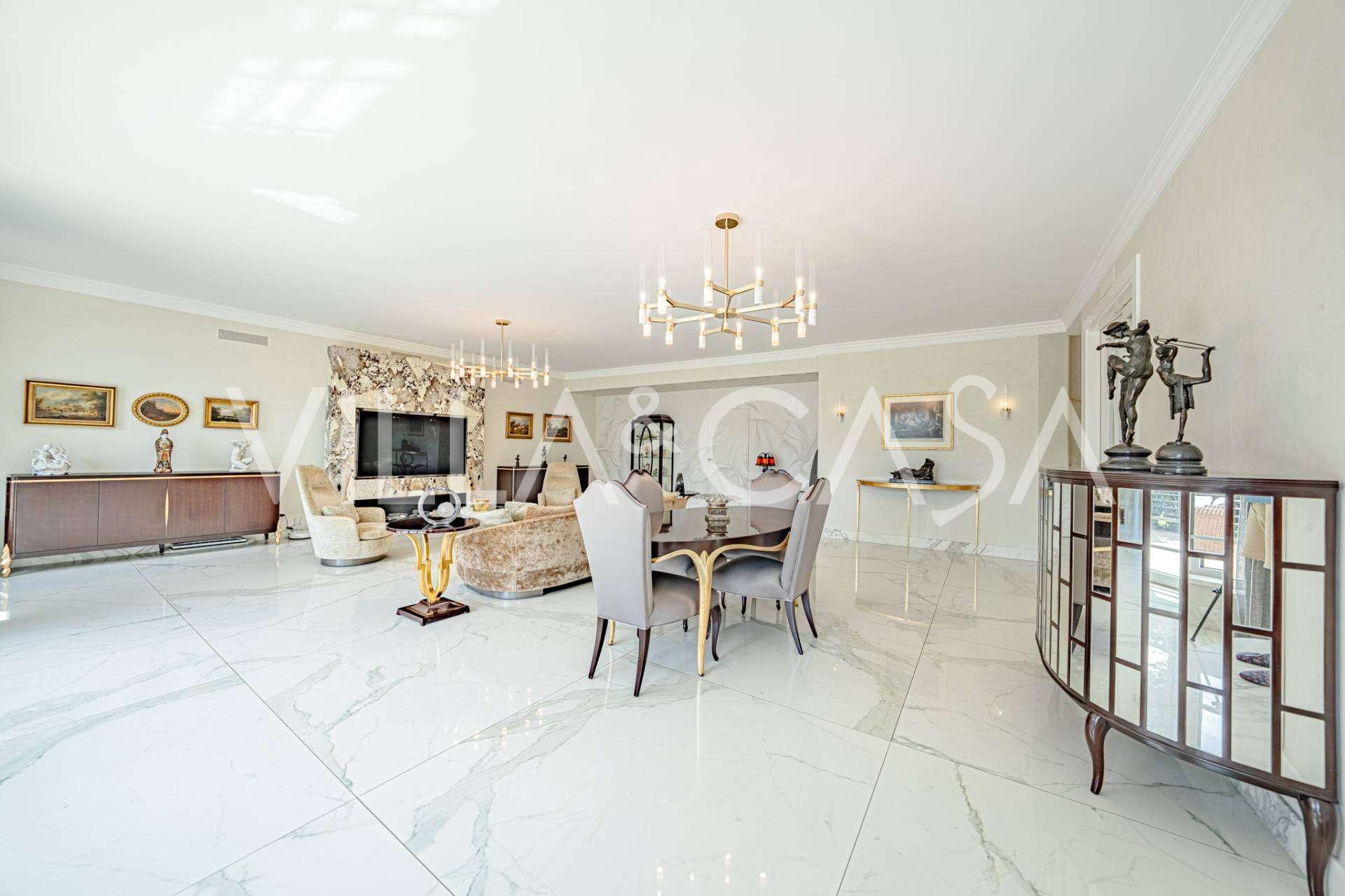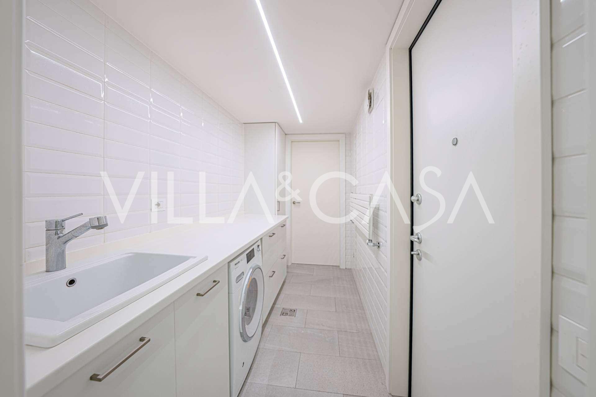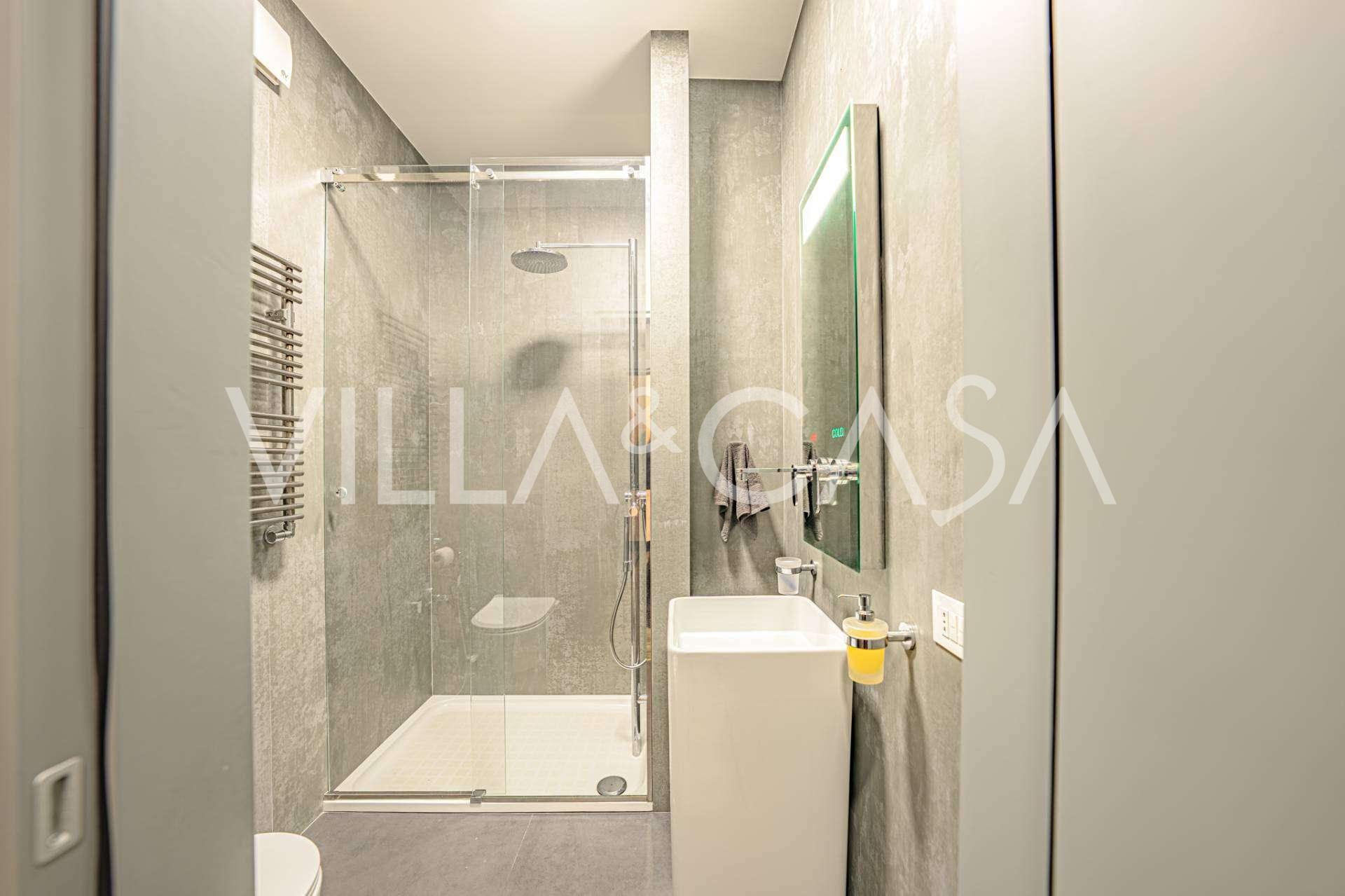 Os interiores de alto padrão incluem apenas os melhores materiais: porcelanato premium nas salas de estar e banheiros, parquet de tábuas largas na área de descanso, escada de mármore, janelas Schüco com vidro à prova de impacto. Móveis embutidos, feitos sob medida, são uma obra-prima da marcenaria italiana. Sistemas de engenharia modernos garantem alta eficiência energética de classe A.