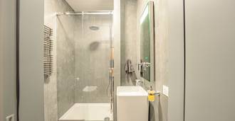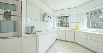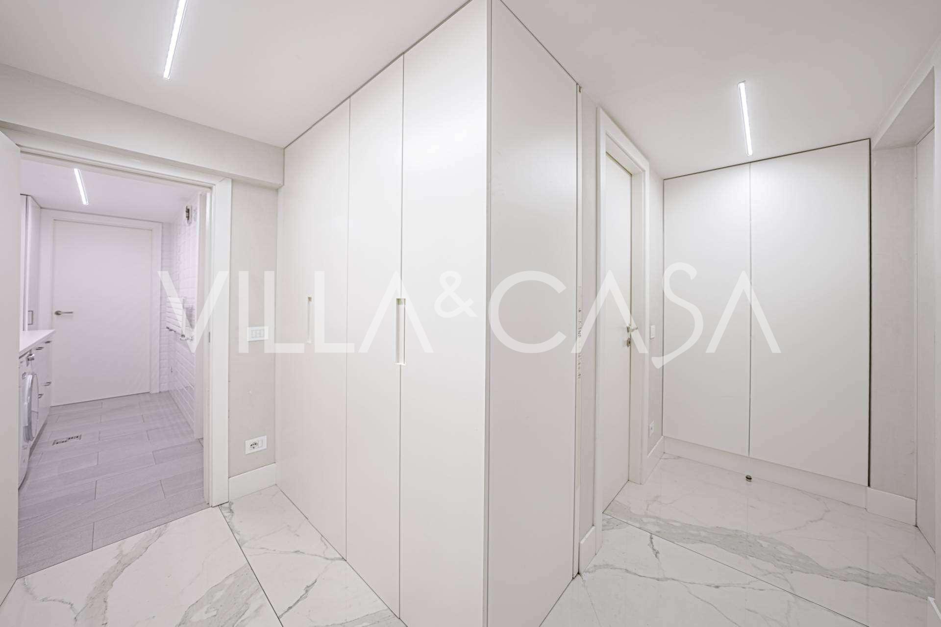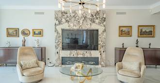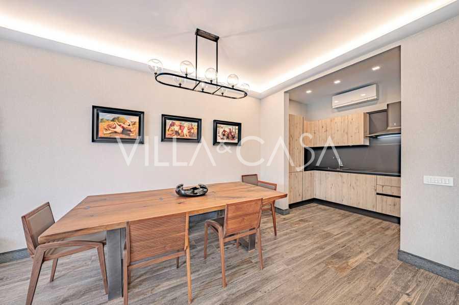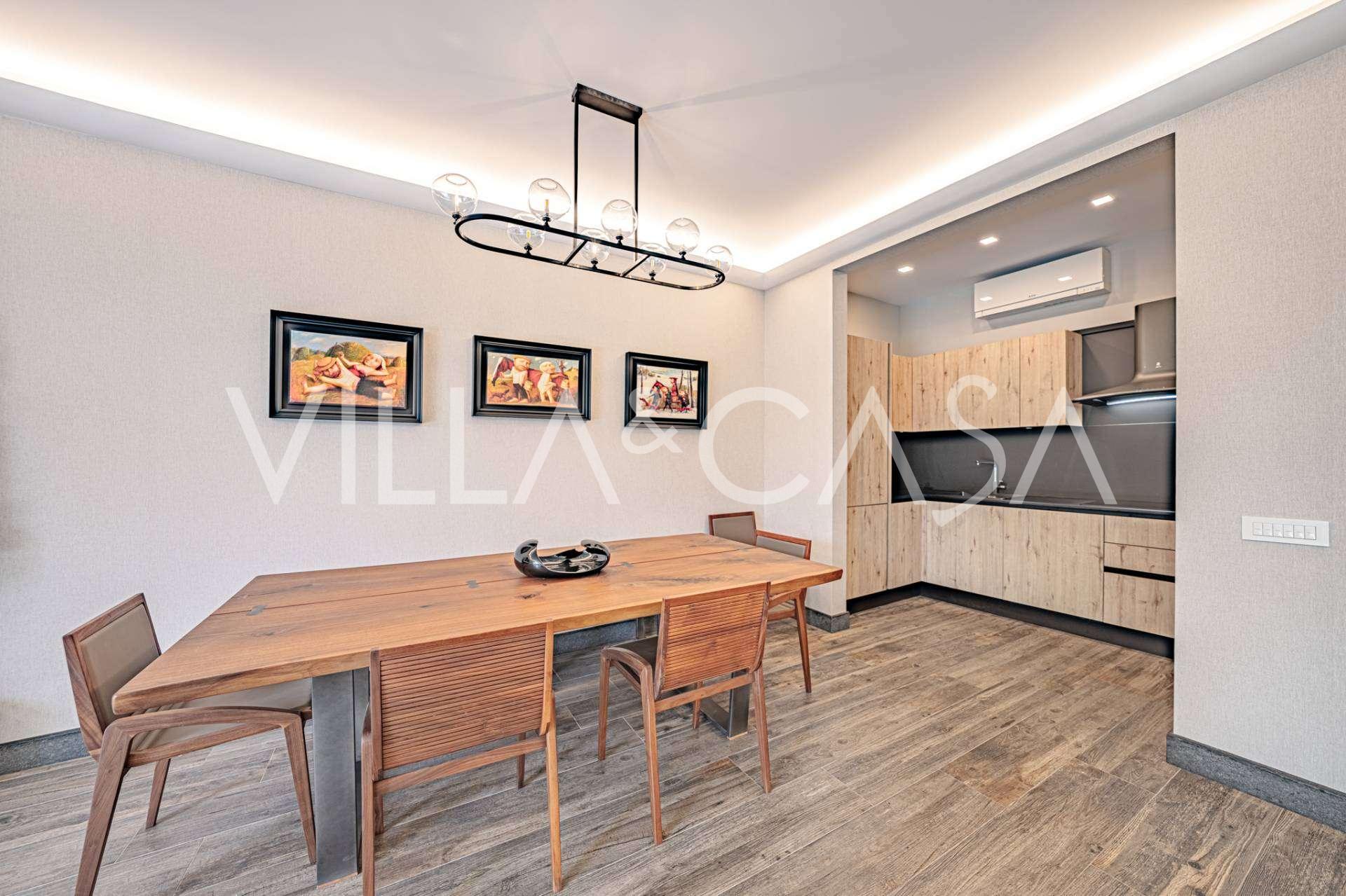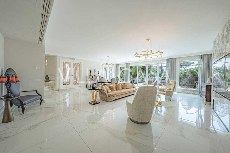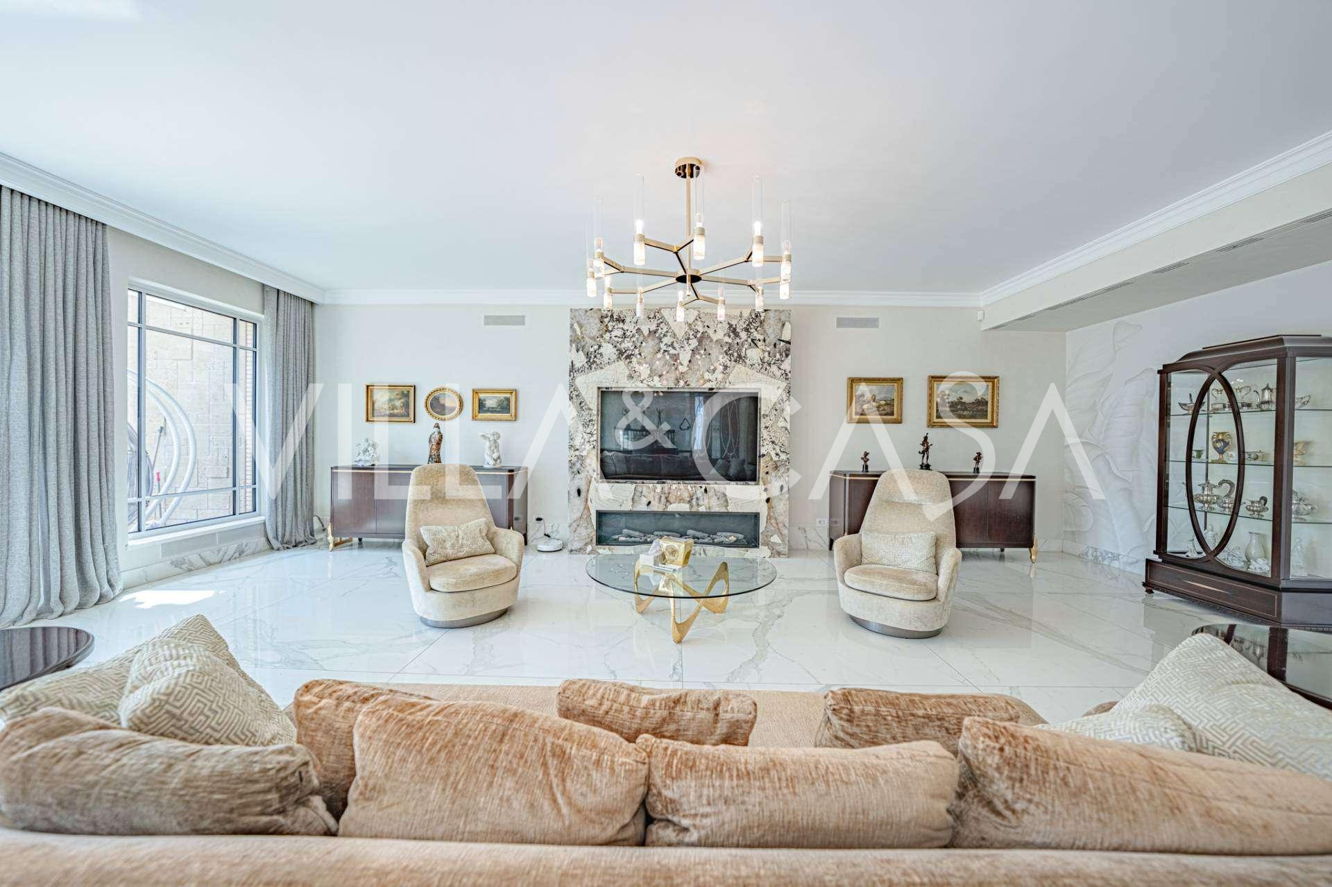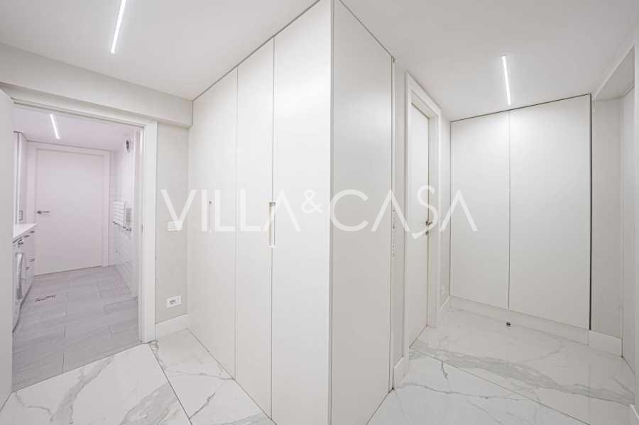 Os interiores de alto padrão incluem apenas os melhores materiais: porcelanato premium nas salas de estar e banheiros, parquet de tábuas largas na área de descanso, escada de mármore, janelas Schüco com vidro à prova de impacto. Móveis embutidos, feitos sob medida, são uma obra-prima da marcenaria italiana. Sistemas de engenharia modernos garantem alta eficiência energética de classe A.
