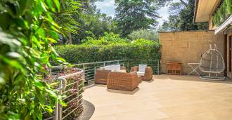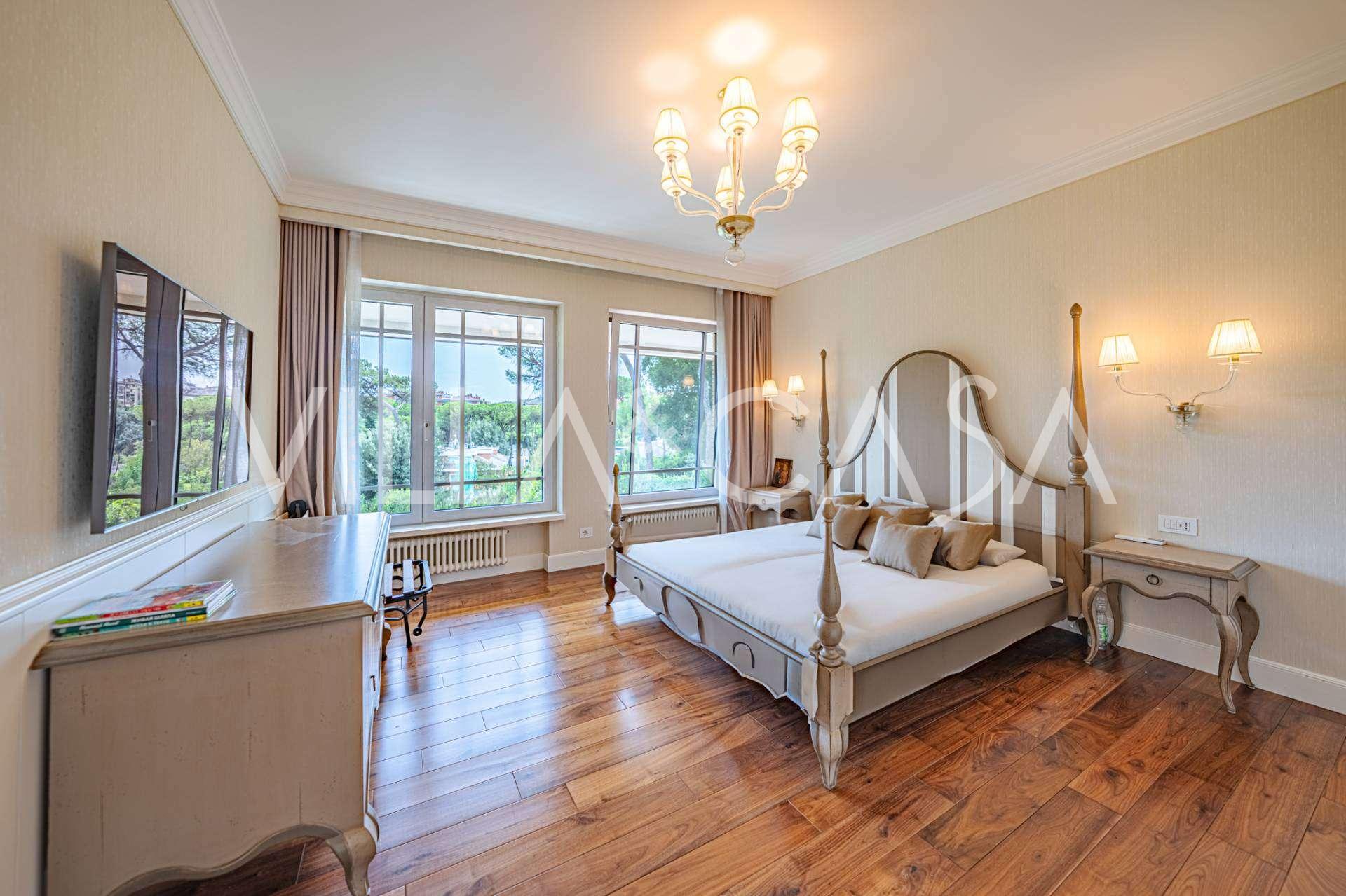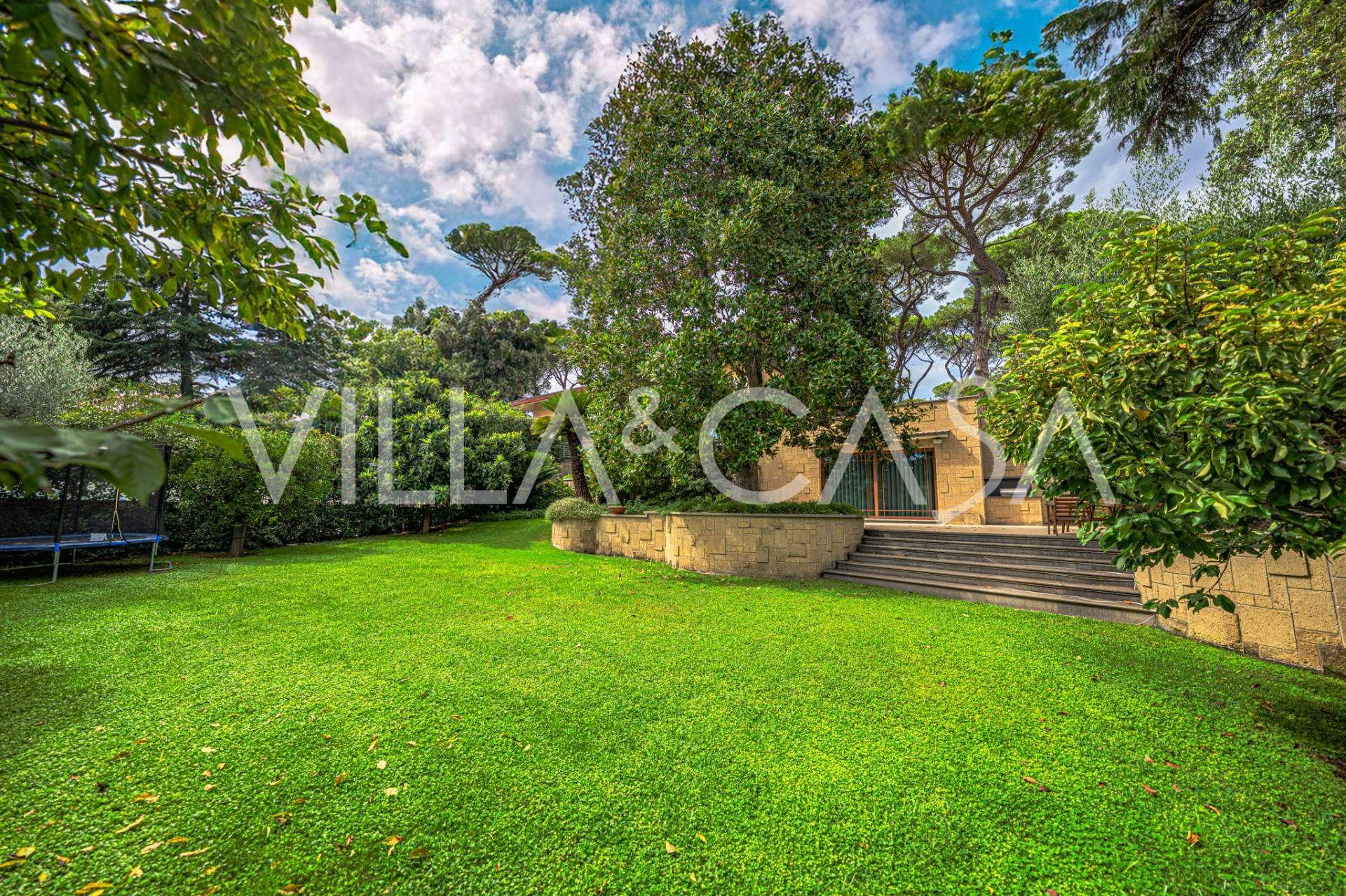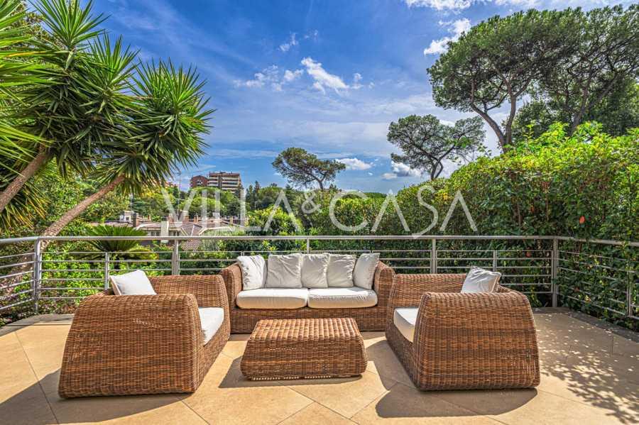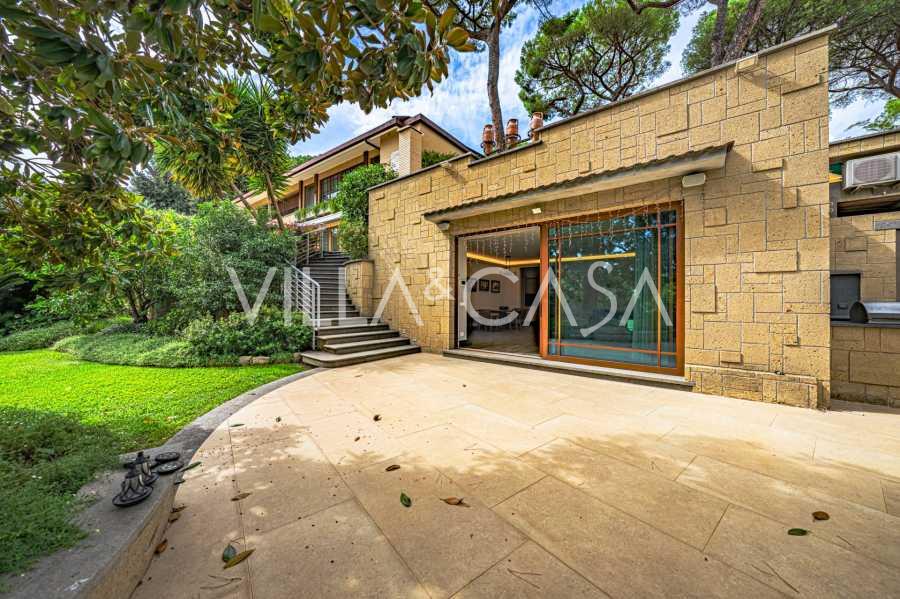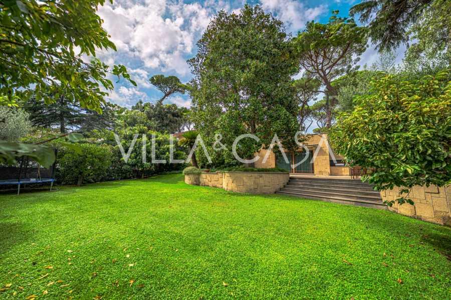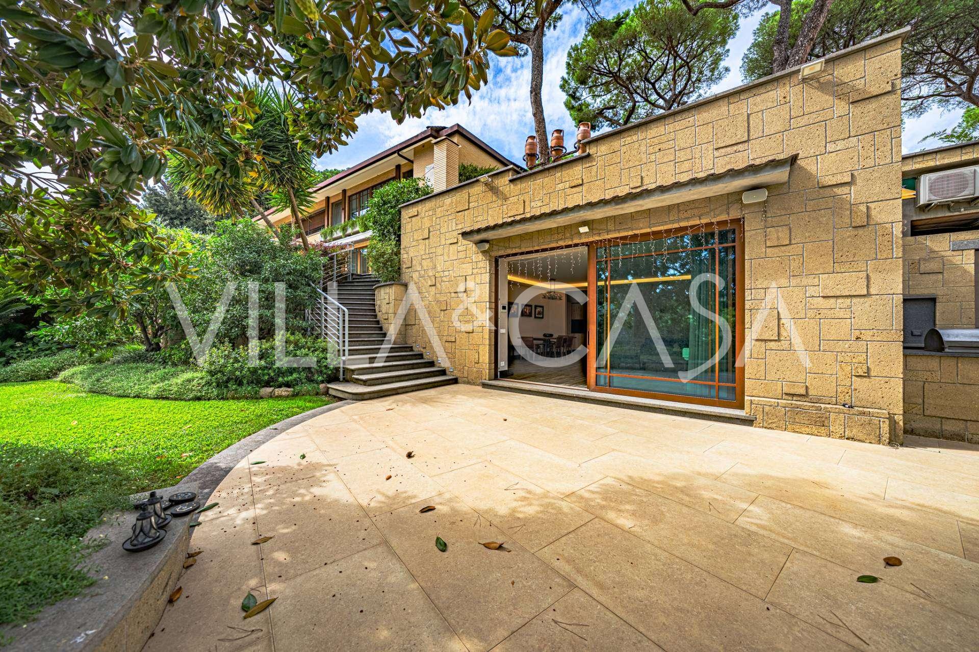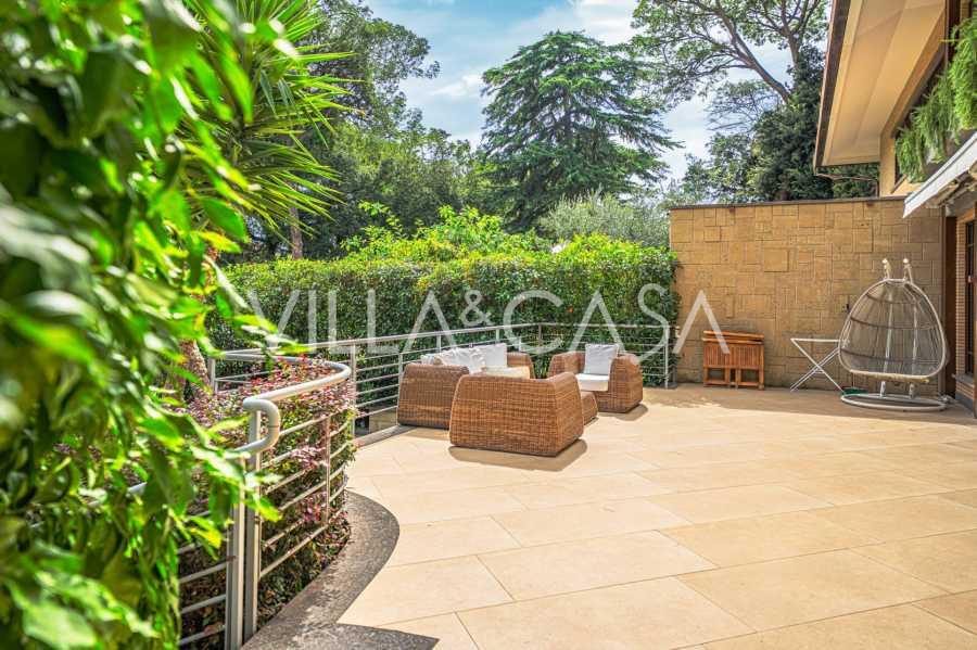 O jardim paisagístico, criado com atenção especial aos detalhes, é adornado com espécies raras de árvores, incluindo uma majestosa magnólia e uma oliveira centenária. O pátio principal acomoda vários carros, além de uma garagem fechada para um carro. A localização ideal da residência combina rara tranquilidade e localização estratégica: a uma curta distância estão os principais serviços e uma saída conveniente para o parque com o lago EUR, bem como para as avenidas Laurentina e Cristoforo Colombo. Em apenas alguns minutos, é possível chegar ao centro de Roma.