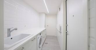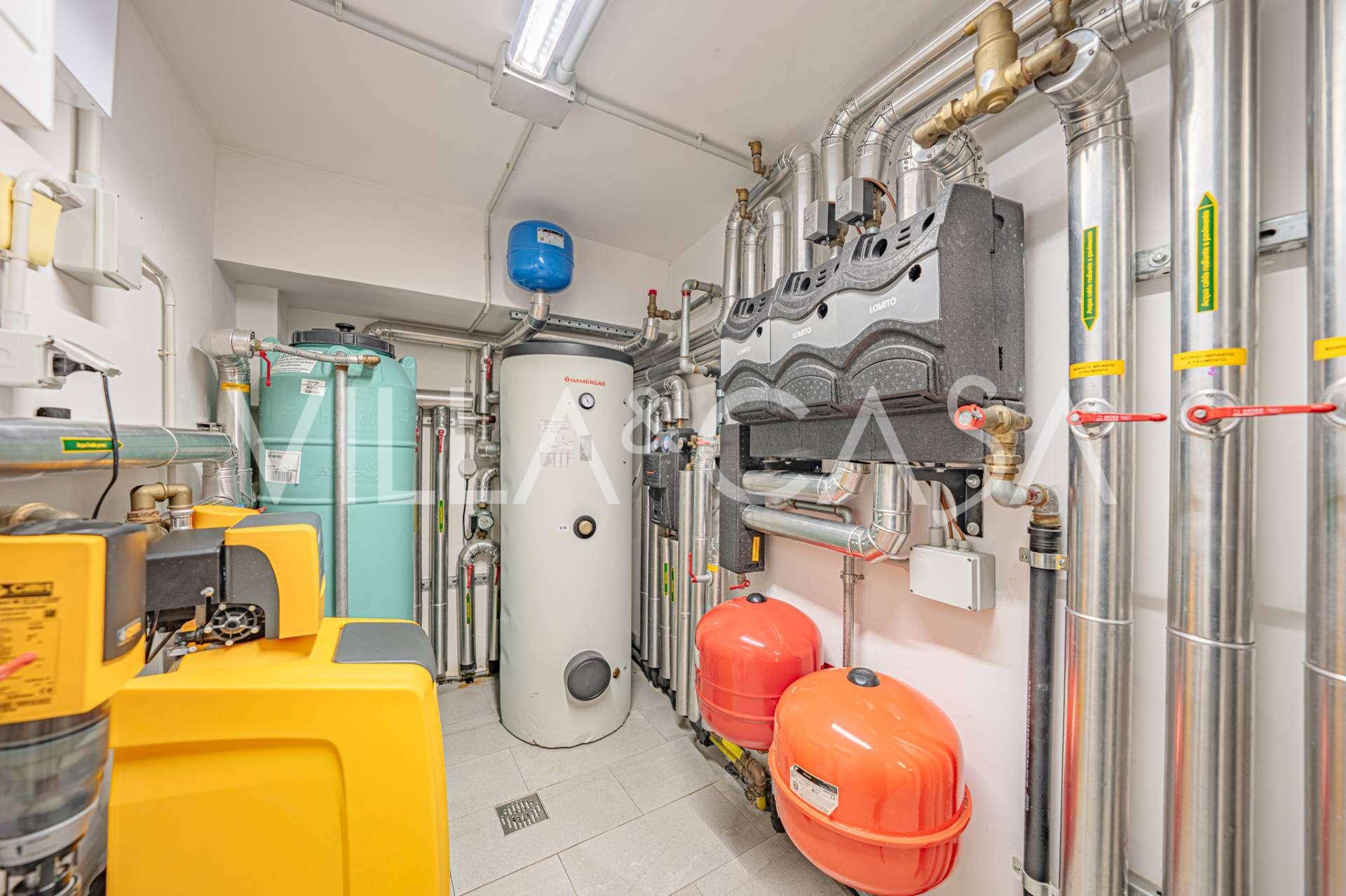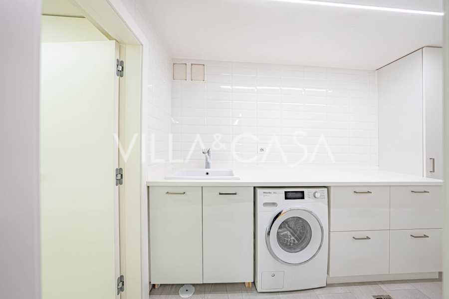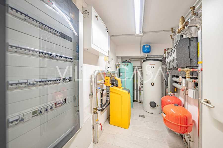 Primeiro andar: elegante vestíbulo, ampla sala de estar com biolareira de design e janelas panorâmicas que levam ao terraço; cozinha ultramoderna com eletrodomésticos de marcas líderes; área de serviço separada (lavanderia, sala técnica, garagem aquecida com acesso direto à casa); escritório privado com cozinha e banheiro próprios.