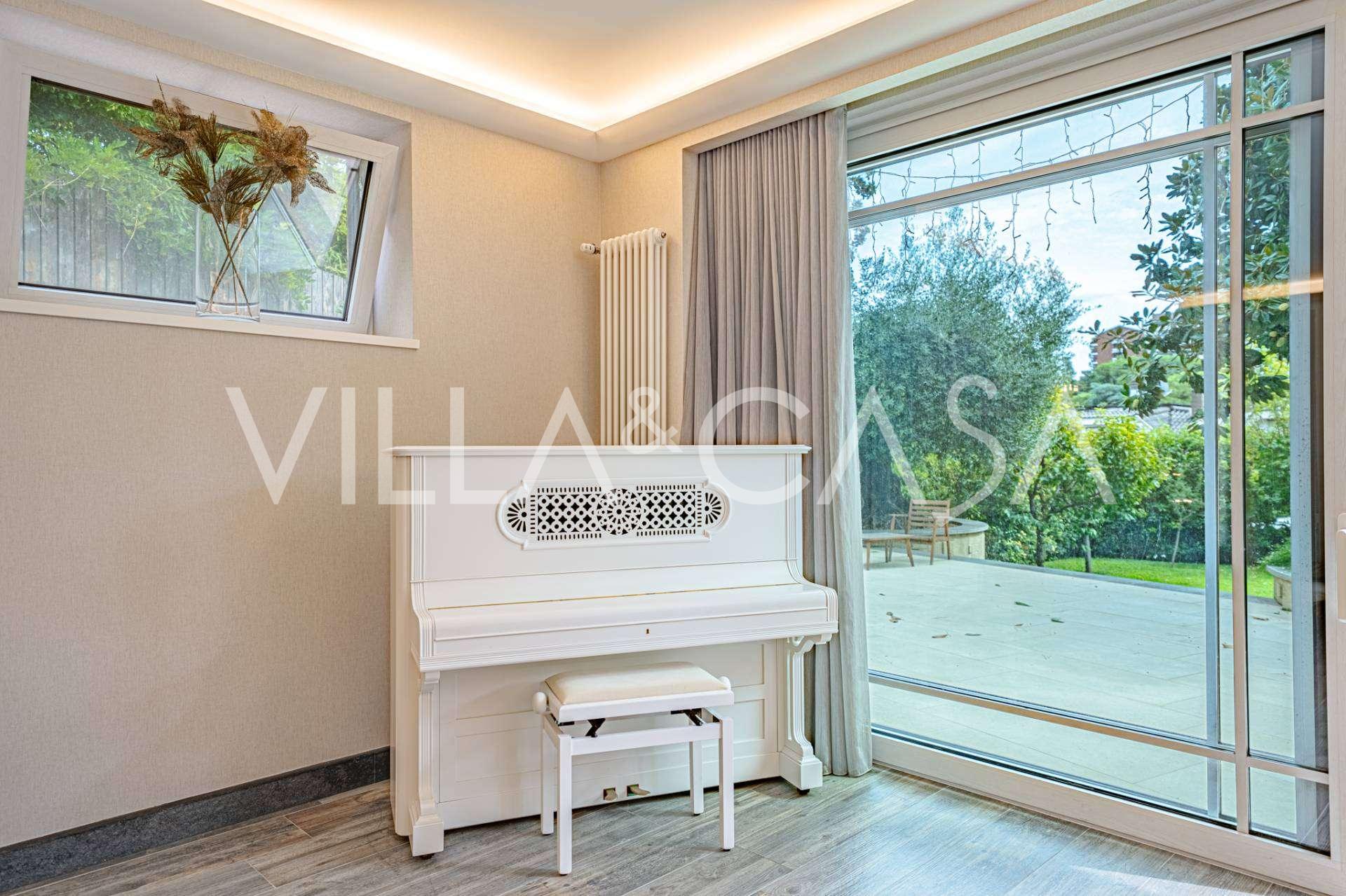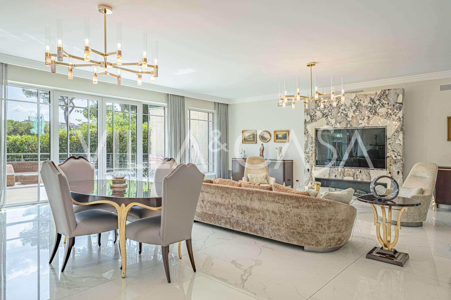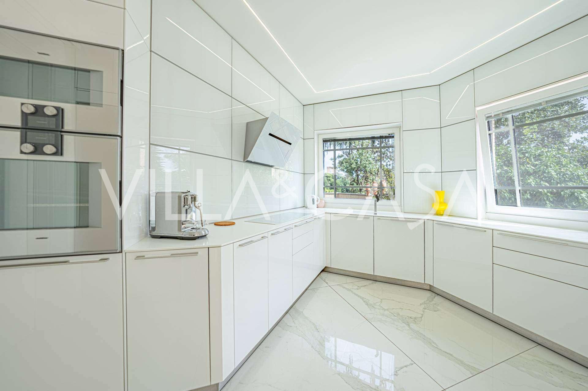 Em uma das ruas mais prestigiadas do distrito EUR, encontra-se uma residência sofisticada, totalmente renovada em 2020. Esta villa combina uma estética requintada, design moderno e alto nível de conforto, criando um espaço adequado para os apreciadores mais exigentes.
