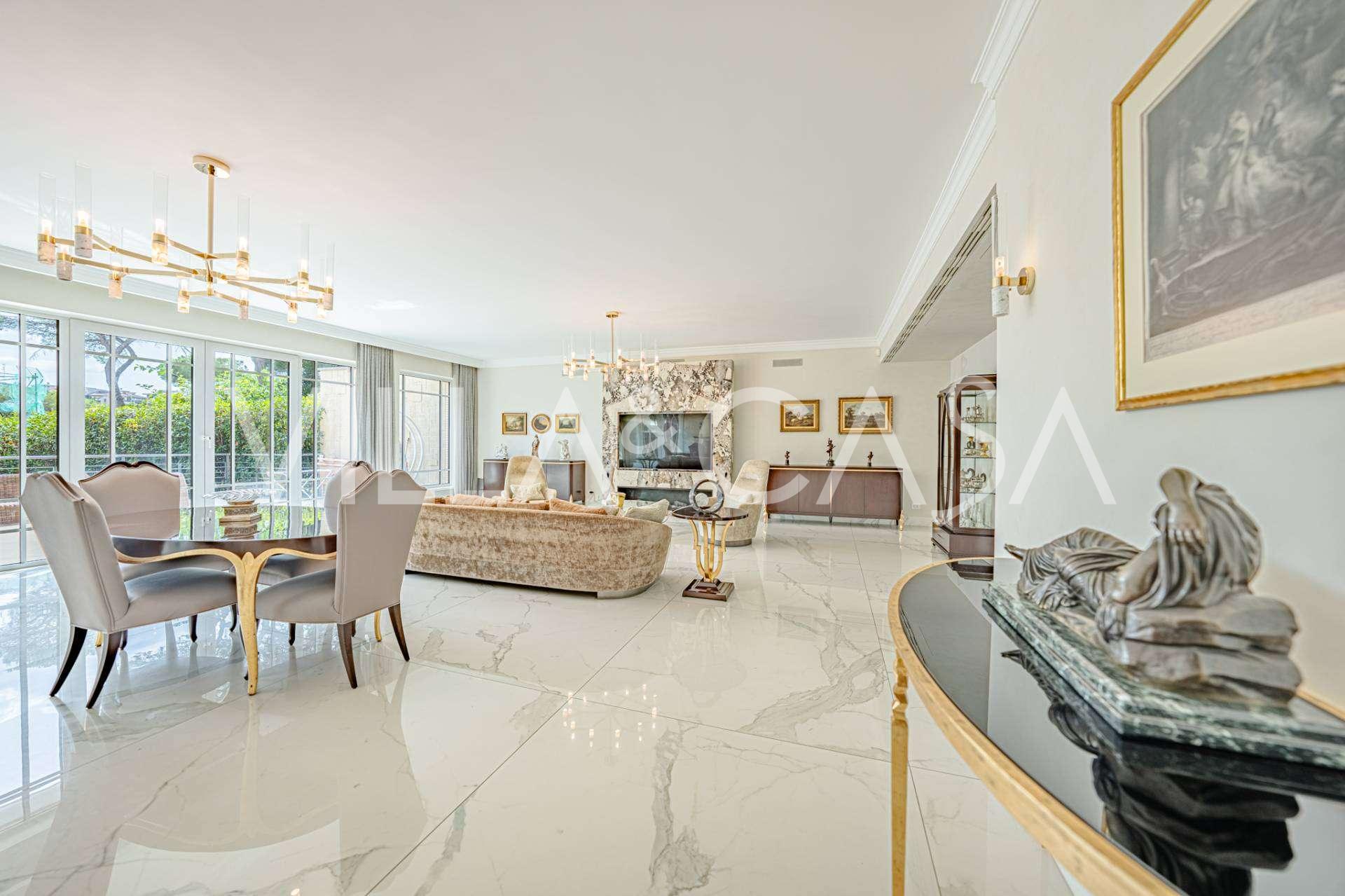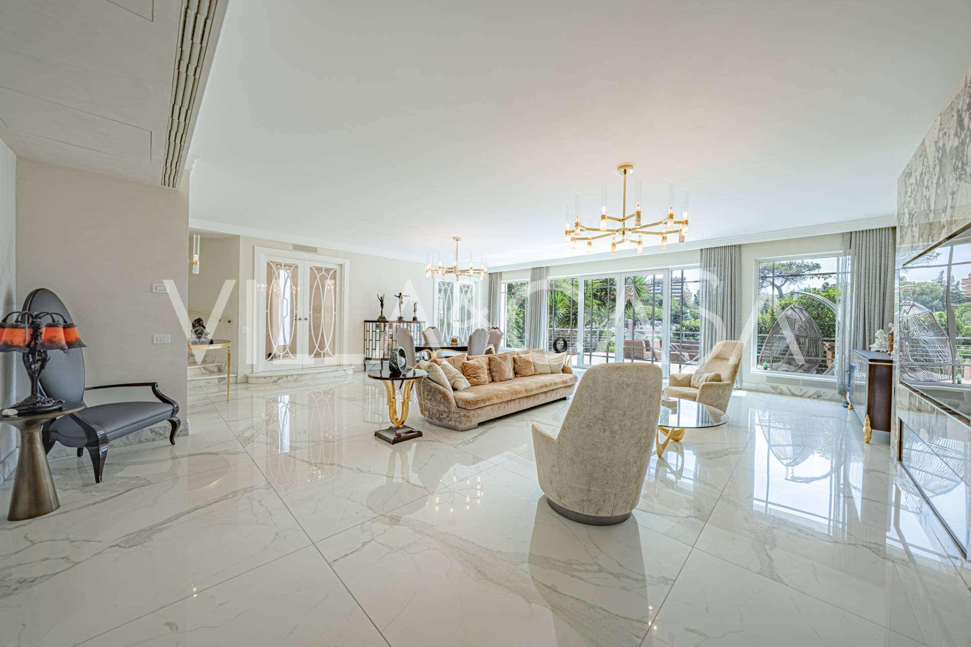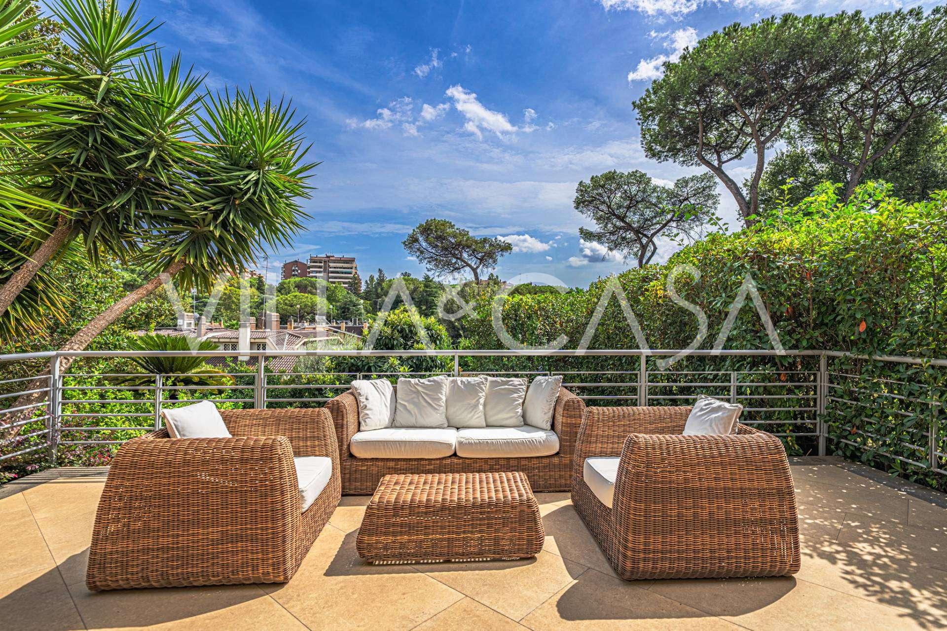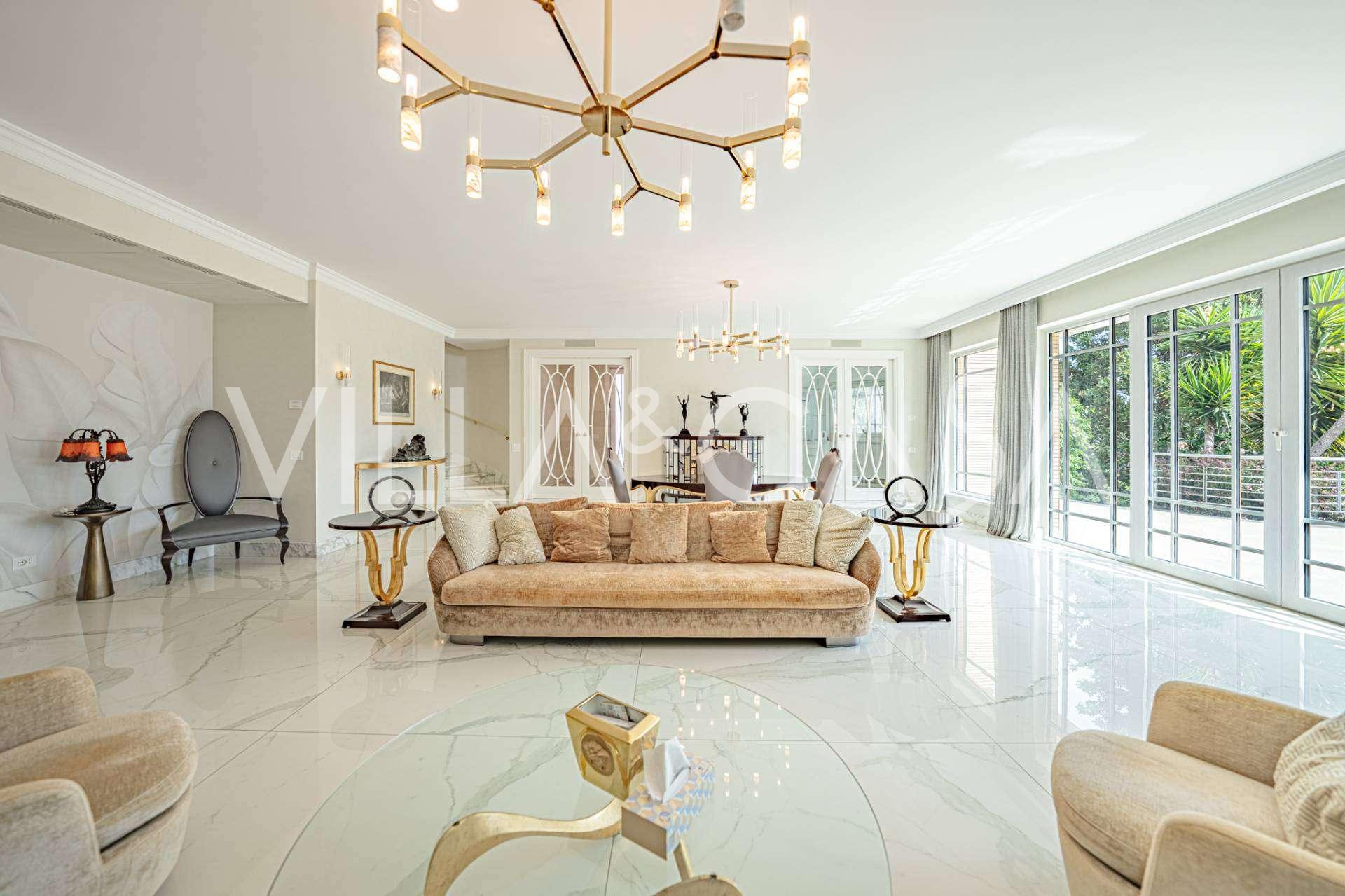 Em uma das ruas mais prestigiadas do distrito EUR, encontra-se uma residência sofisticada, totalmente renovada em 2020. Esta villa combina uma estética requintada, design moderno e alto nível de conforto, criando um espaço adequado para os apreciadores mais exigentes.