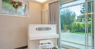 A residência de três andares ocupa uma posição dominante na Via Marocco com uma exposição solar ao sul, cercada por vegetação e com vistas deslumbrantes para os jardins. O estilo histórico se harmoniza com tecnologias inovadoras e uma ergonomia interna cuidadosamente planejada.